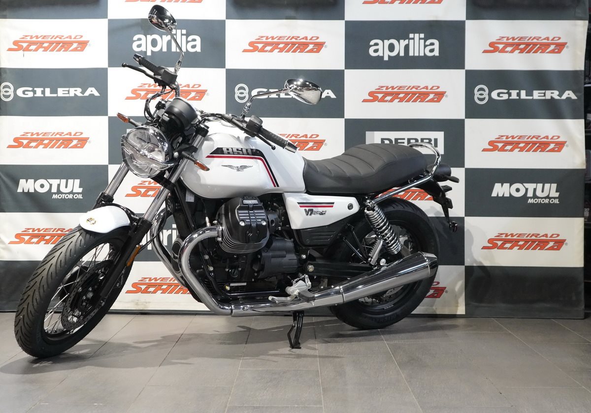 Der Motor der Moto Guzzi V7 Special ist der legendäre luftgekühlte 90°-V-Twin mit Kardanantrieb. Aufgerüstet auf die Euro 5+ Norm und mit 853 cm liefert er 67,3 PS bei 6.900 U/min und ein Drehmoment von 79 Nm bei 4.400 U/min, die besonders im mittleren und unteren Drehzahlbereich zur Geltung kommen. Kurzum: mehr Leistung, mehr Effizienz und natürlich der unverwechselbare Moto Guzzi Sound.