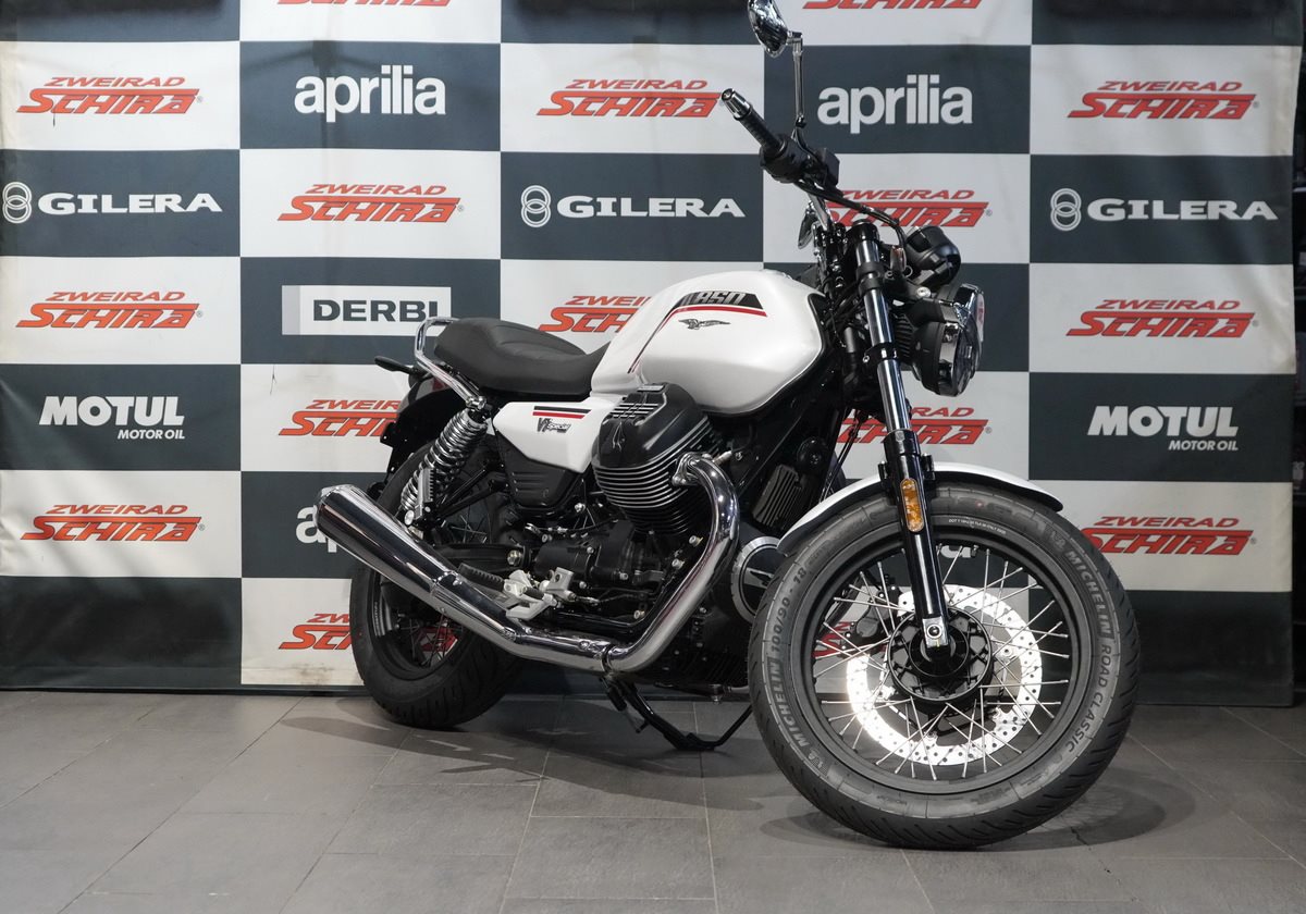 Das ikonische Design der V7 Special zeigt sich im verchromten Soziushaltegriff, den Speichenrädern, dem Scheinwerfer mit seinem Chromrahmen und dem Tagfahrlicht mit der unverwechselbaren Silhouette des Moto Guzzi Adlers. Der 21 Liter Tank umrahmt den V-Motor, während der kurze hintere Kotflügel und die Auspuffendrohre den Linien des Motorrads ein elegantes Aussehen verleihen. Die gefrästen Kühlrippen an den Zylinderköpfen und der mit dem Logo versehene Zündschlüssel spiegeln die berühmte Liebe zum Detail von Moto Guzzi wider.