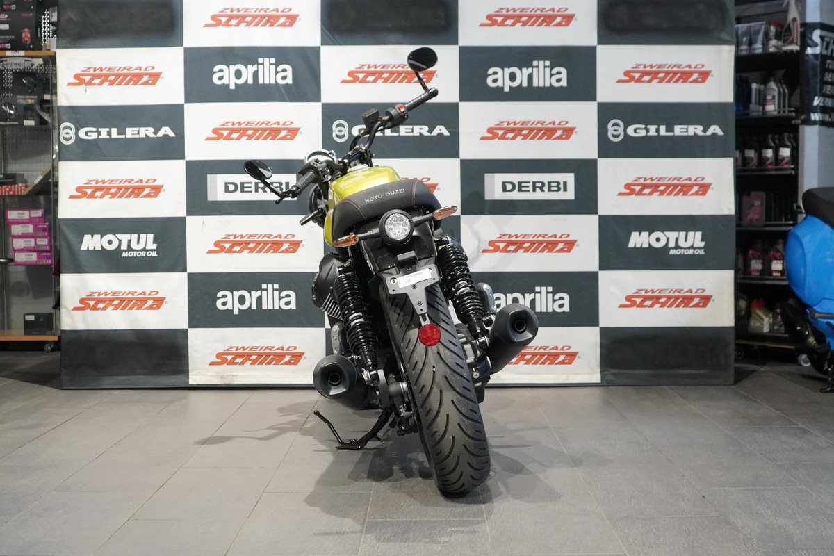 Die Moto Guzzi V7 Sport ist mit einer ganzen Reihe von fortschrittlichen Technologien ausgestattet. Die 6-Achsen-Inertiaplattform ermöglicht Kurven-ABS und Traktionskontrolle, die selbst in den dynamischsten Kurven für mehr Stabilität und Sicherheit sorgen. Zusätzlich zu den Fahrmodi ROAD und RAIN verfügt sie über den exklusiven SPORT-Modus, die den Eingriff der Traktionskontrolle minimiert und eine reaktionsfreudigere und direktere Gasannahme bietet, die durch das Ride by Wire ermöglicht wird. Abgerundet wird das Paket durch den serienmäßigen Tempomaten, die Full-LED-Lichtanlage mit Tagfahrlicht und das digitale Cockpit mit Tankanzeige.