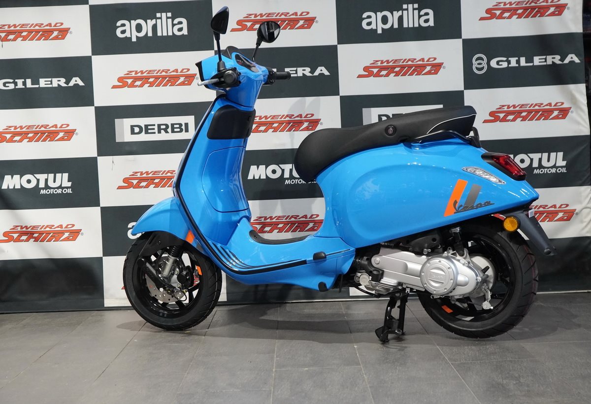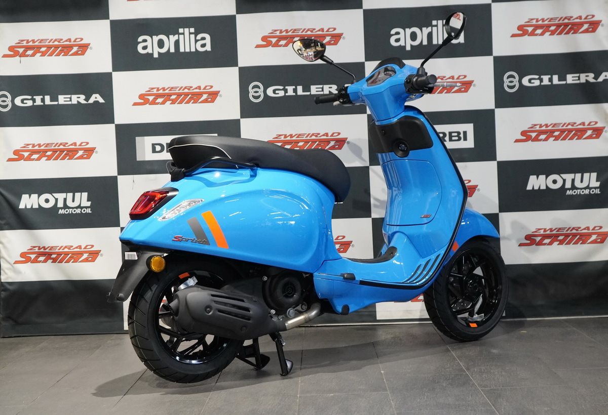 Die Vespa S Sprint verkörpert den unverwechselbaren Charakter der Generationen von Vespa Sportmodellen, die in jedem Umfeld einen Hauch von Dynamik versprühen. Ihr sportlicher Look wird durch kontrastierende Grafiken unterstrichen, während schwarze Details wie der rechteckige Rahmen um den Scheinwerfer und die neu designten 6-Speichen-Aluminiumfelgen für eine raffinierte Note sorgen.