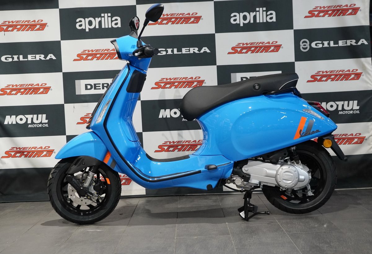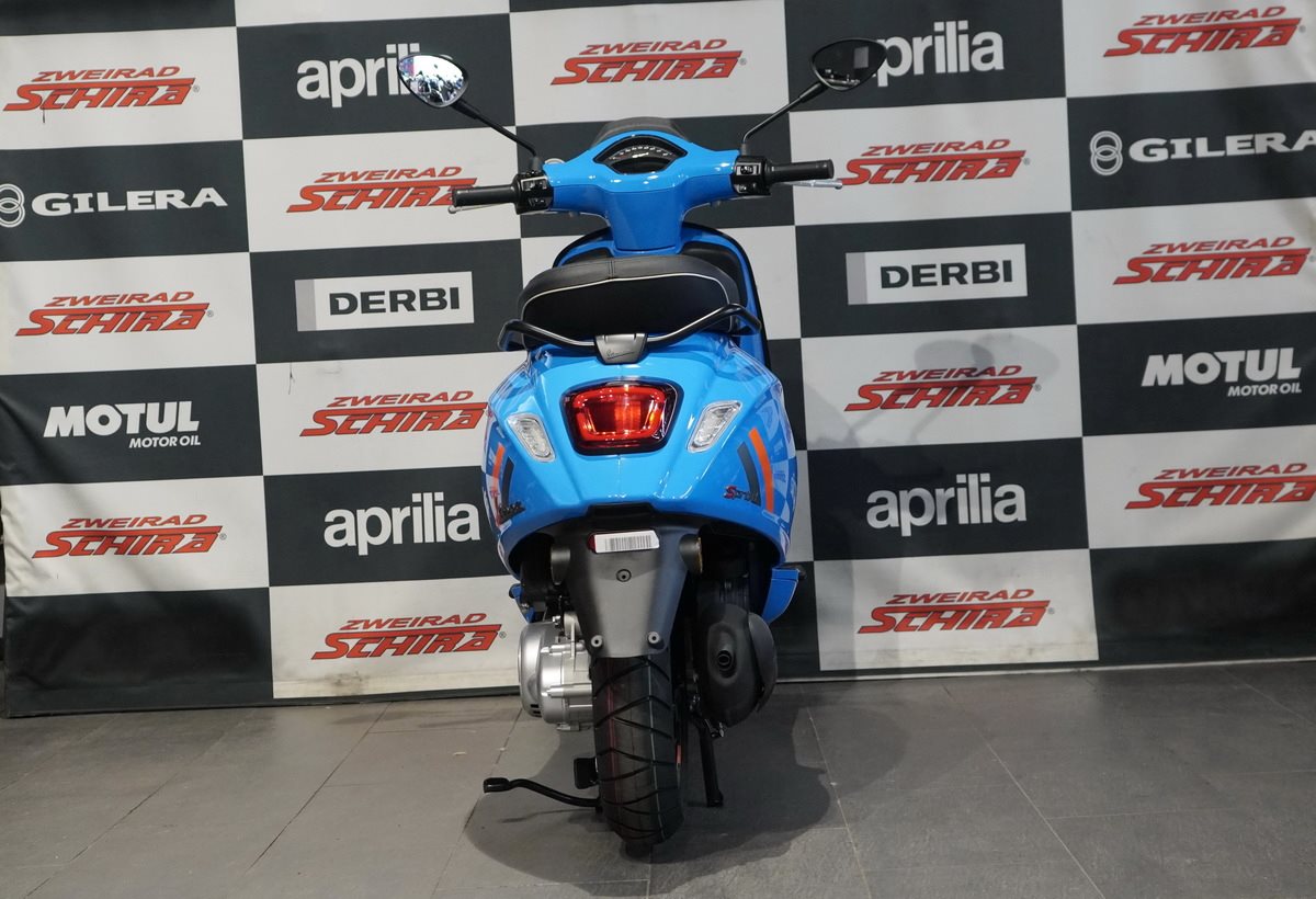 Die Vespa S Sprint verkörpert den unverwechselbaren Charakter der Generationen von Vespa Sportmodellen, die in jedem Umfeld einen Hauch von Dynamik versprühen. Ihr sportlicher Look wird durch kontrastierende Grafiken unterstrichen, während schwarze Details wie der rechteckige Rahmen um den Scheinwerfer und die neu designten 6-Speichen-Aluminiumfelgen für eine raffinierte Note sorgen.