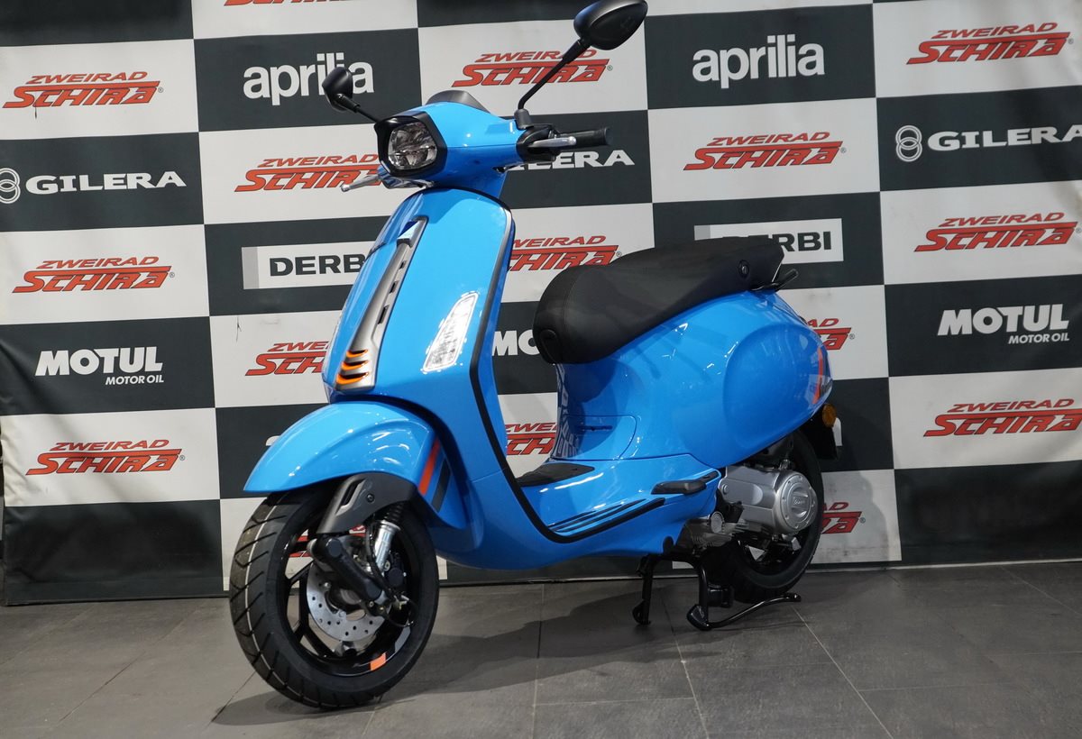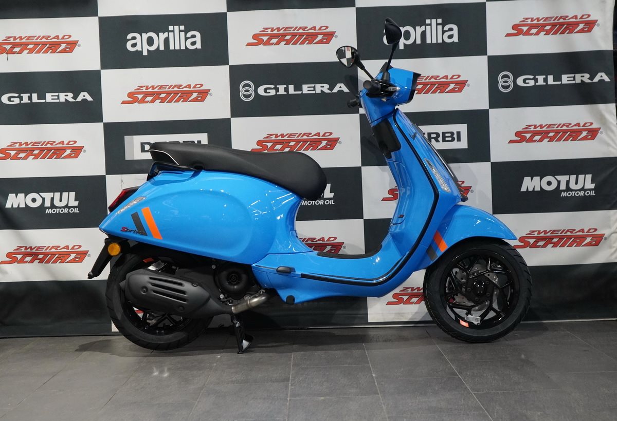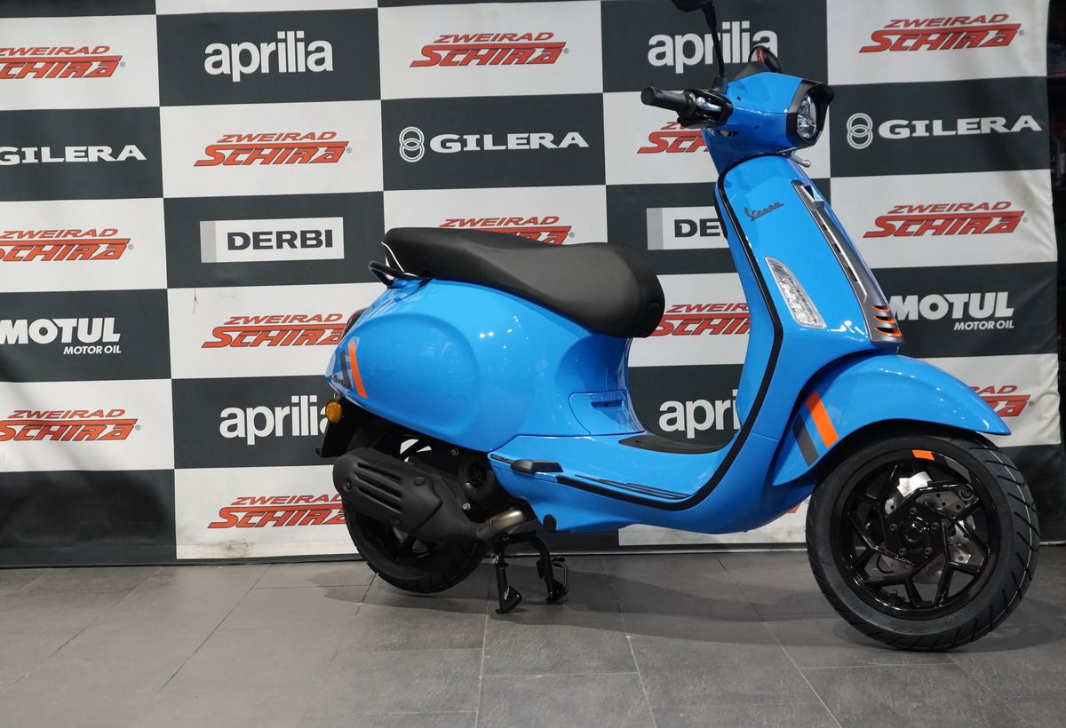 Die Vespa S Sprint verkörpert den unverwechselbaren Charakter der Generationen von Vespa Sportmodellen, die in jedem Umfeld einen Hauch von Dynamik versprühen. Ihr sportlicher Look wird durch kontrastierende Grafiken unterstrichen, während schwarze Details wie der rechteckige Rahmen um den Scheinwerfer und die neu designten 6-Speichen-Aluminiumfelgen für eine raffinierte Note sorgen.