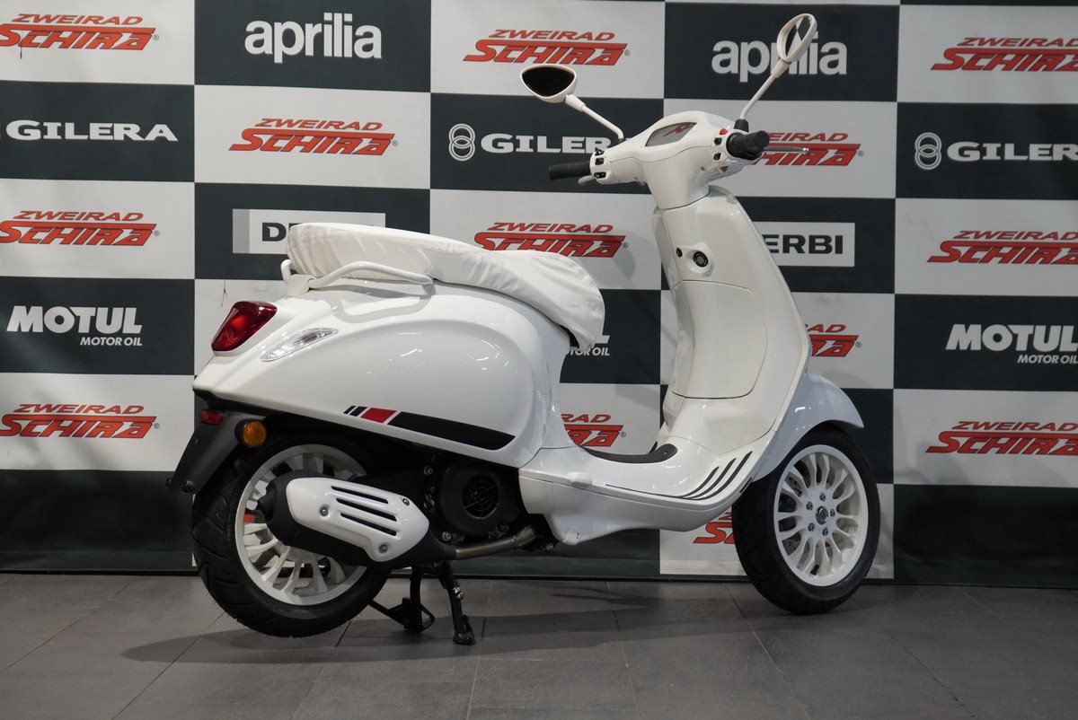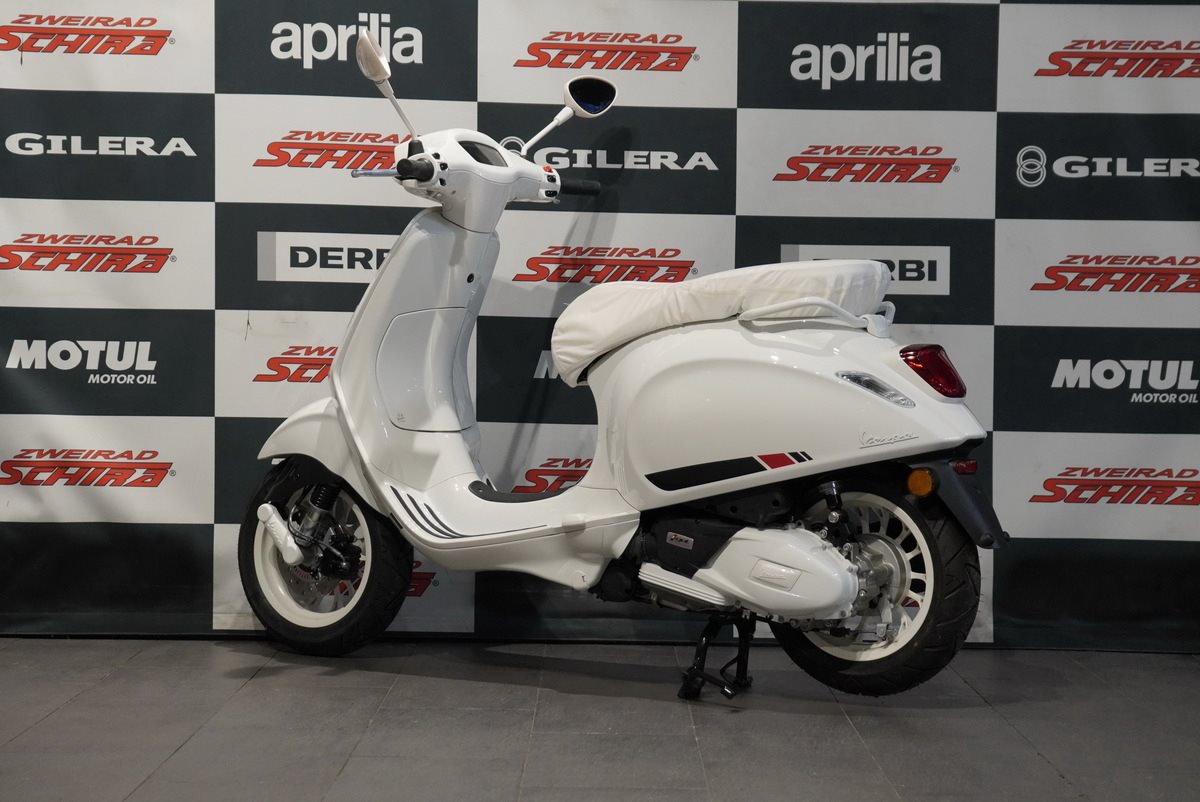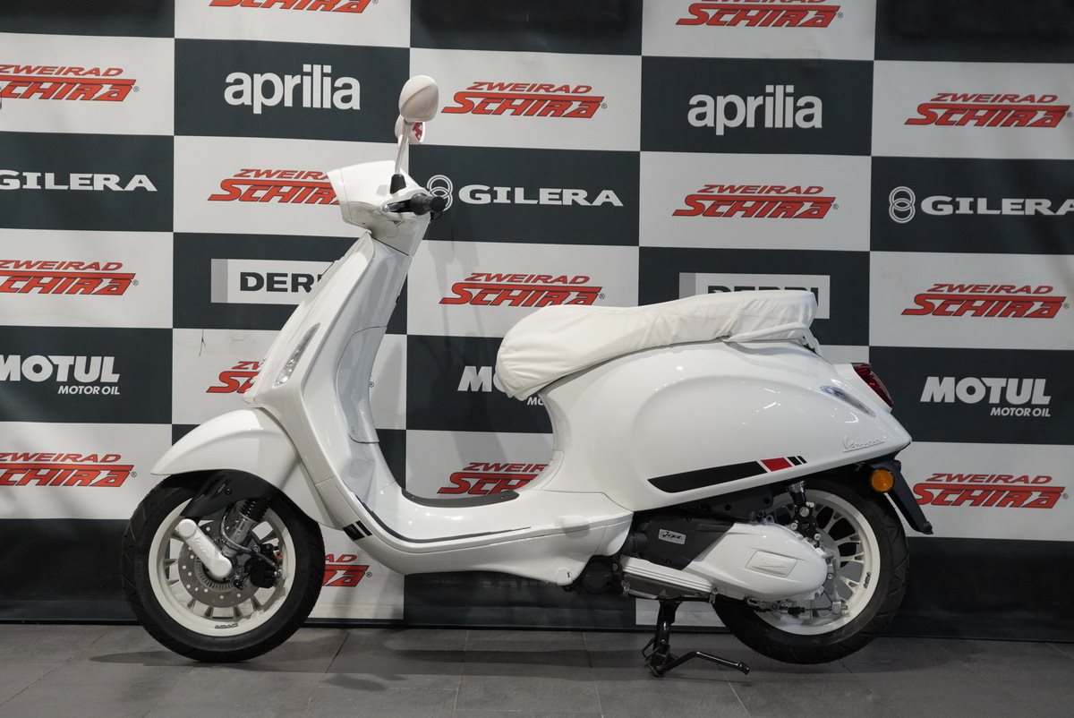 Moderne Details und zeitloser Stil verbinden sich. Mit ihrem schnittigen Design und den Chromakzenten bringt die Vespa Primavera eine zeitgenössische Ausstrahlung und eine lebendige Farbpalette in das reiche Erbe der Vespa.