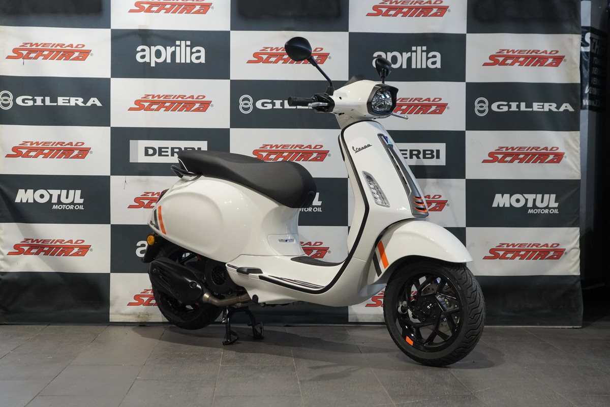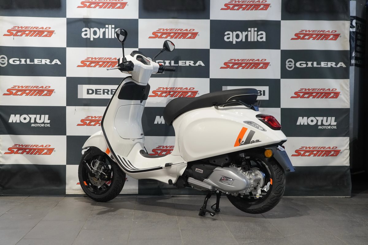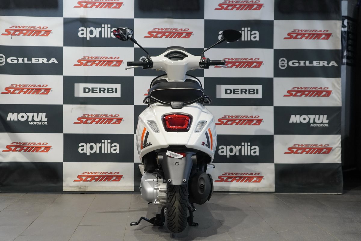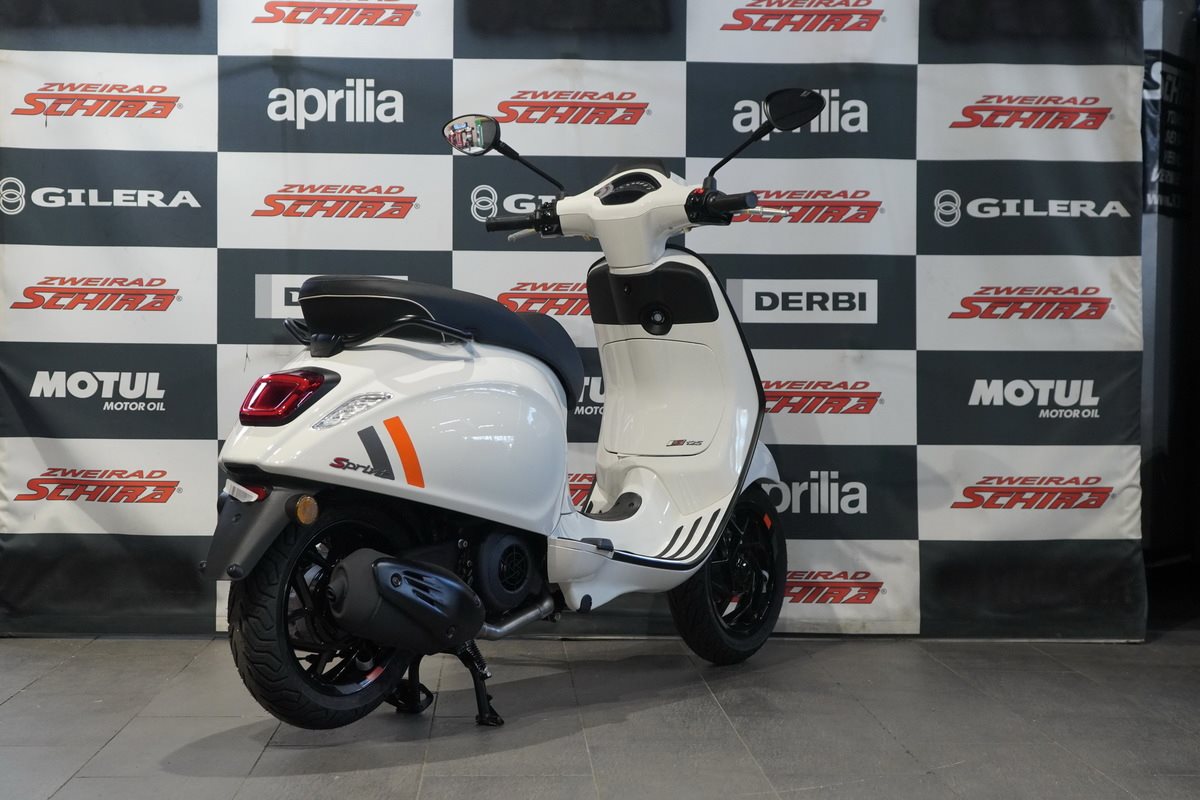 Die Vespa S Sprint verkörpert den unverwechselbaren Charakter der Generationen von Vespa Sportmodellen, die in jedem Umfeld einen Hauch von Dynamik versprühen. Ihr sportlicher Look wird durch kontrastierende Grafiken unterstrichen, während schwarze Details wie der rechteckige Rahmen um den Scheinwerfer und die neu designten 6-Speichen-Aluminiumfelgen für eine raffinierte Note sorgen.