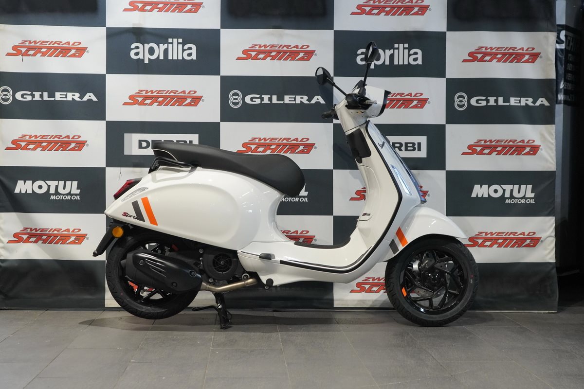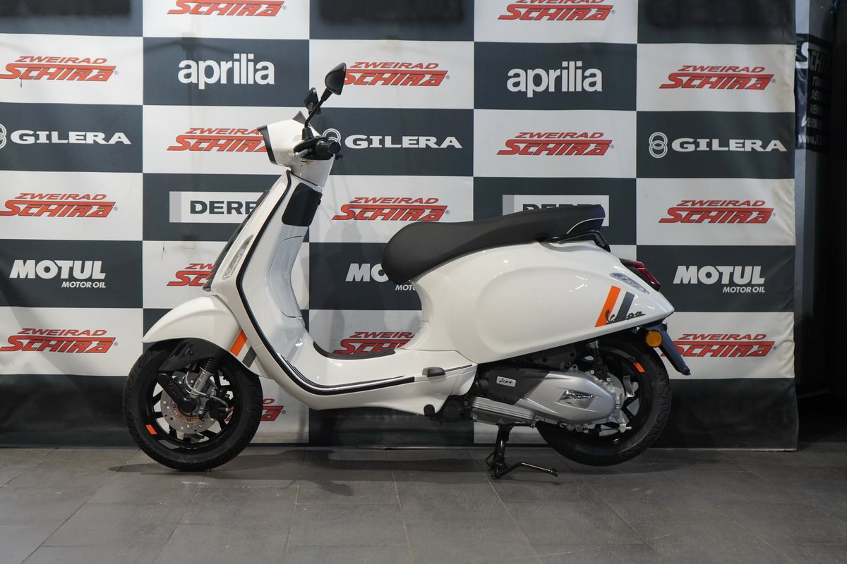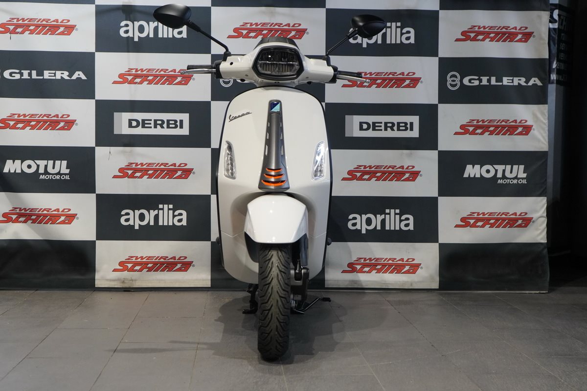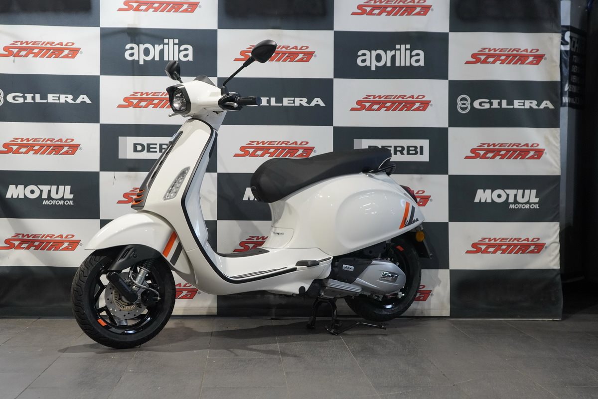 Die Vespa S Sprint verkörpert den unverwechselbaren Charakter der Generationen von Vespa Sportmodellen, die in jedem Umfeld einen Hauch von Dynamik versprühen. Ihr sportlicher Look wird durch kontrastierende Grafiken unterstrichen, während schwarze Details wie der rechteckige Rahmen um den Scheinwerfer und die neu designten 6-Speichen-Aluminiumfelgen für eine raffinierte Note sorgen.