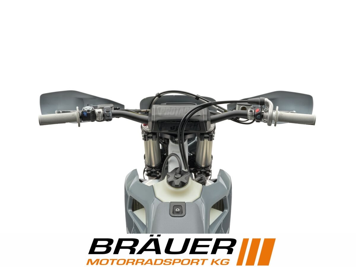 Beherrschen Sie die Trails mit der vielseitigen FE 350 Pro. Basierend auf der weltberühmten Standardmaschine, hebt dieses unverwechselbare, wettbewerbsorientierte Motorrad die Leistung auf ein noch höheres Niveau. Die verbesserte Fahrbarkeit ergibt sich aus einer umfangreichen Liste von technischem Zubehör, das jeweils nach seiner Fähigkeit ausgewählt wurde, die Haltbarkeit und die Gesamtleistung zu verbessern. Mehrere elektronische Fahrhilfen ermöglichen eine individuelle Leistungsanpassung je nach Vorliebe und Gelände. Alle Funktionen - einschließlich Traktionskontrolle und Quickshifter - werden einfach über den Map Select-Schalter aktiviert, mit dem auch zwischen zwei Motorkennfeldern umgeschaltet werden kann. Die im Rennsport bewährten Komponenten von GALFER, Michelin, Twin Air, Supersprox und ProTaper unterstreichen die erstklassige Verarbeitungsqualität der FE 350 Pro.