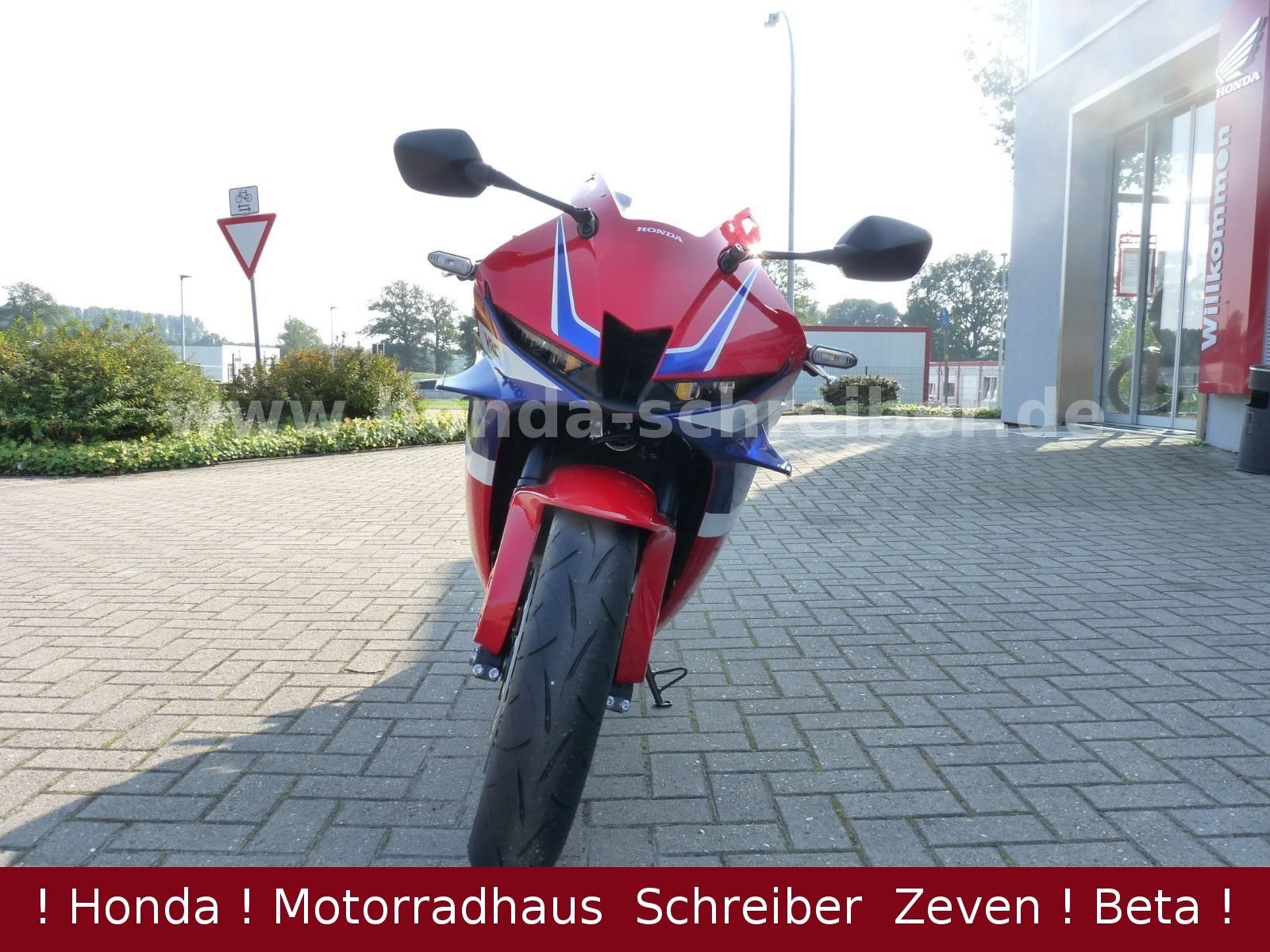 Für die Rennstrecke entwickelt. Angepasst an die Straße. Die neue CBR600RR ist eine kompromisslose HRC-Supersportmaschine mit einem leistungsstarken Vierzylindermotor und einem agilen Fahrwerk, das unmittelbar reagiert. Die Elektronik- und Aerodynamikpakete wurden direkt vom MotoGP-Bike RC213V-S übernommen. Du suchst nach Kontrolle auf einem ganz neuen Niveau? Du hast sie gefunden. - Quickshifter Serie - 6 Achs Managment - Fahrmodis - Winglets - Bilder zeigen Sonderzubehör mit Aufpreis ! -
