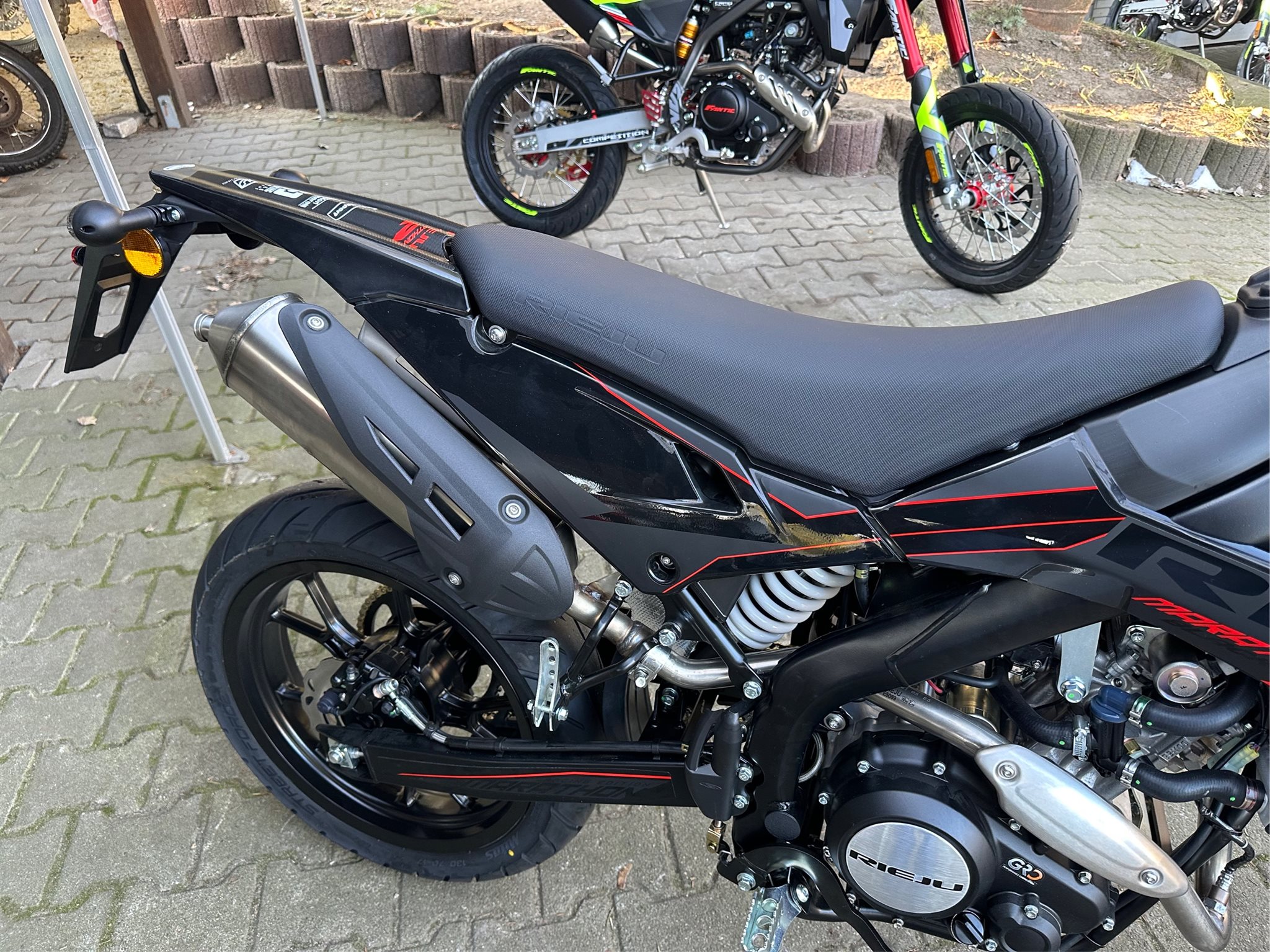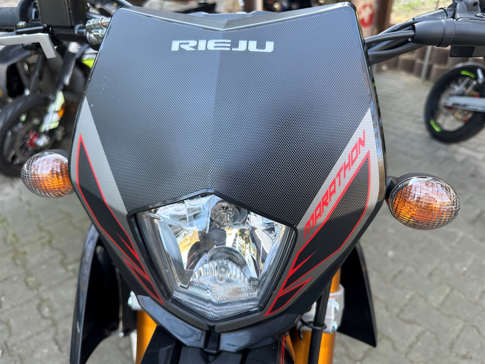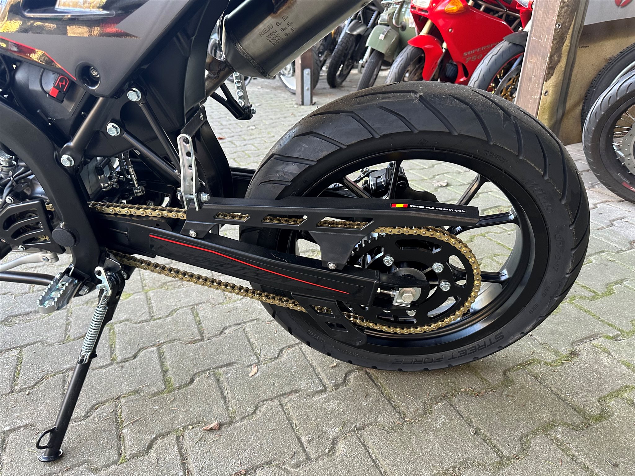 Hier bieten wir die sehr schicke Rieju Marathon 125 Supermoto mit Euro 5+ in der Farbe schwarz an. Ausgestattet mit dem gierigen Minarelli Motor und einem CBS Bremssytem ( Beim bremsen vorn 70% Bremskraft & hinten 30% Bremskraft ) für ihre Sicherheit!