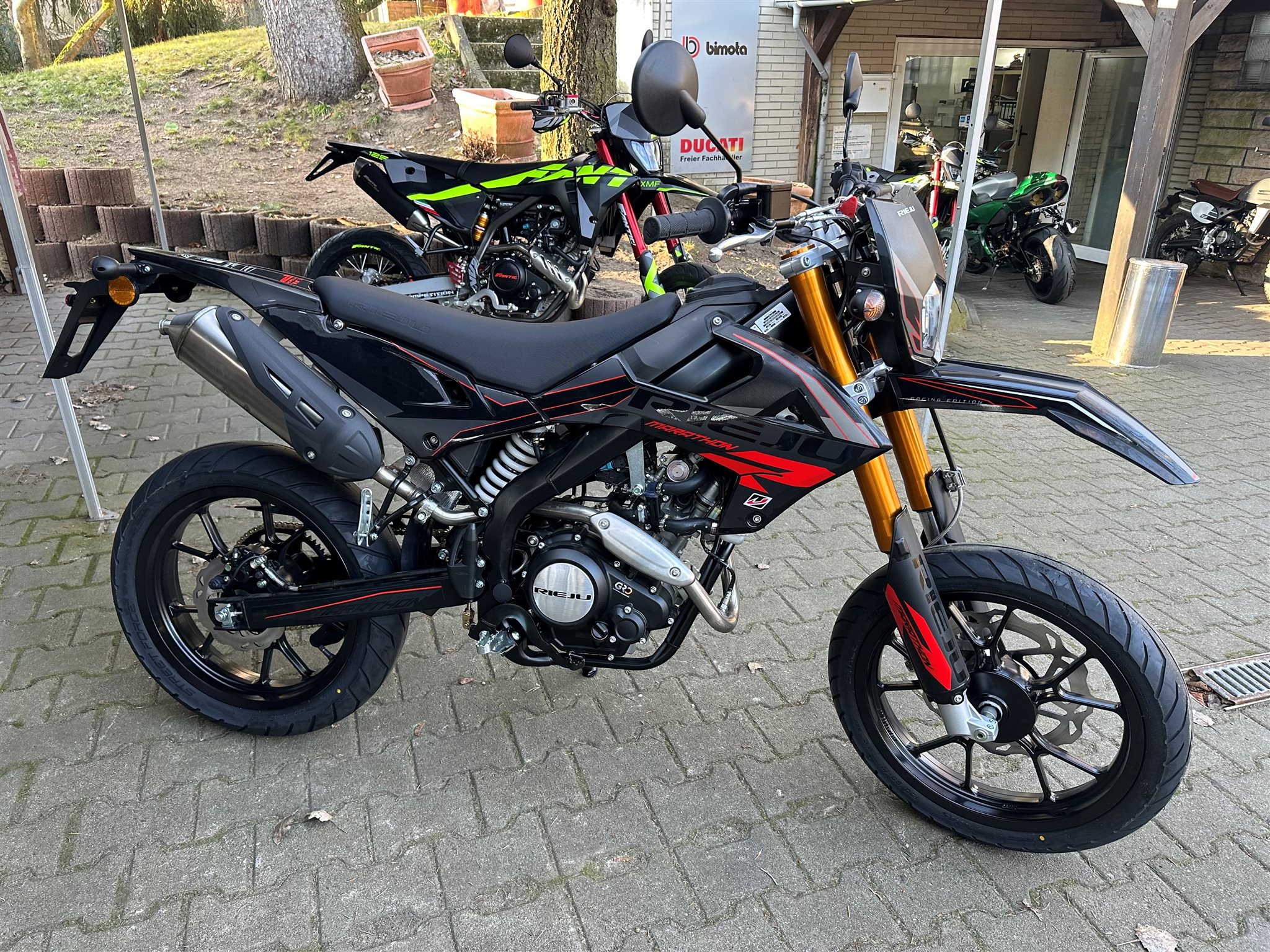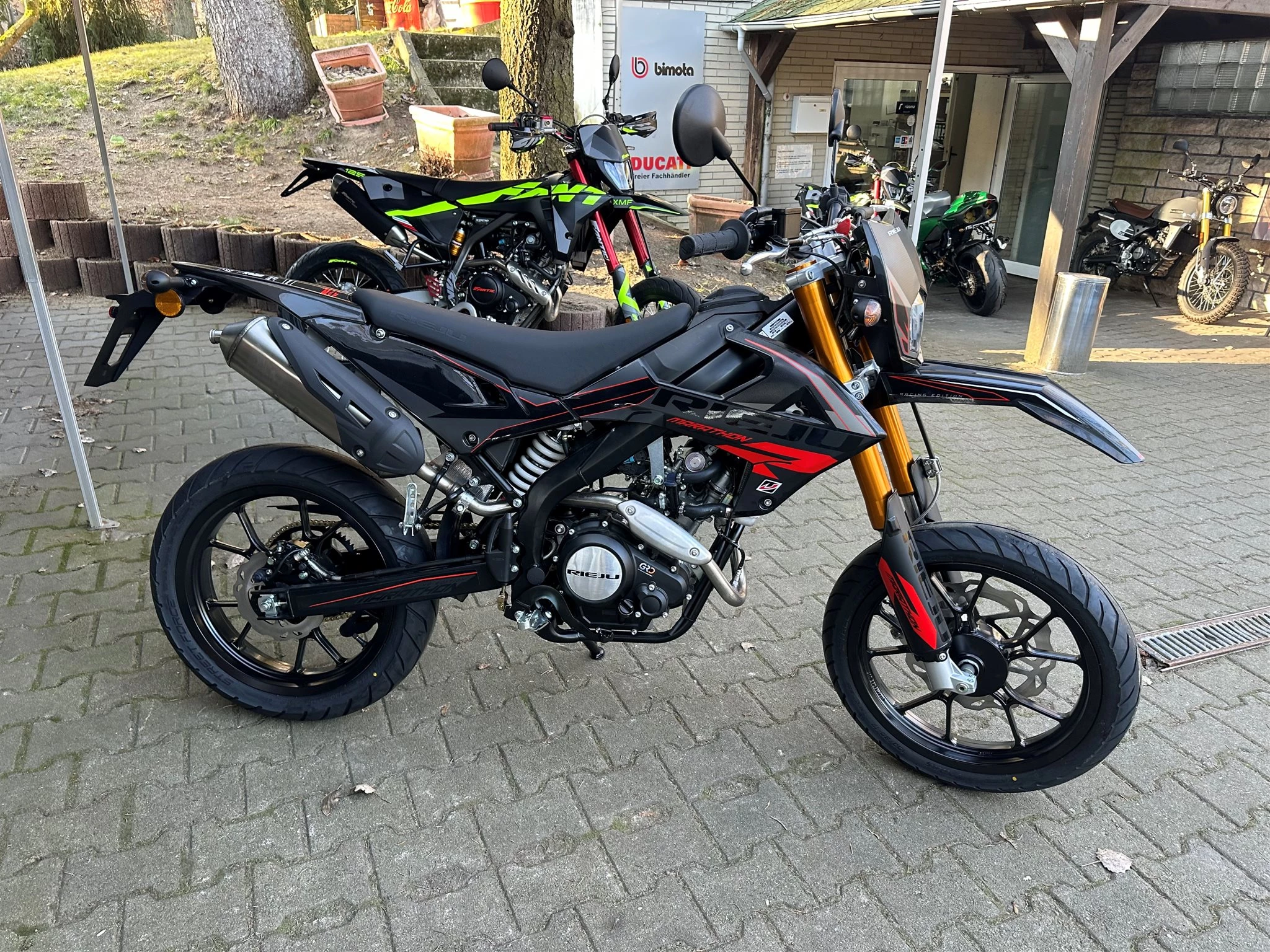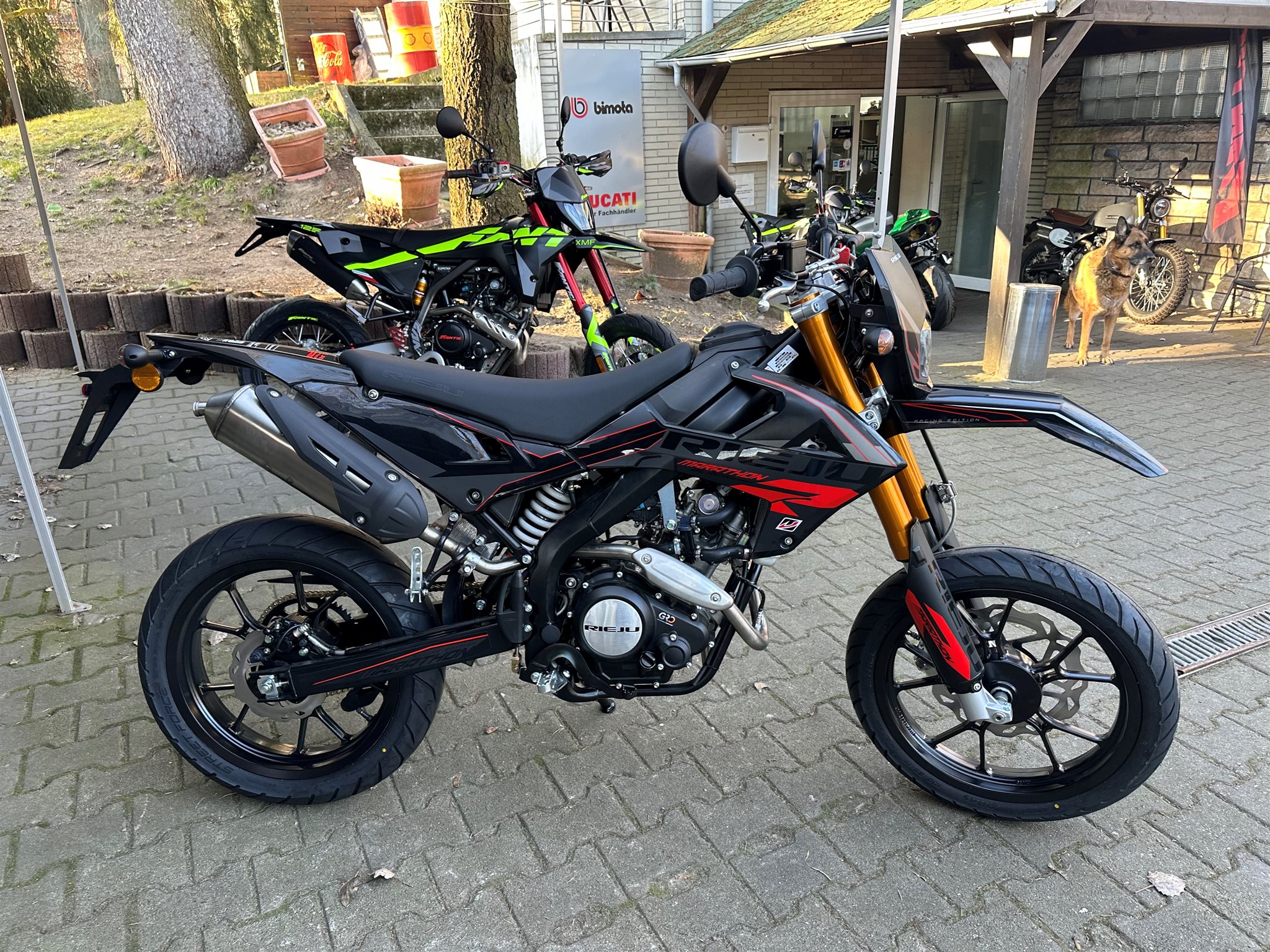Hier bieten wir die sehr schicke Rieju Marathon 125 Supermoto mit Euro 5+ in der Farbe schwarz an. Ausgestattet mit dem gierigen Minarelli Motor und einem CBS Bremssytem ( Beim bremsen vorn 70% Bremskraft & hinten 30% Bremskraft ) für ihre Sicherheit!