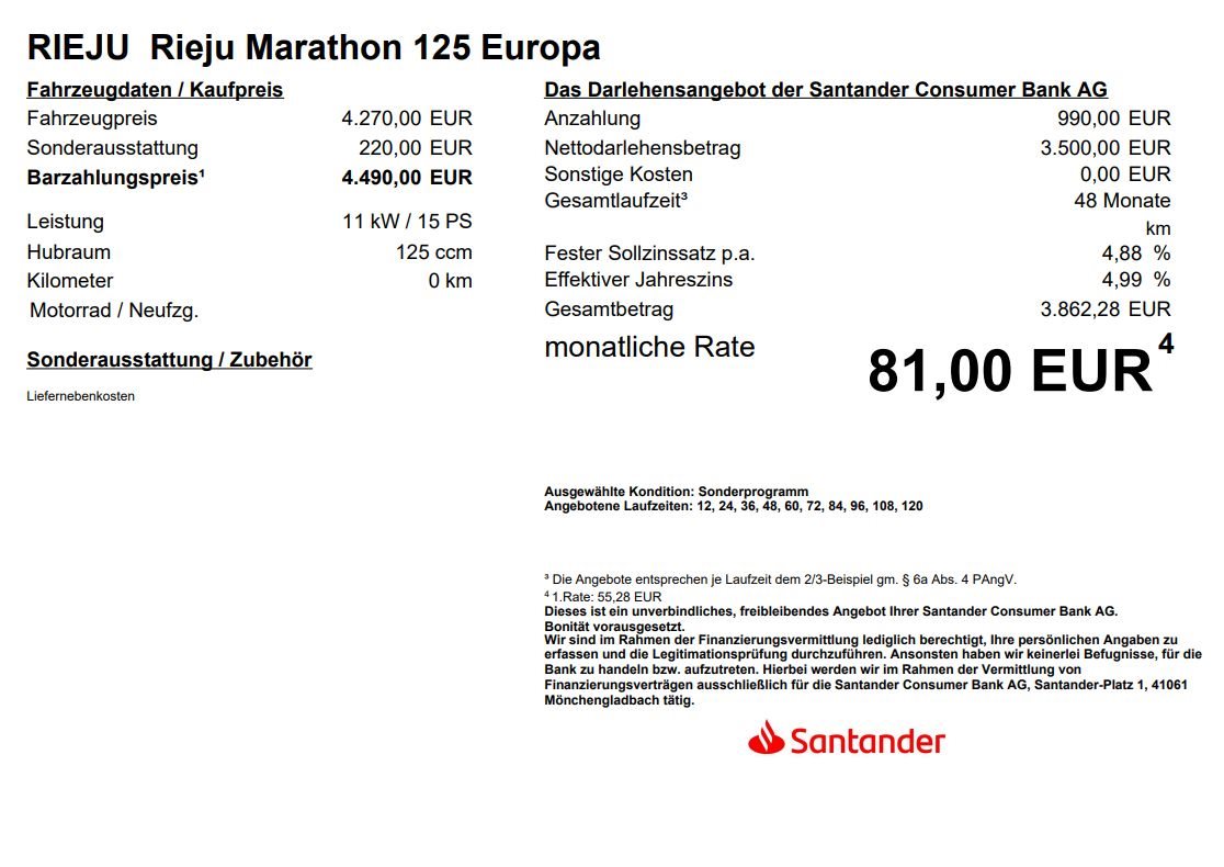 ATT Berlin Preisvorteil bei einigen Modellen vom 23.01.- 31.01.2026. Hier z.B. die hübsche Rieju Marathon 125 Europa Motard für 4270,-€ statt 4490,-€ zuzüglich 220,-€ Liefernebenkosten sichern und glatt 220,-€ Preisvorteil mitnehmen.