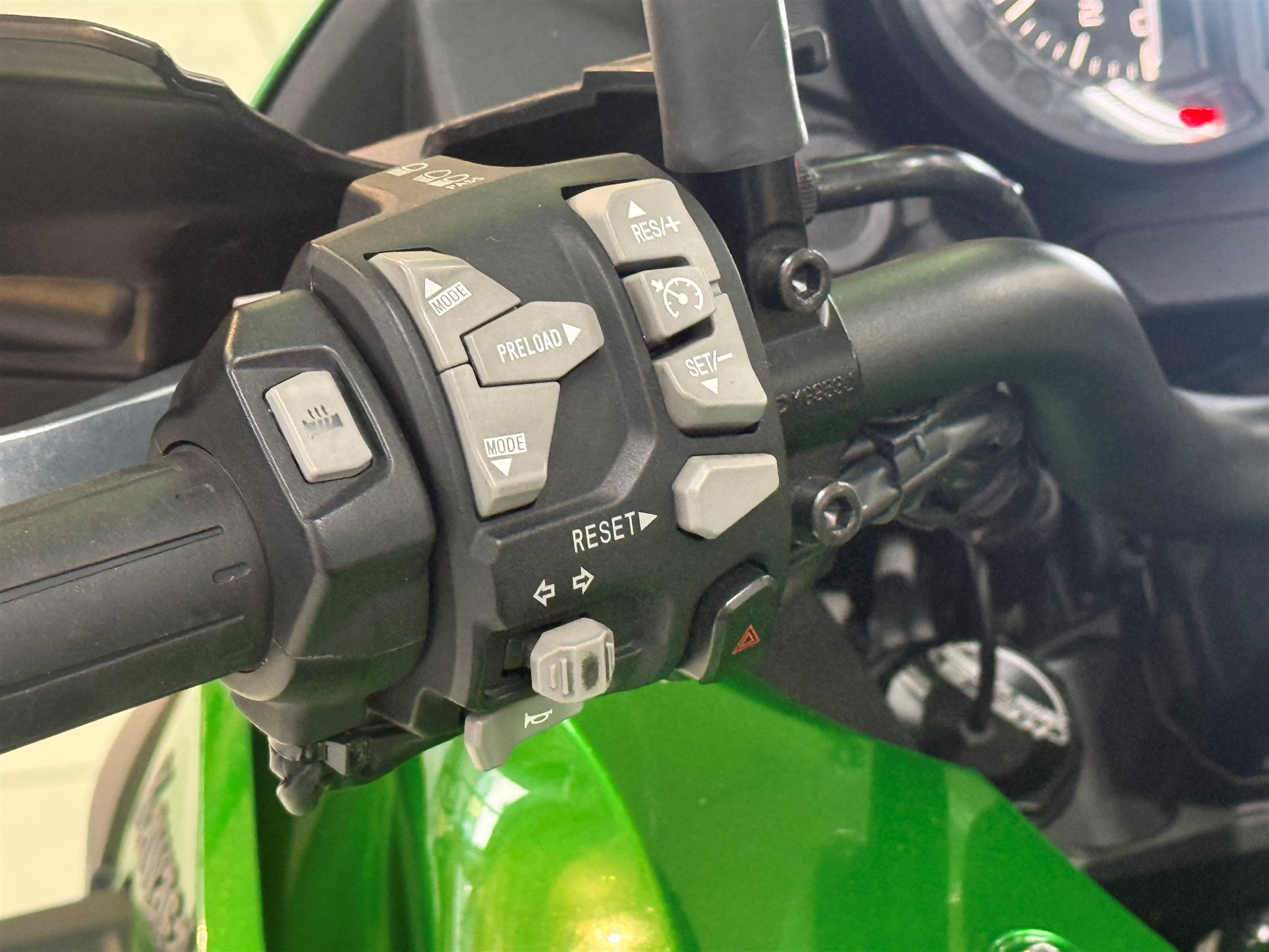Premium-Ausstattung: Elektronisches Fahrwerk (KECS), Kurven-ABS, Traktionskontrolle, Tempomat, Heizgriffe, TFT-Display, Quickshifter, Koffersystem (3Fach), Nebelscheinwerfer, Handschützer, Tankpad´s, Motorschützer