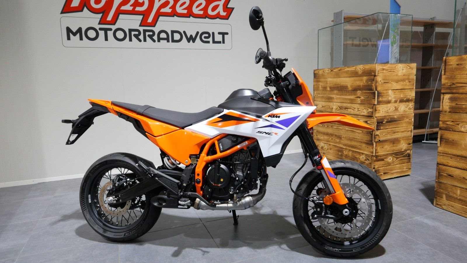 Die KTM 390 SMC R reiht sich in die KTM SuperMoto-Familie der Mittelklasse ein und verspricht grenzenlosen Fahrspaß für alle.