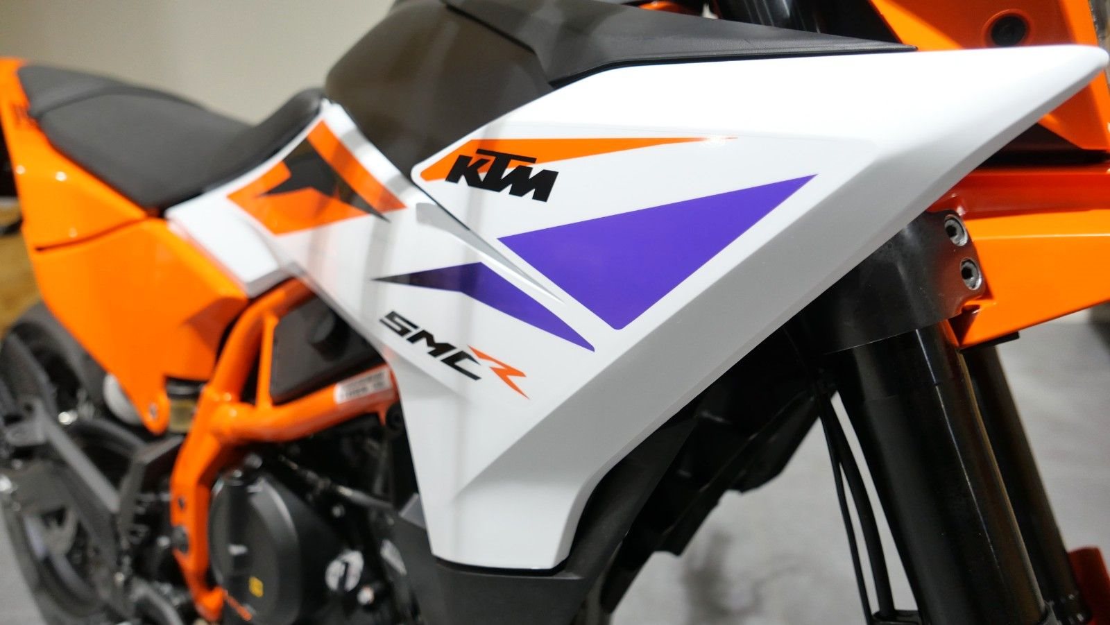 Die KTM 390 SMC R reiht sich in die KTM SuperMoto-Familie der Mittelklasse ein und verspricht grenzenlosen Fahrspaß für alle.