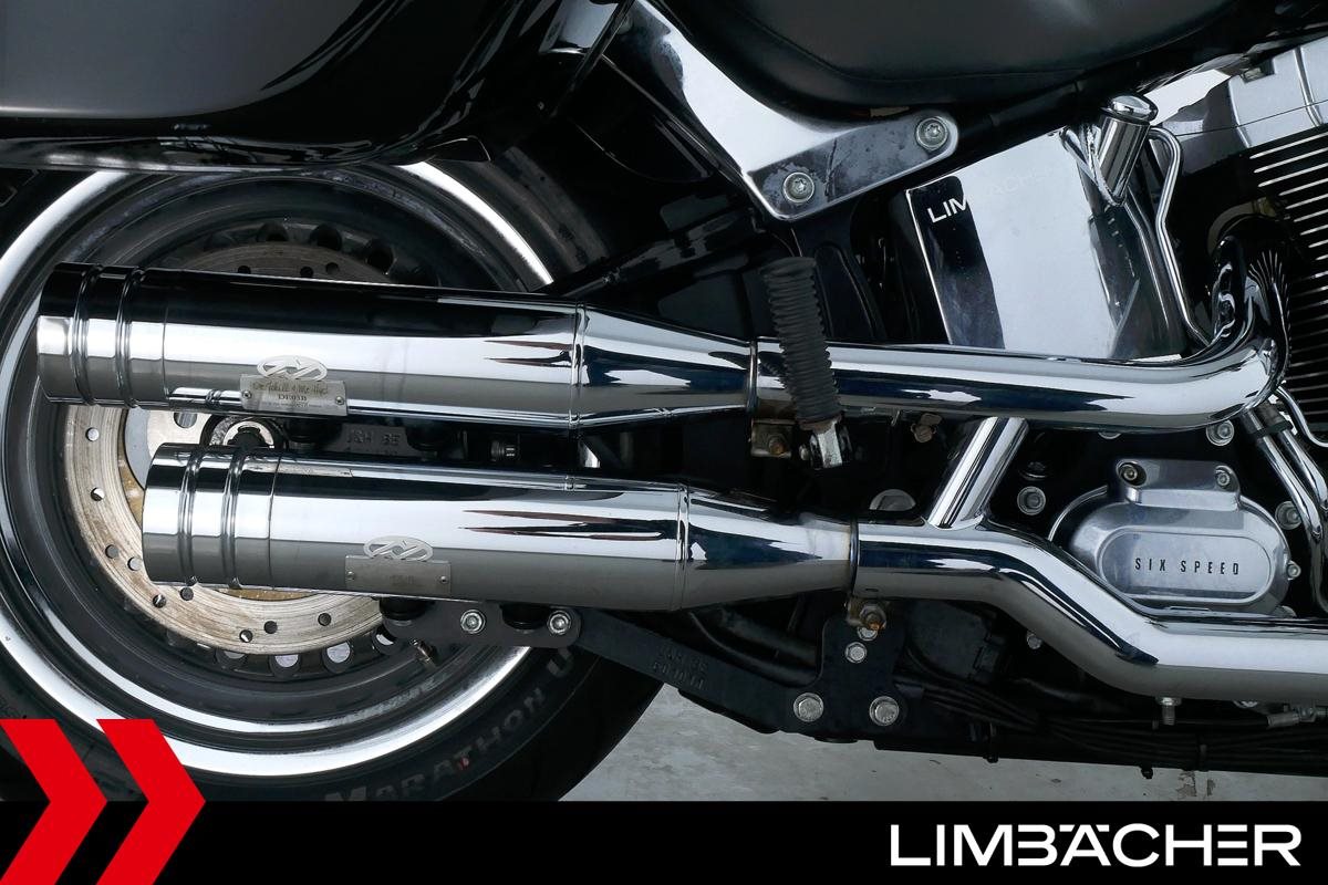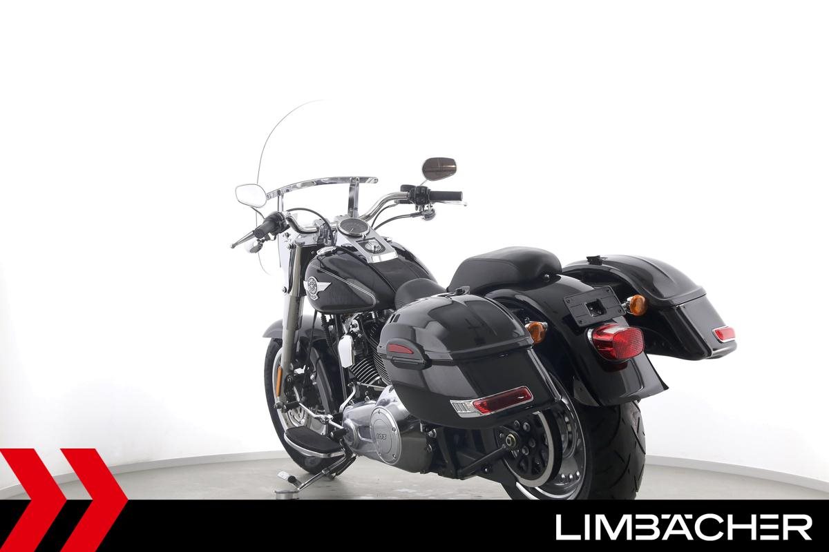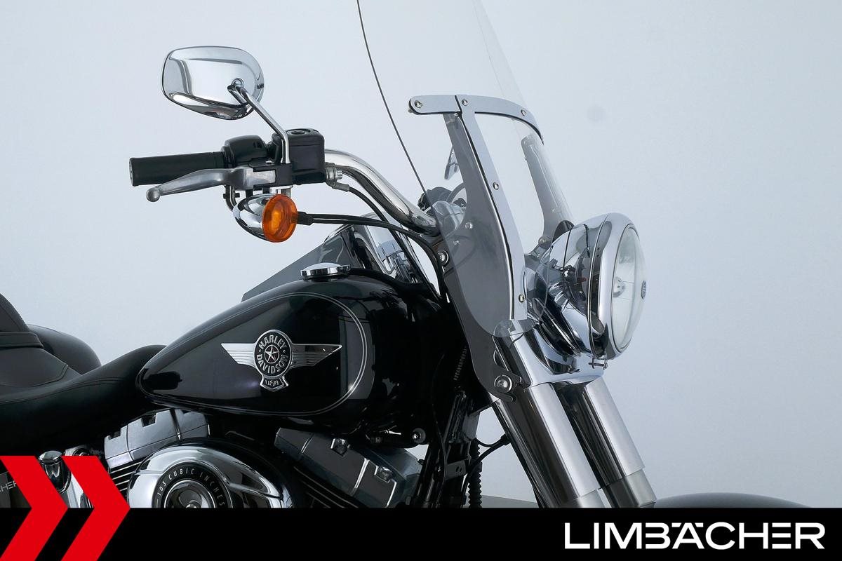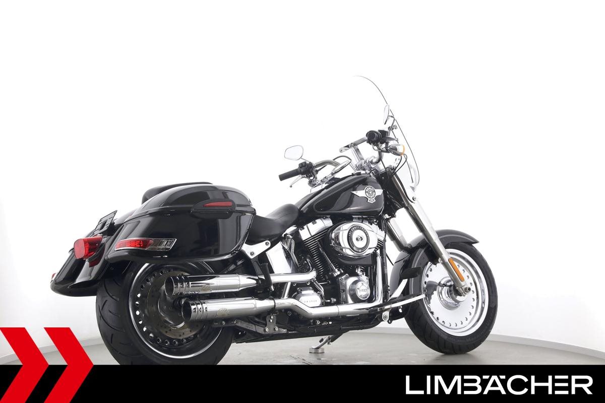 Eine Harley-Davidson Softail Fat Boy FLSTF in sehr gepflegtem Zustand u.a. mit Jekill&Hyde-Klappenauspuff sowie Touring-Windschild.