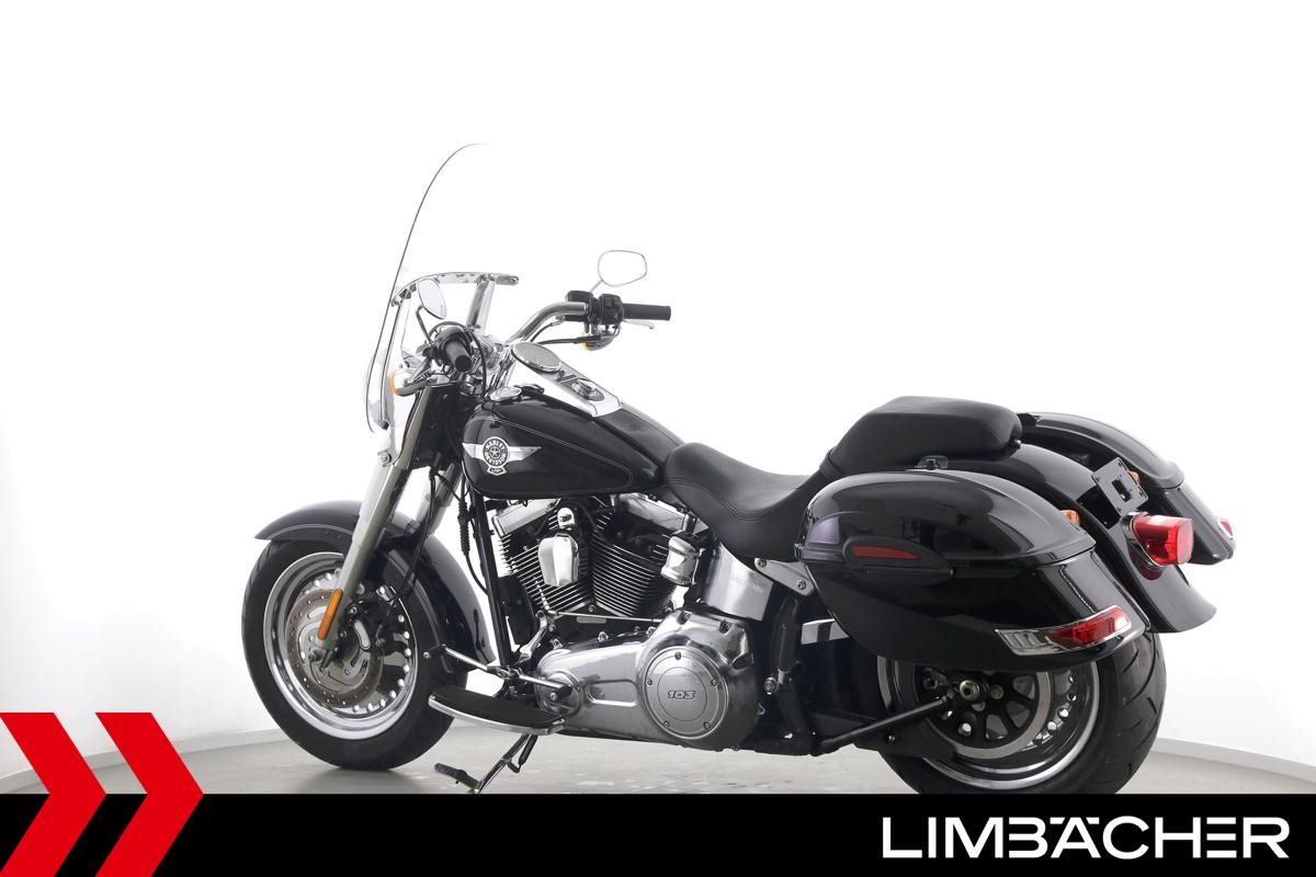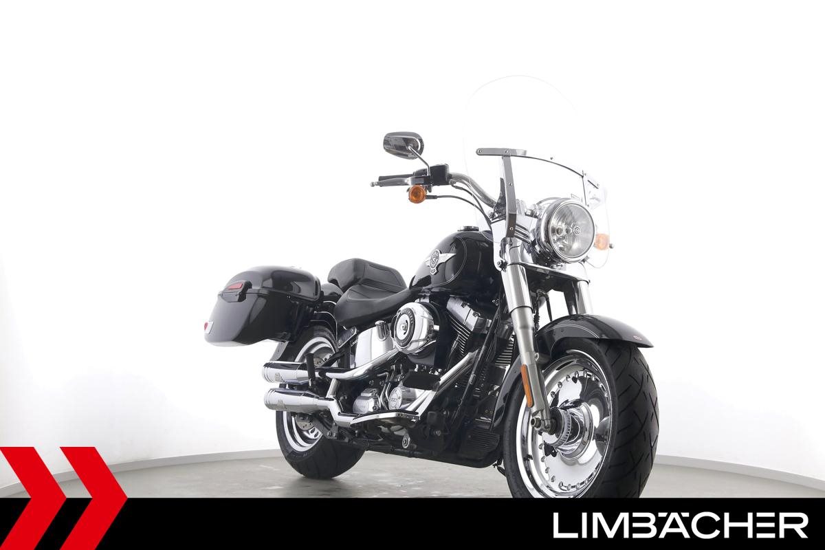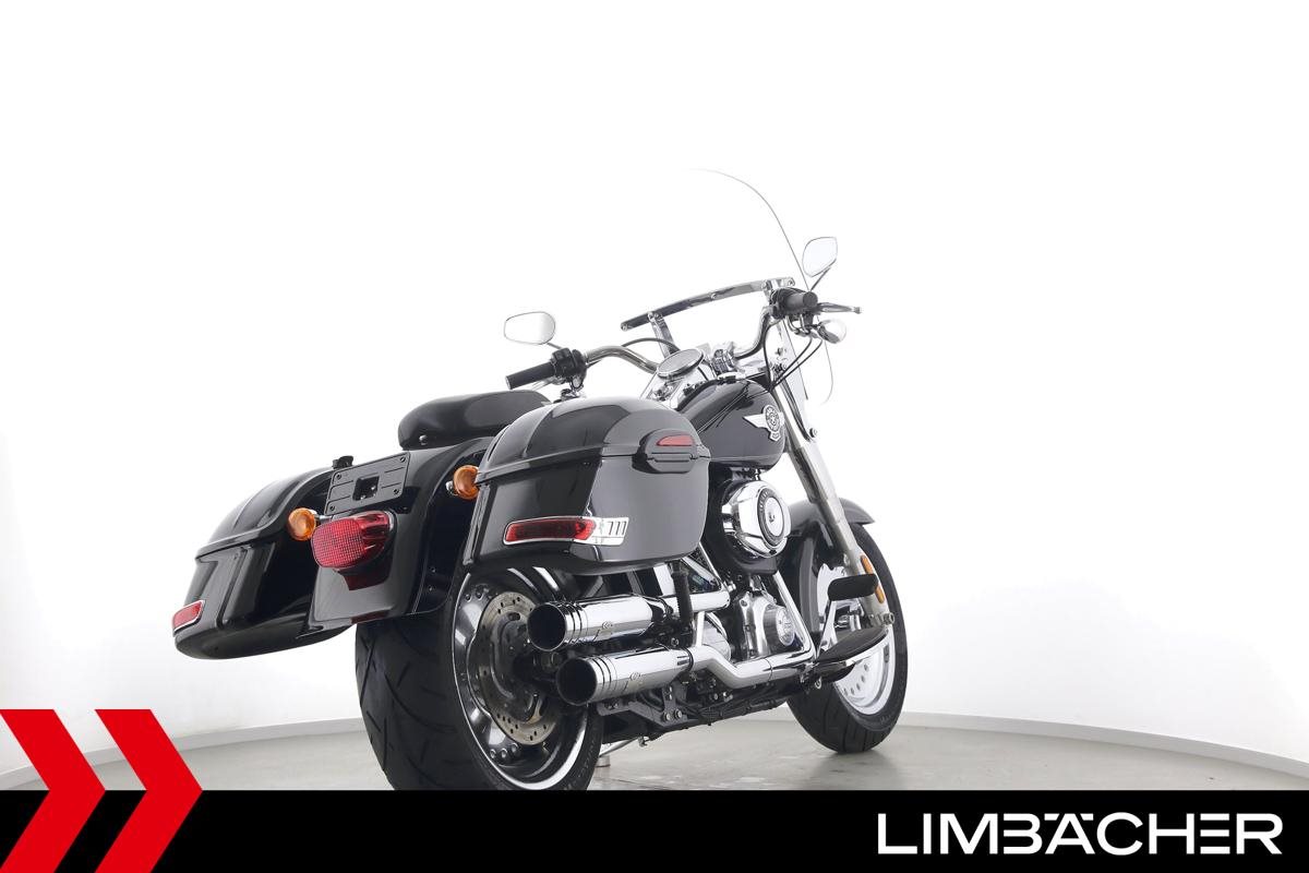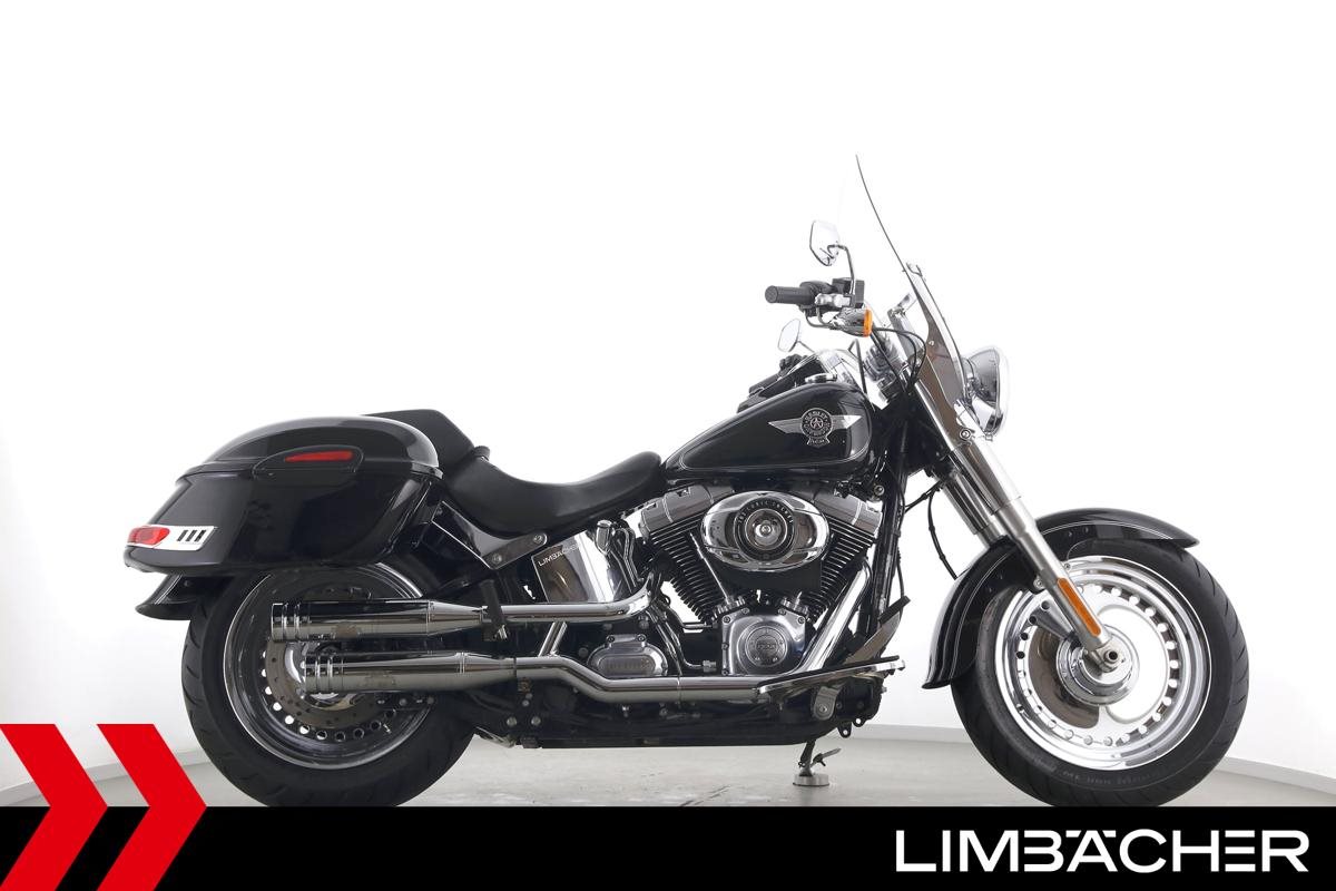 Eine Harley-Davidson Softail Fat Boy FLSTF in sehr gepflegtem Zustand u.a. mit Jekill&Hyde-Klappenauspuff sowie Touring-Windschild.