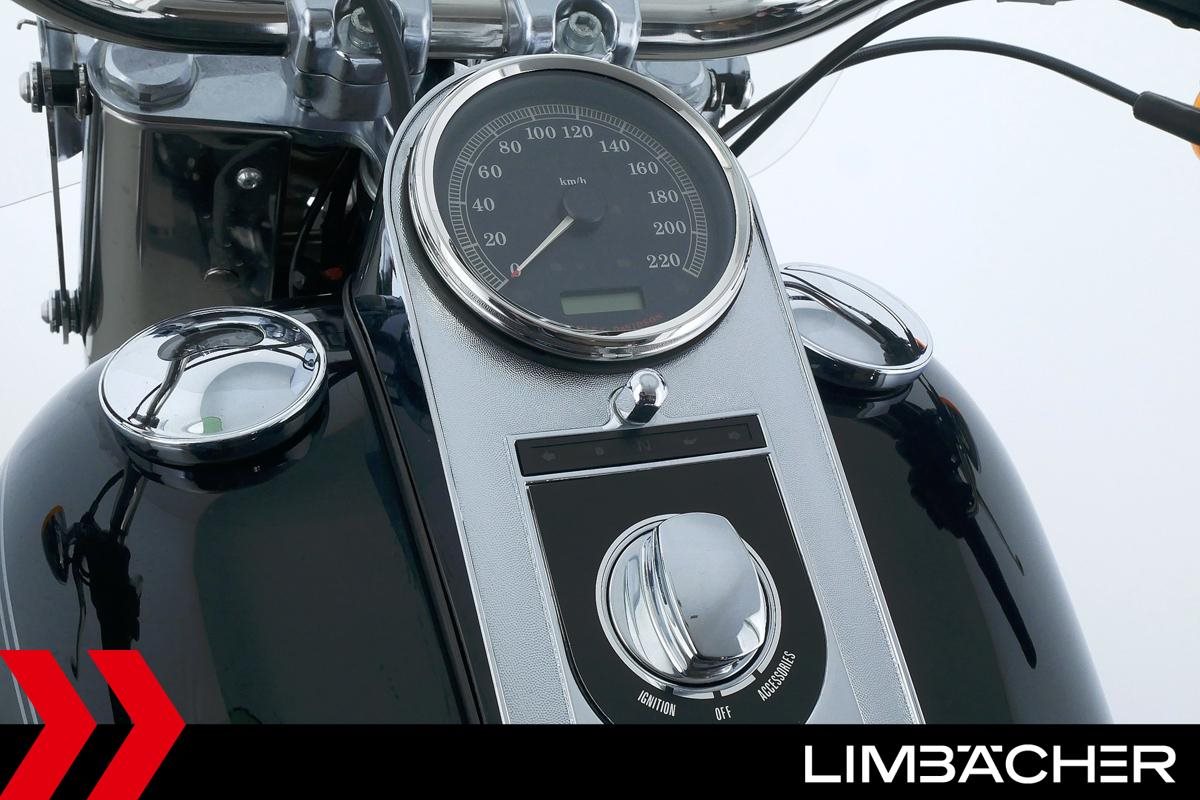 Wir bieten hier eine Harley-Davidson Softail Fat Boy FLSTF mit einer neuen Jahresinspektion inklusive 40-Punkte-Durchsicht. Alle unsere Fahrzeuge werden mit mindestens einem Jahr TÜV übergeben.