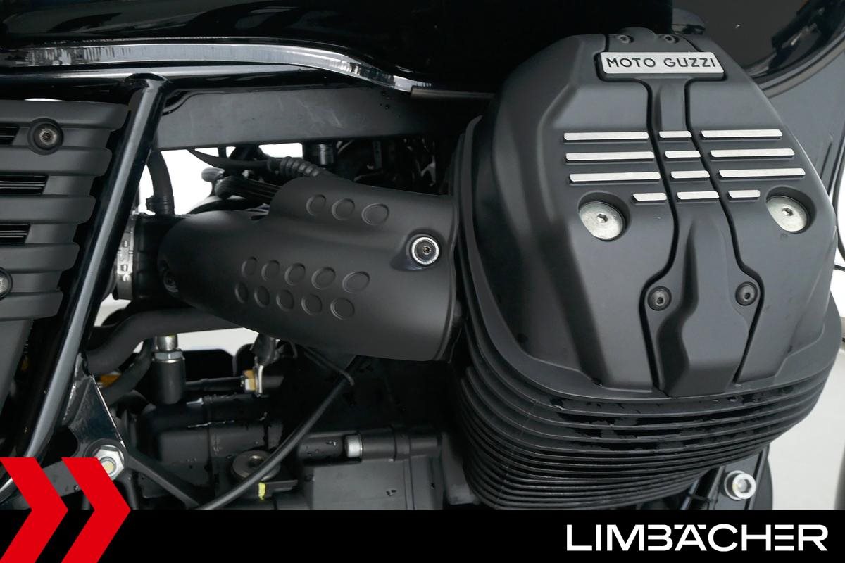 Eine scheckheftgepflegte Moto Guzzi V7 III Special aus erster Hand in gepflegtem Zustand mit Gepäckträger und GPS/Smartphonehalter.