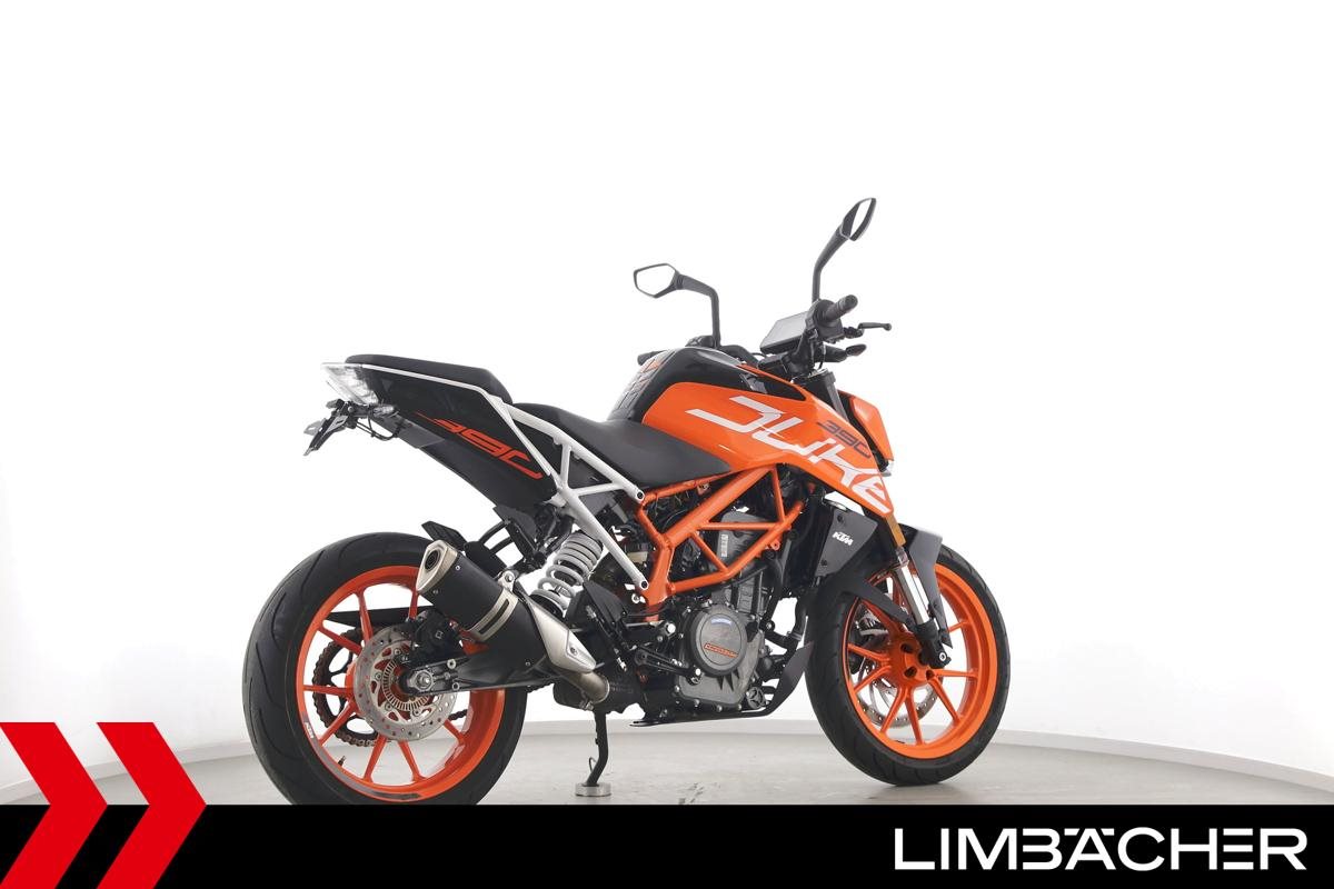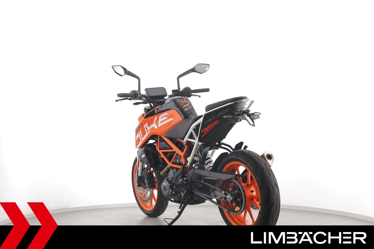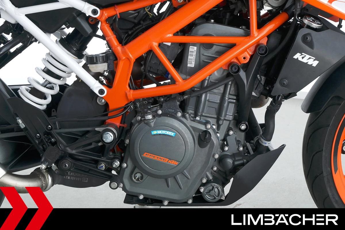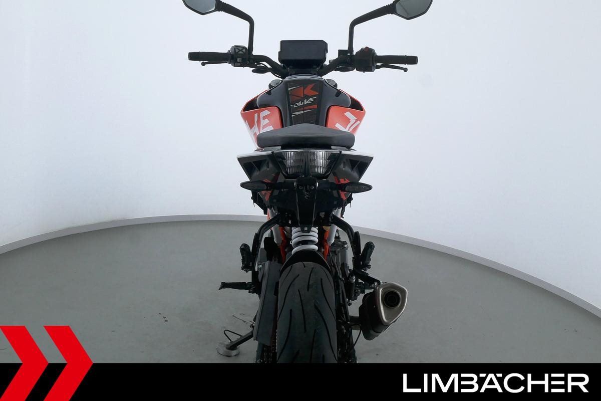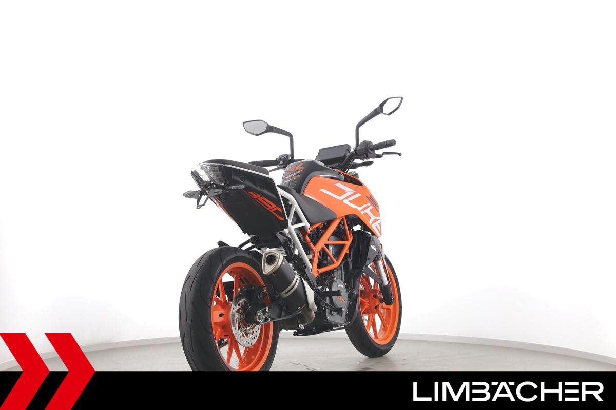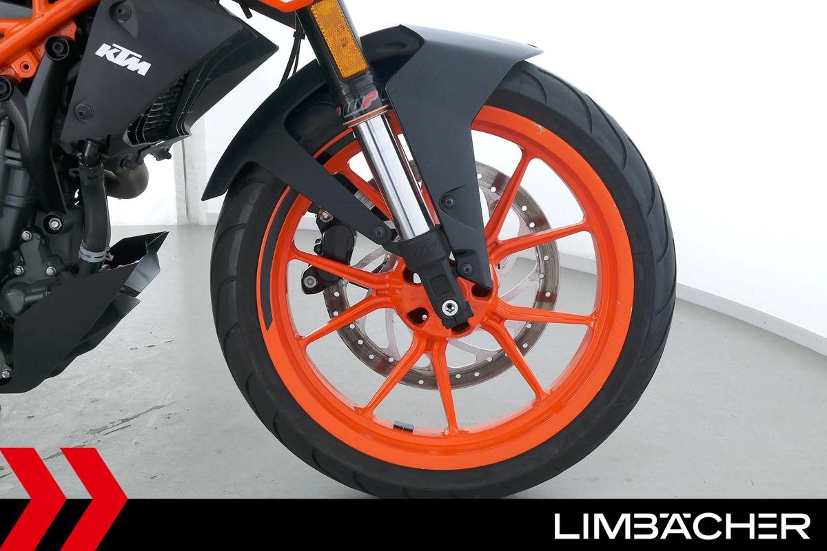 Eine scheckheftgepflegte KTM 390 Duke aus zweiter Hand in gepflegtem Zustand u.a. mit Originalausstattung sowie kurzem Kennzeichenhalter.