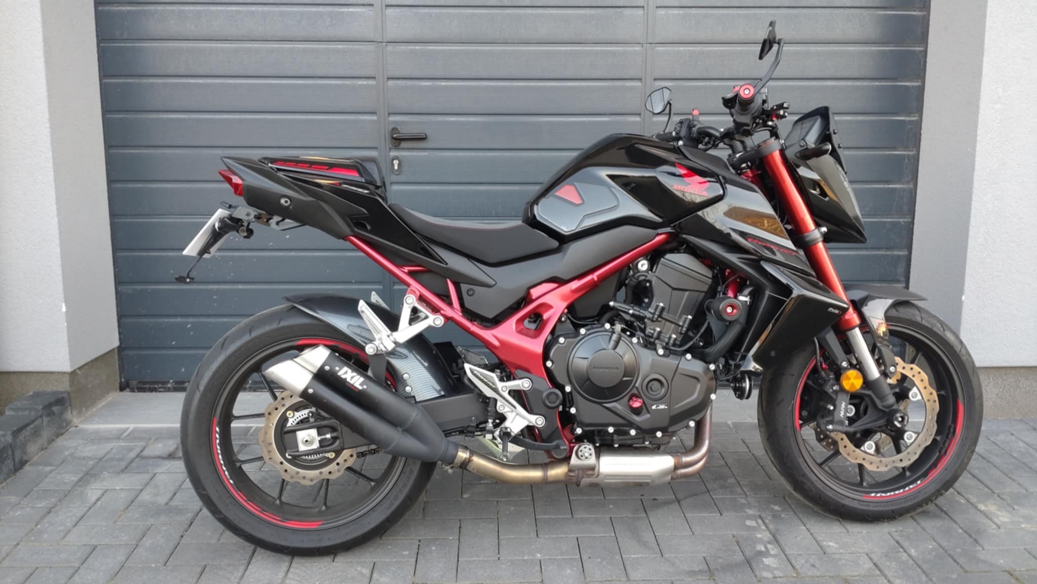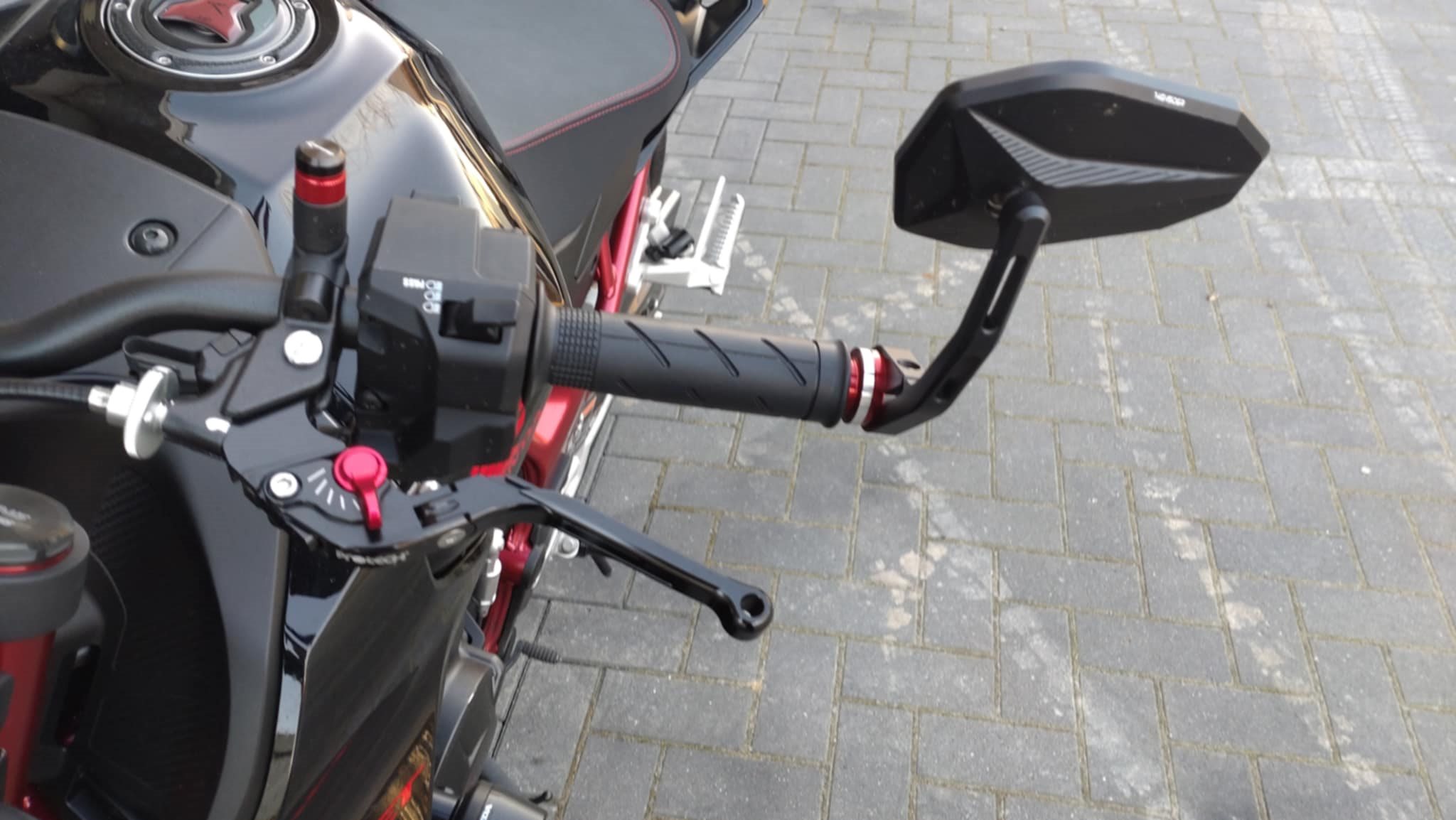 Zubehör : IXIL- Sportauspuff, Sitzabdeckung, Fahrersitz, Sport-Rasten, PROTECH Brems-/ Kupplungshebel, Lenkerendenspiegel, kleines Windschild, Alu-Lenkerbrücke, Side-Spoiler, Hinterradabdeckung, kurzes Heck, Felgendekor, Sturzpads