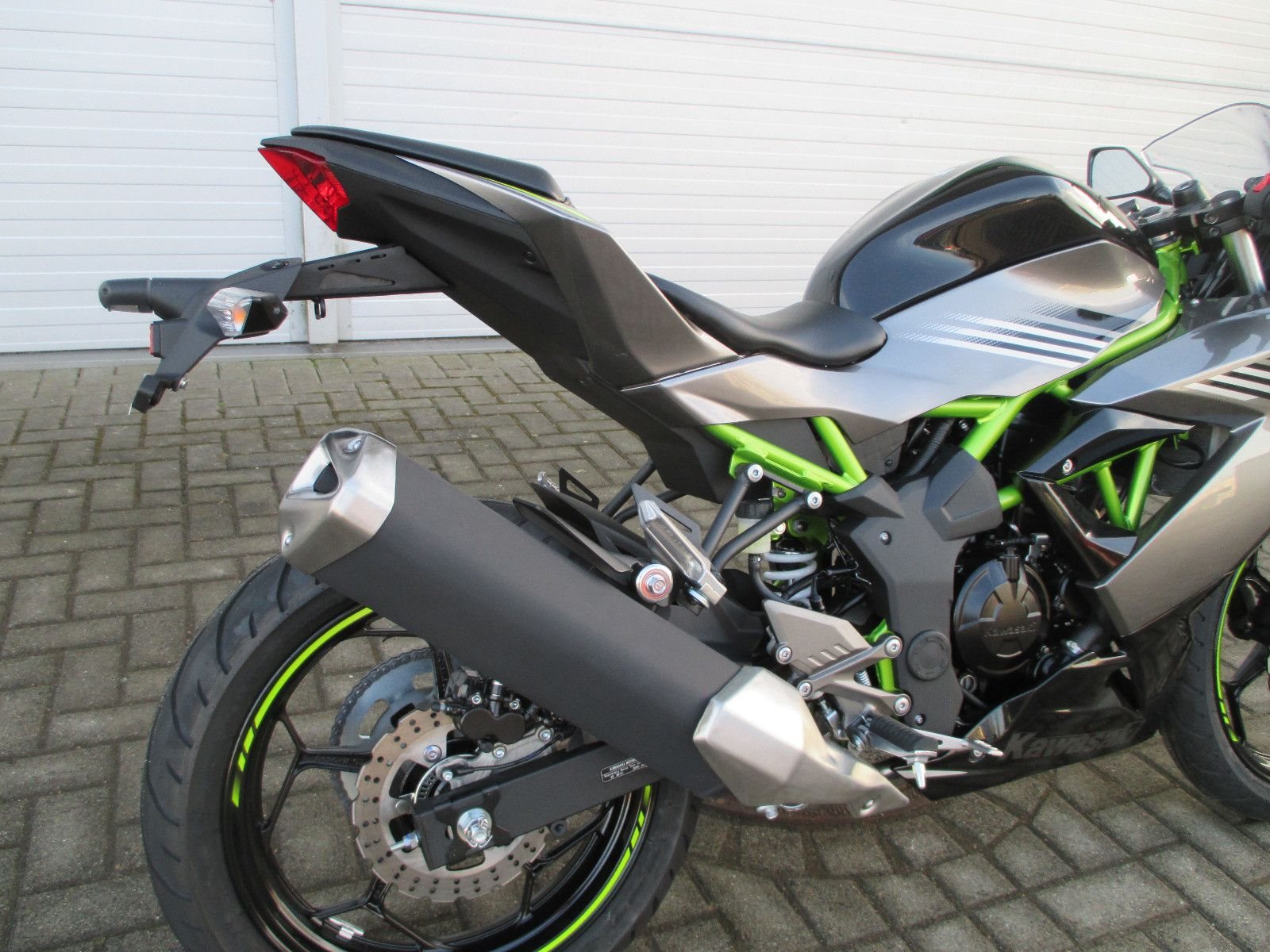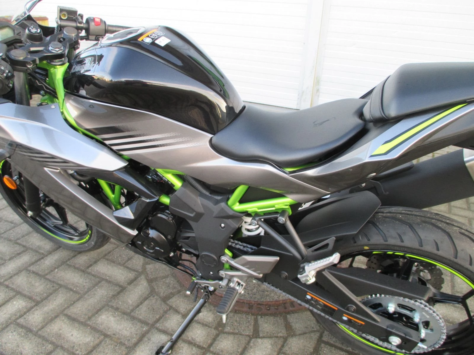 -Die Ninja 125 für die A1-Führerscheinklasse ist nicht nur der erste Schritt in die Ninja-Welt, sondern dieses Motorrad steht auch für die berühmte Ingenieurskunst von Kawasaki. Der Gitterrohrrahmen erinnert an die Ninja H2. Die schmale Silhouette, die vom Kawasaki Racing Team inspiriert wurde, weist in Richtung Ninja ZX-10R. Mit kraftvollen 11 kW (15 PS) bietet der Motor schon im unteren Drehzahlbereich viel Power. Dazu kommt das bekannte Ninja-Top-End, also ein Leistungsschub im oberen Bereich. Ninja 125 - hier beginnt der sportliche Ninja-Lifestyle von Kawasaki!
