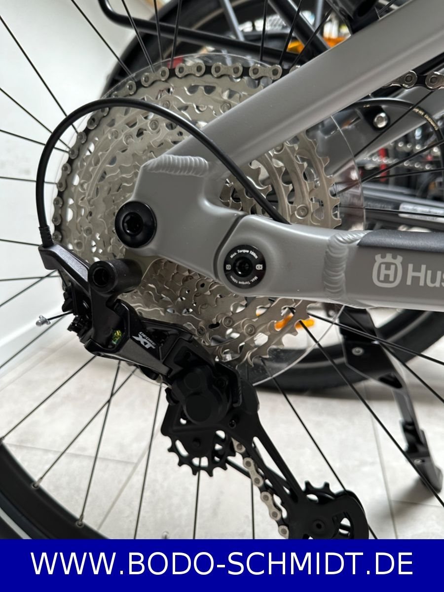 LENKER Husqvarna Ergo 31,8 mm, 640 mm, Sweep: 35 °, Rise: 20 mm RAHMEN 27.5", Alloy 6061, Full Active 4-Link, integrierter Akku, Boost, 100 mm GABEL RockShox 35 Silver TK, Solo Air, Luft, 100 mm, tapered DÄMPFER SR SUNTOUR EDGE LOR, Luft, 185x50 mm, Trunnion KURBELARM Shimano FC-EM600, Aluminium geschmiedet, Shimano EP24 SCHALTWERK Shimano Deore XT, RD-M8100, Shadow Plus, 12-S KASSETTE Shimano CS-M6100, 10-51 T KETTENBLATT Husqvarna, Narrow Wide, 38 T VORDERRADBREMSE Shimano BR-M8120, 4-Kolben, Hydraulische Scheibenbremse HINTERRADBREMSE Shimano BR-M8100, 2-Kolben, Hydraulische Scheibenbremse GRIFFE Husqvarna Ergo, Schraubgriffe VORBAU Husqvarna 31,8, Ahead, einstellbar SATTELSTÜTZE Husqvarna, 31,6 mm VORDERRAD Rim: Ryde Disc26, geöst / Hub: Husqvarna DA210F, Center Lock, 15x110 mm, Steckachse HINTERRAD Rim: Ryde Disc26, geöst / Hub: Husqvarna DA210R, Center Lock, 12x148 mm, Steckachse REIFEN Continental CONTACT Plus City, Reflex, 55-584, 27.5, 2.2 DISPLAY Shimano SC-E6100, LCD-Display, ANT, Bluetooth LE AKKU Core S1, 630 Wh, 36 V, 17,5 Ah LADEGERÄT Charger S, 4 A GEPÄCKTRÄGER Husqvarna Tour FS, SnapIt 2.0, 15 kg belastbar SCHEINWERFER Litemove HKSE-150, 70 lx RÜCKLICHT Supernova M99-TL2 FEDERWEG GABEL 100 mmSTVZO KONFORM STVZO JA OPERATION AREA Feld-/Waldwege GEWICHT 28.4 kgZUL. FAHRZEUGGESAMTGEWICHT 130 kgANHÄNGERFREIGABE Anhängerfreigabe AKKUKAPAZITÄT 630 WhBEDIENEINHEIT Shimano SW-E7000-L GEPÄCKTRÄGERSYSTEM SnapIt 2.0 SCHUTZBLECHE Hebie Wingee KETTENFÜHRUNG Direct Mount PEDALE Husqvarna, Aluminium STÄNDER Massload, Hinterbauständer i18, einstellbar BREMSEN BREMSE HINTEN TYP Hydraulische Scheibenbremse RAHMEN MATERIAL Aluminium FEDERWEG RAHMEN 100 mmSCHALTUNGSTYP Kettenschaltung SCHALTHEBEL Shimano Deore, SL-M6100, Rapidfire Plus KETTE KMC e12S STEUERSATZ Husqvarna ZS44/ZS56 MOTOR Shimano EP8, DU-EP800, 250 W, 85 Nm BREMSSCHEIBE HINTEN Shimano RT-EM600, 180 mm, Center Lock BREMSSCHEIBE VORNE Shimano SM-RT64, 180 mm, Center Lock BREMSHEBEL Shimano BL-M8100, Bremshebel einstellbar, 2-Finger KLEMMSCHELLE Husqvarna 34,9, Innensechskant MODELLJAHR 2022 LAUFRADGRÖSSE 27.5"/584mm FARBE 1 dark grey AUSFÜHRUNG EUROPE GRUPPIERUNG Bicycle Rahmentyp Bicycle Farbe gesamt Bicycle Rahmengröße