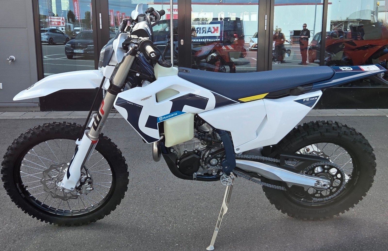 Die FE 501 ist das stärkste Modell in der Husqvarna Enduro-Leitung. Die fortschrittliche elektronische Steuerung ermöglicht es, die Leistungsabgabe an die individuellen Vorlieben des Fahrers anzupassen, um die Kontrolle zu gewährleisten und ein individuelles Fahrerlebnis zu ermöglichen. Im Inneren des Motors befinden sich die Wellenanordnungen in der Nähe des Schwerpunkts. In Kombination mit der WP Suspension und dem agilen Fahrwerk trägt dies zu einem reaktionsschnellen Fahrverhalten bei. Das Enduro-spezifische 6-Gang-Getriebe von Pankl Racing Systems schaltet für jeden Gang ein eigenes Motorkennfeld ein, um die Fahrbarkeit unter allen Bedingungen zu verbessern. Komplettiert wird die FE 501 durch die schwedisch inspirierte Grafik, die auf die funktionale Karosserie aufgebracht wurde und für einen unverwechselbaren Look sorgt.