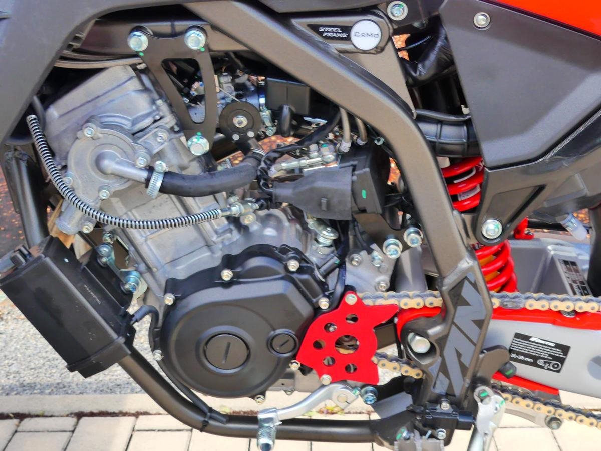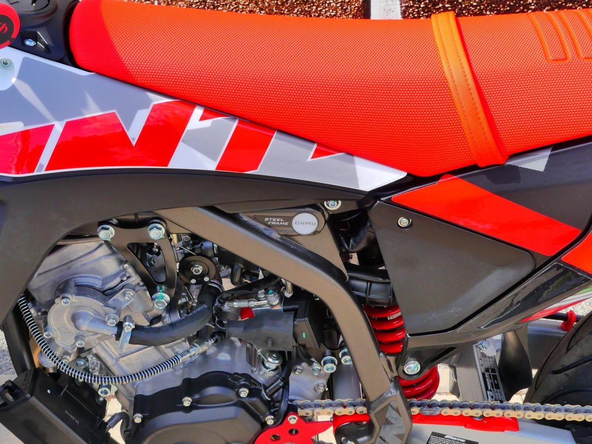 Ausgestattet mit dem elektronisch eingespritzten Minarelli 125 4T-Motor bietet diese neue Generation ein reaktiveres und leistungsstärkeres Fahrerlebnis, das den neuesten Vorschriften entspricht. Eine Revolution auf zwei Rädern. Rennsport-Performance: MXGP-Style-Auspuff, neue Hinterradaufhängung und Stahl-Schwinge verbessern die Stabilität und Kontrolle in jeder Situation. Fortschrittliche Technologie: LED-Frontscheinwerfer für eine starke Beleuchtung und CAN-System für die Datenkommunikation heben das Fahrerlebnis auf ein neues Level.