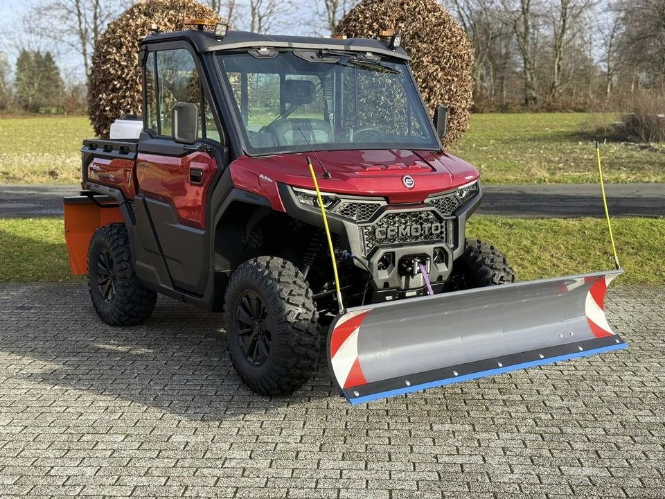 Abgebildet ist ein CFMoto UForce Pro Highland mit hochwertiger Winterdienstausstattung, die keine Wünsche offenlässt.