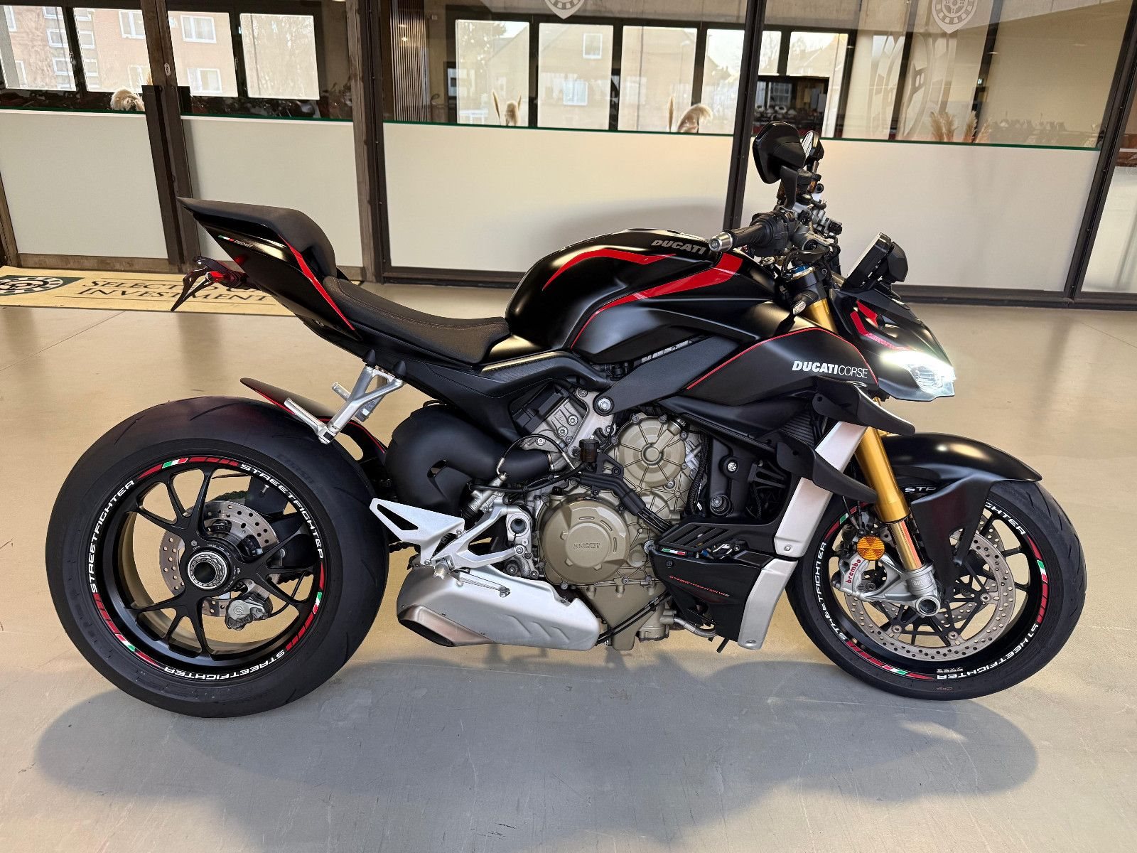 Zum Verkauf steht eine Ducati Streetfighter V4 aus dem Jahr 2021 - ein Motorrad, das keine Kompromisse kennt.