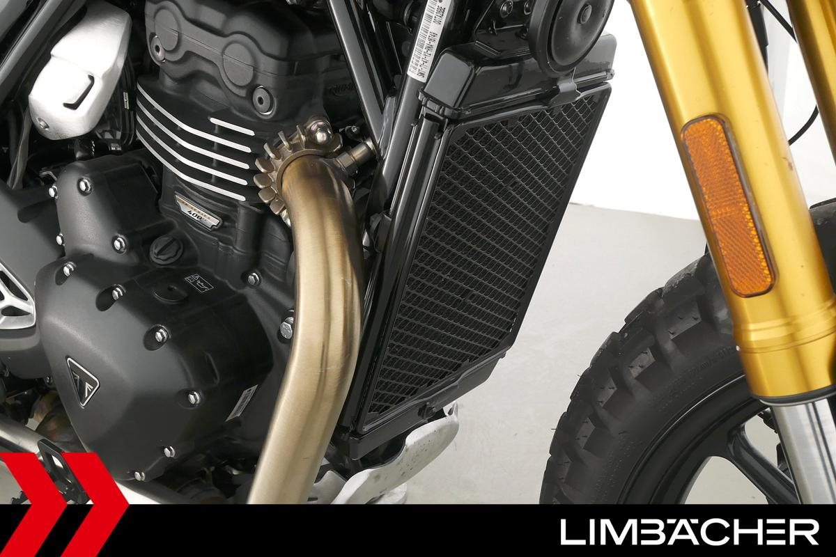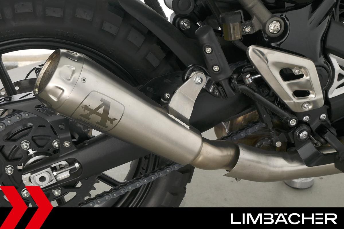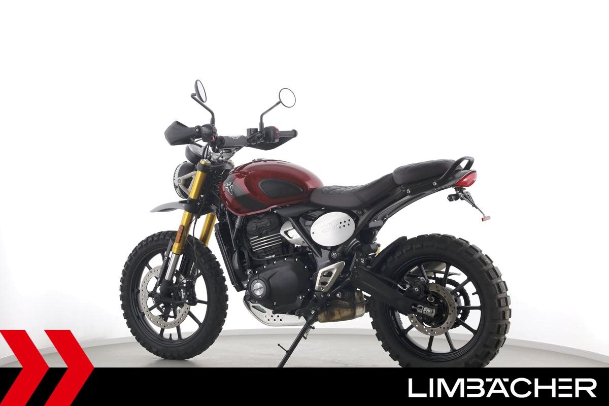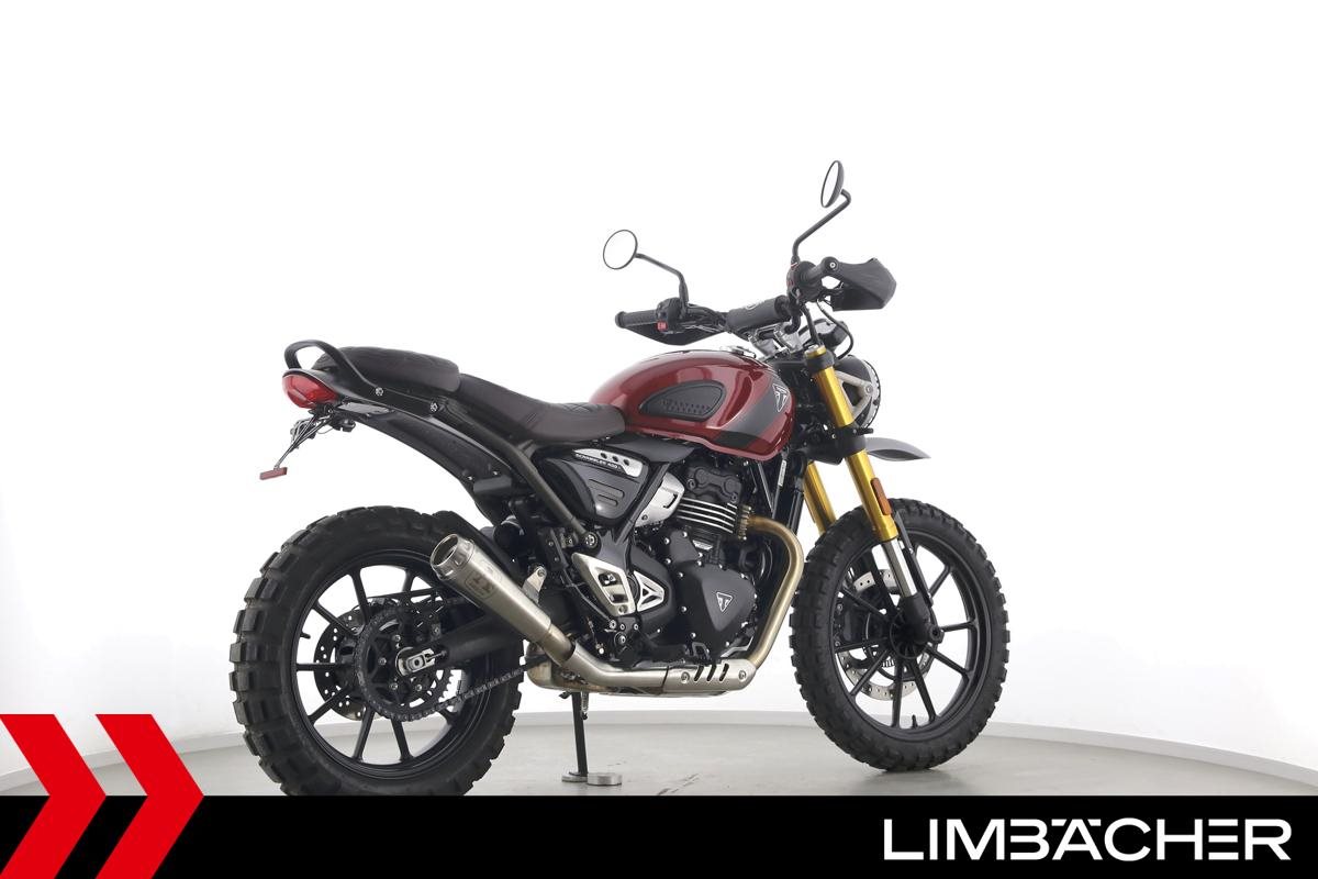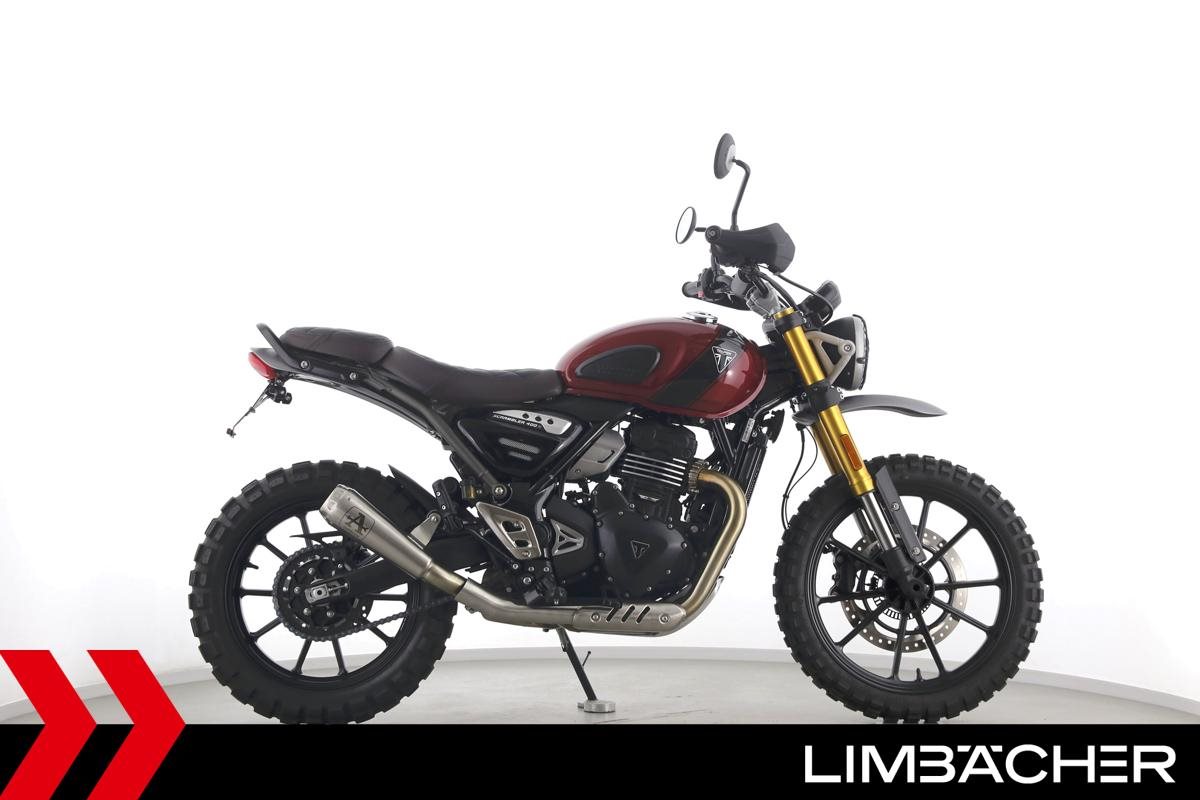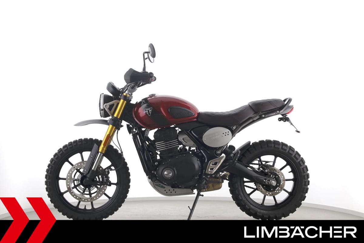 Eine scheckheftgepflegte Triumph Scrambler 400 X aus erster Hand in Topzustand u.a. mit Arrow-Endschalldämpfer sowie kurzem Kennzeichenhalter.
