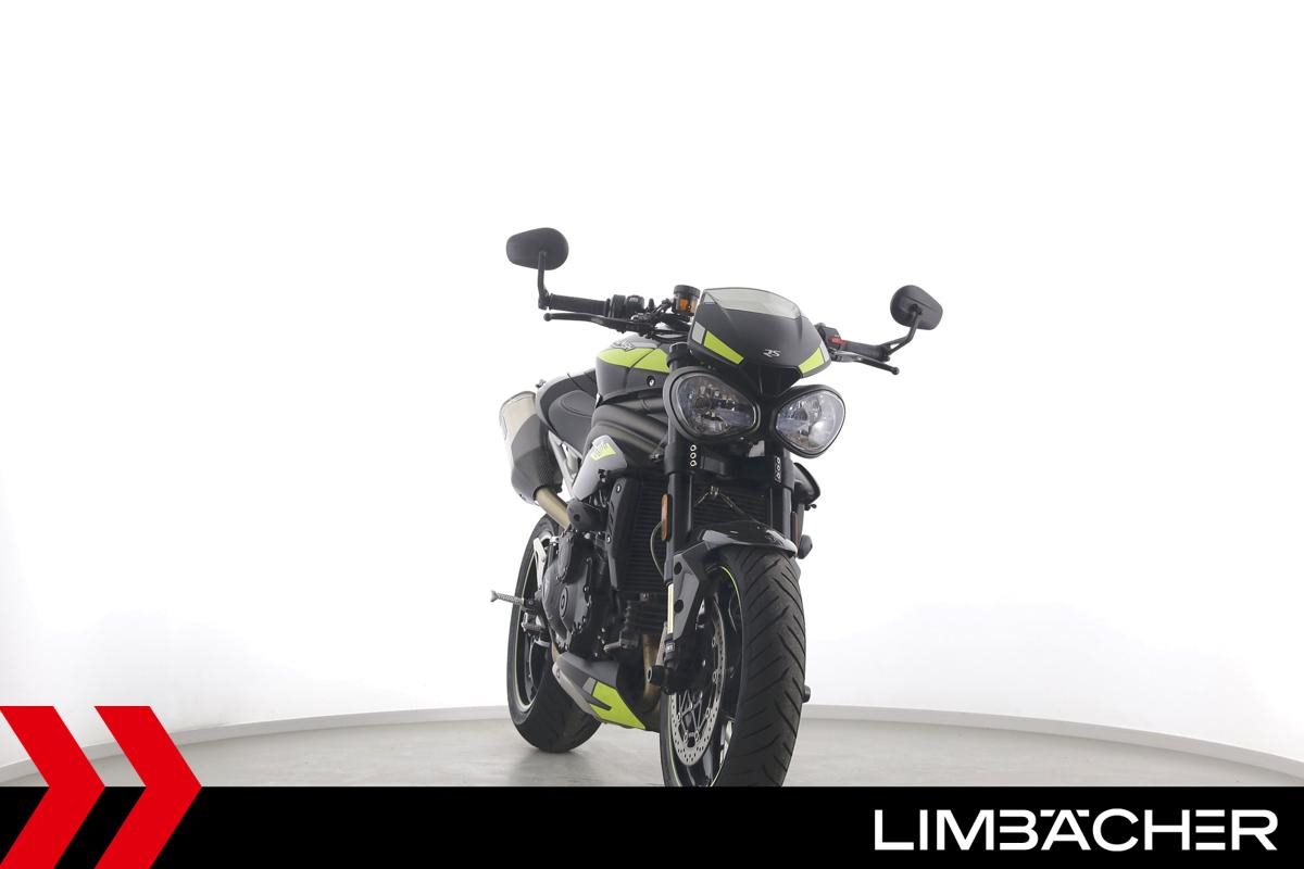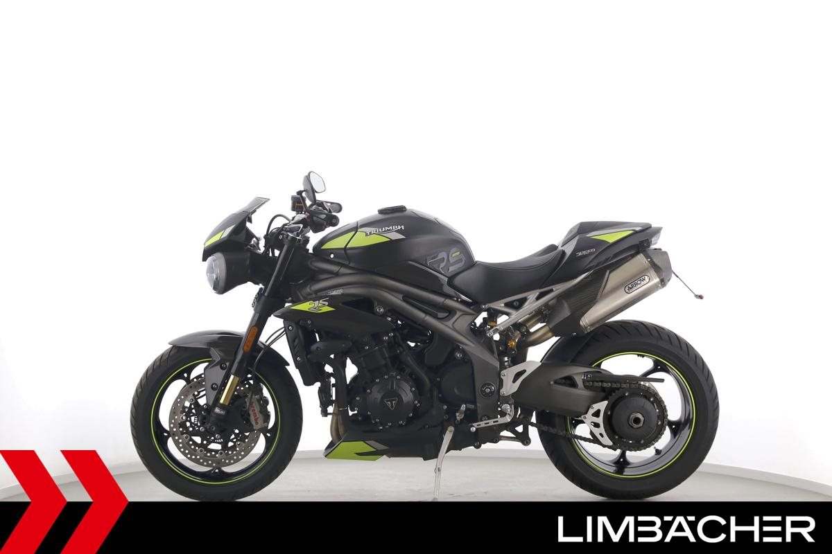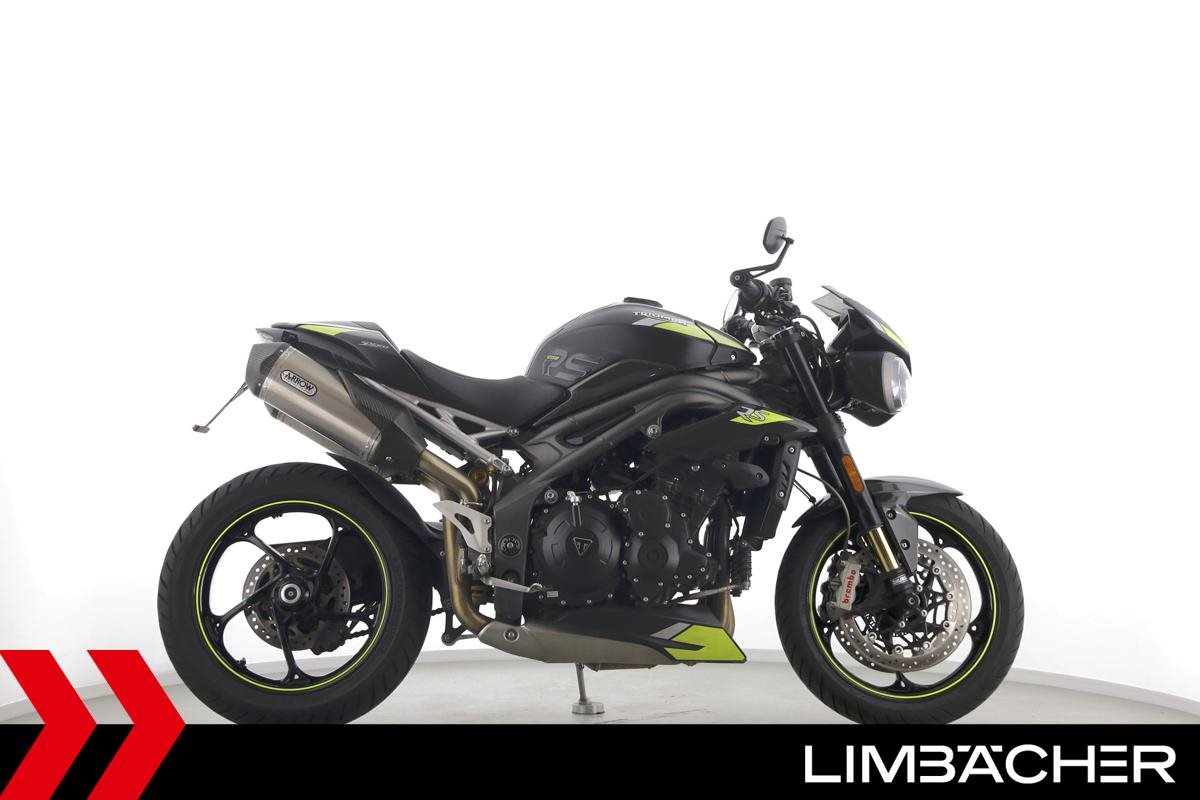 Eine scheckheftgepflegte Triumph Speed Triple 1050 RS in sehr gepflegtem Zustand u.a. mit Arrow-Endschalldämpfer sowie kurzem Kennzeichenhalter.