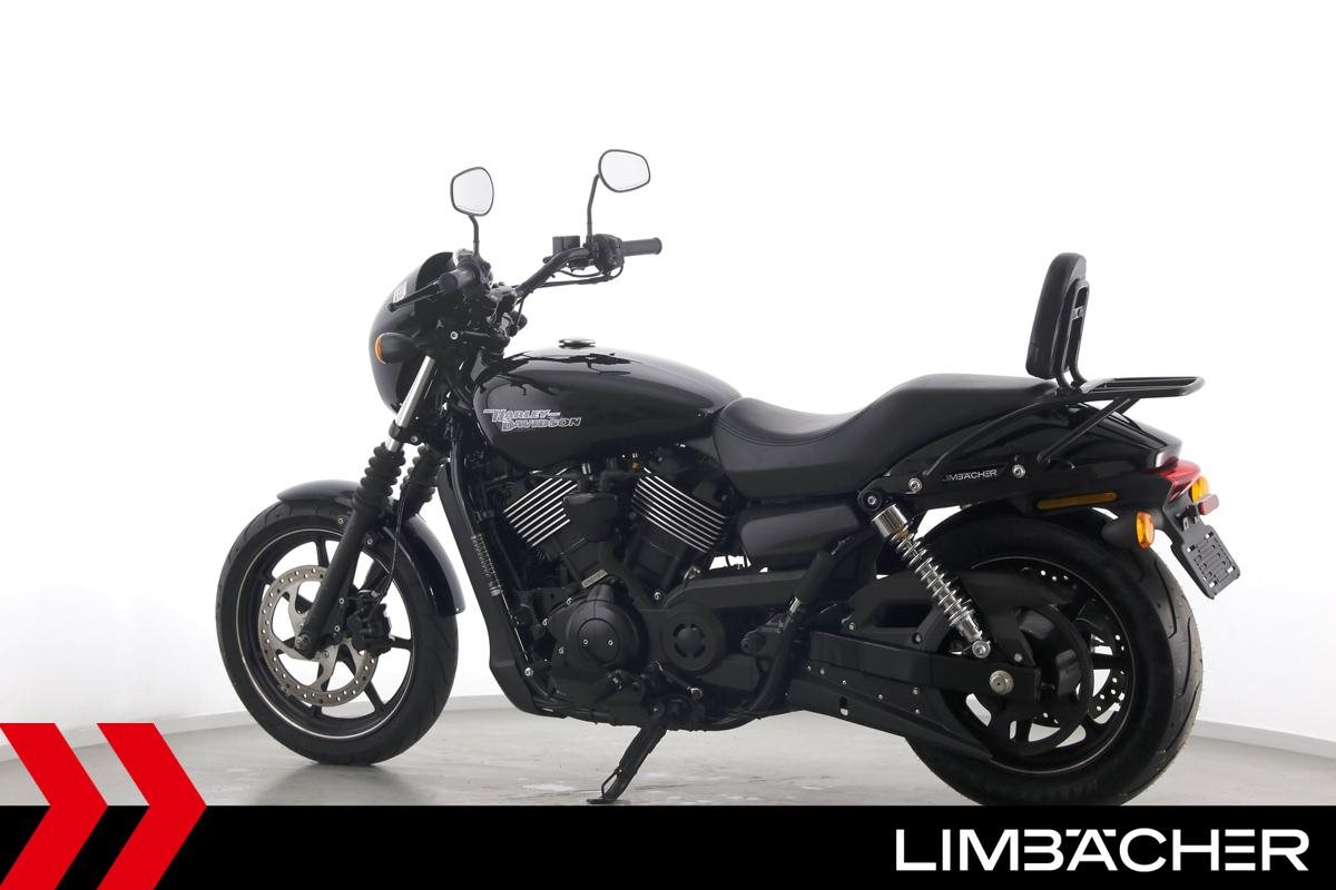 Eine Harley-Davidson Street 750 aus zweiter Hand in gepflegtem Zustand u.a. mit Originalausstattung und Gepäckträger.