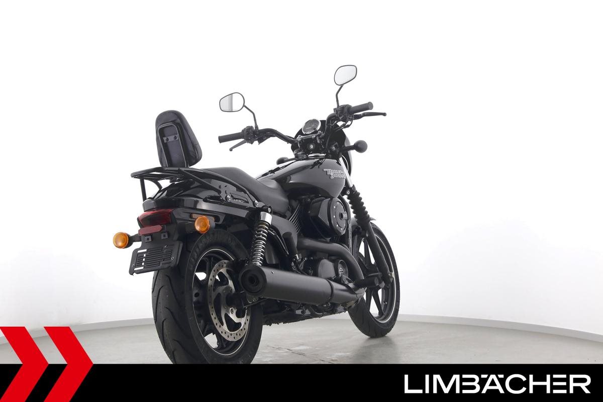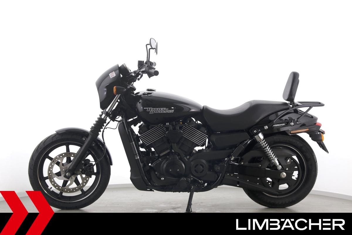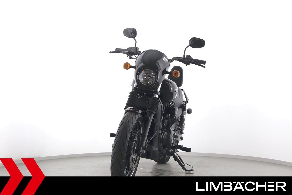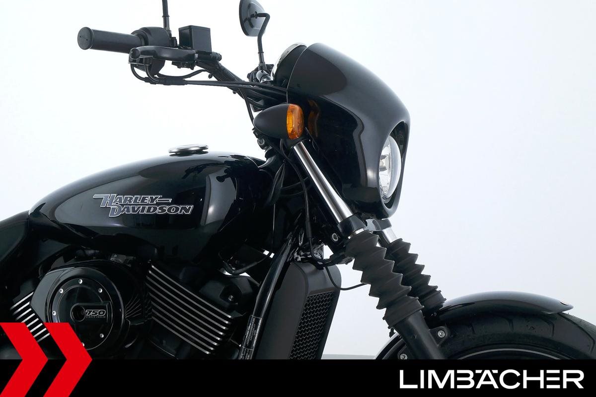 Eine Harley-Davidson Street 750 aus zweiter Hand in gepflegtem Zustand u.a. mit Originalausstattung und Gepäckträger.