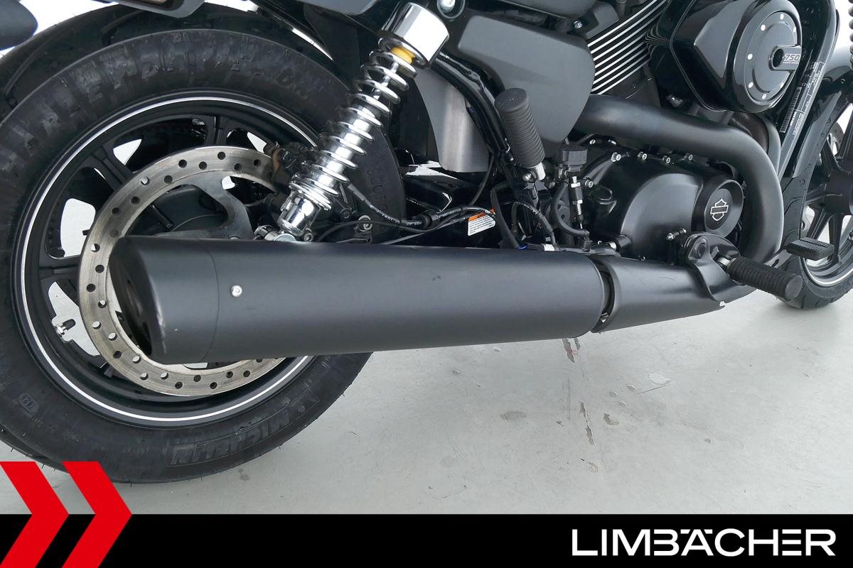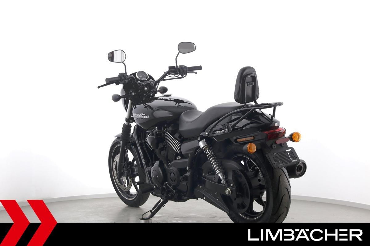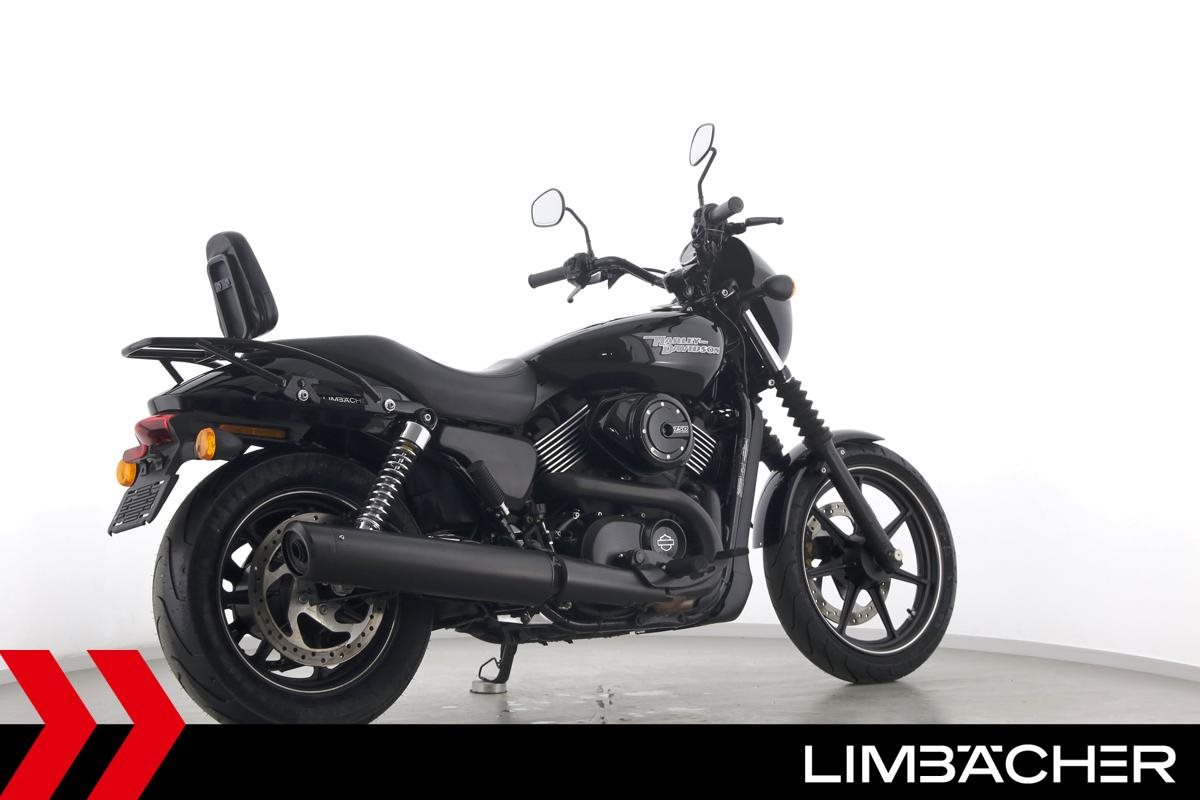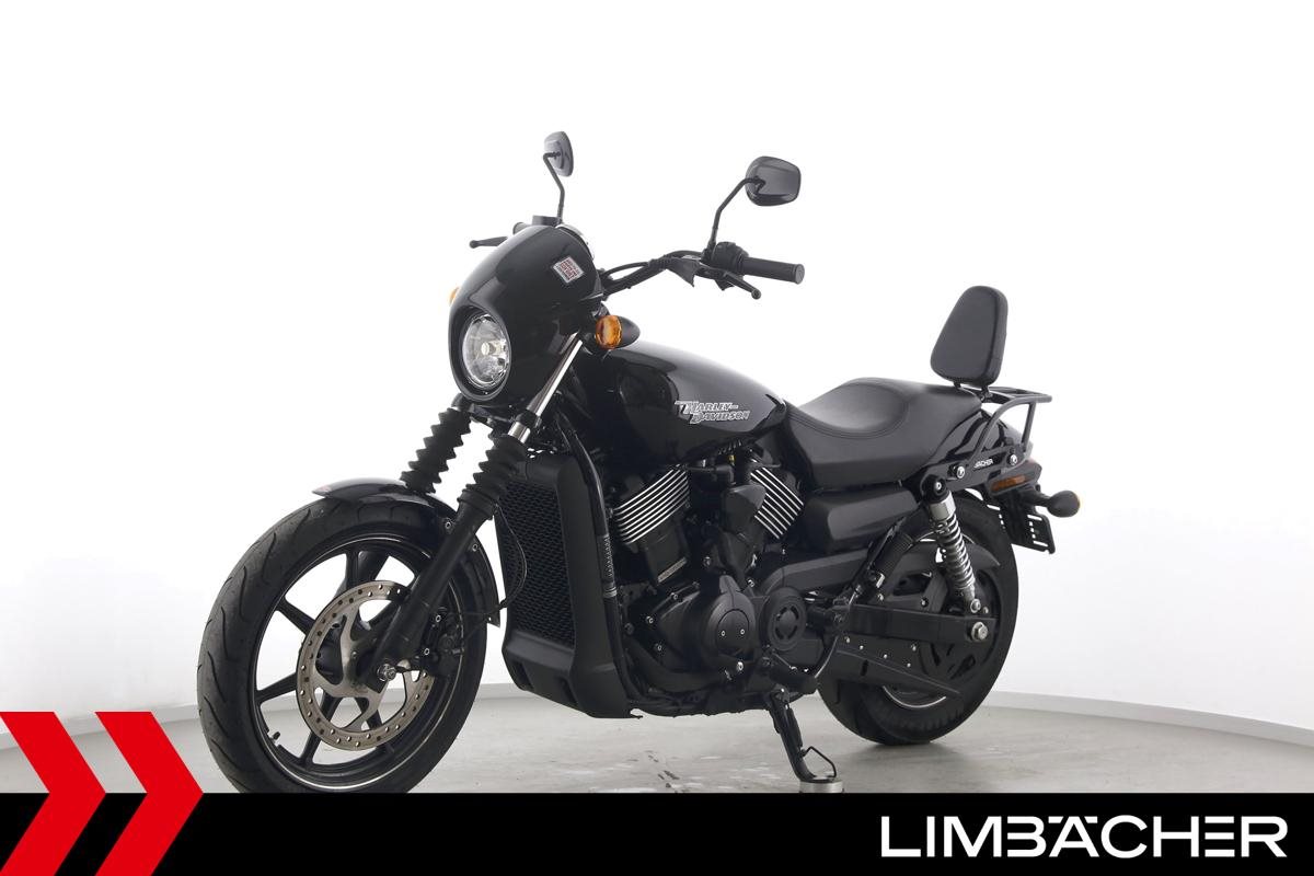 Eine Harley-Davidson Street 750 aus zweiter Hand in gepflegtem Zustand u.a. mit Originalausstattung und Gepäckträger.