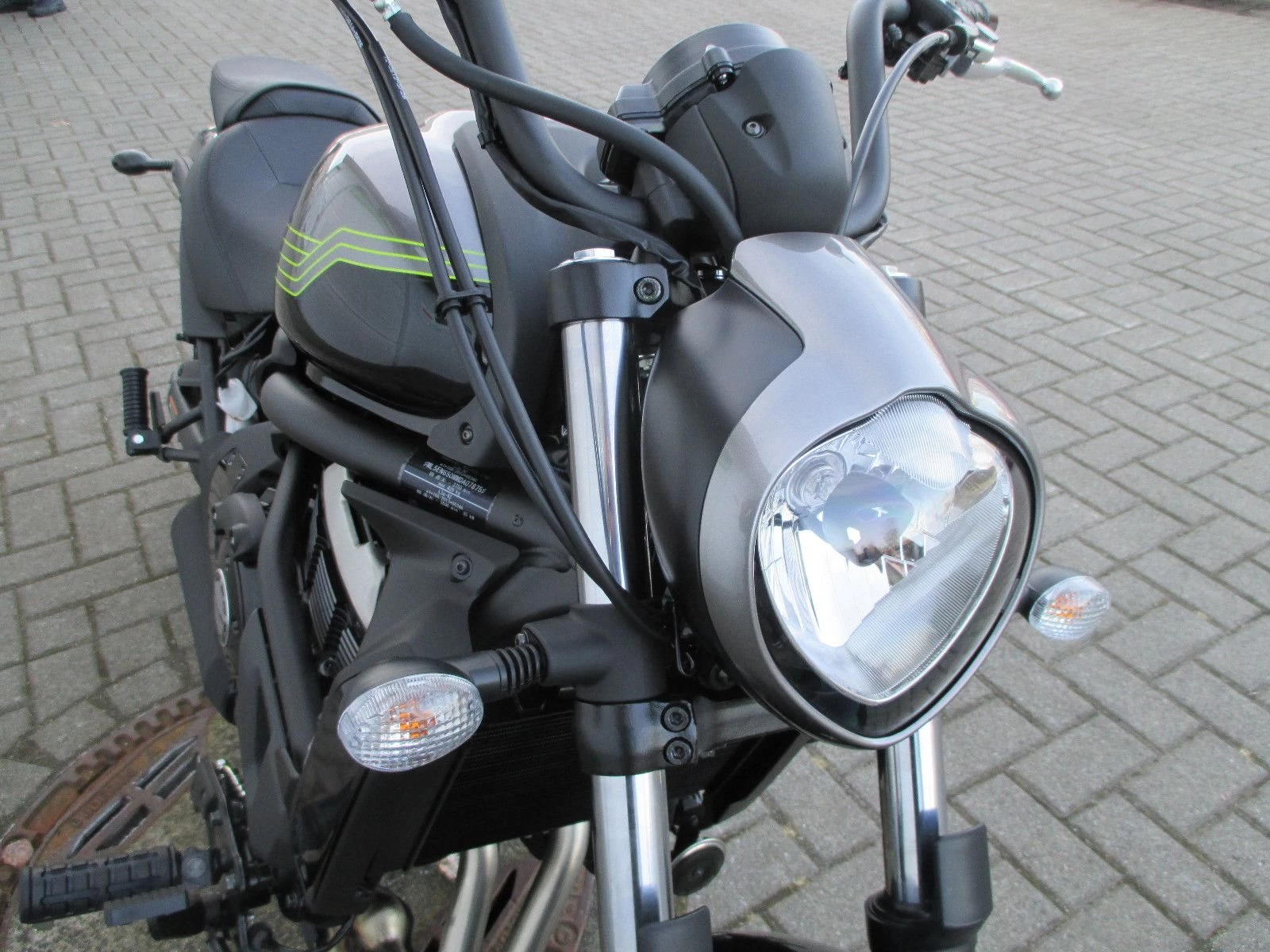 • Modernes, urbanes Styling Das lange, niedrige Design und moderne Elemente wie der Scheinwerfer und die Gussräder mit Fünfspeichen-Design verleihen der Vulcan S ein sehr unkonventionelles Cruiser-Aussehen.