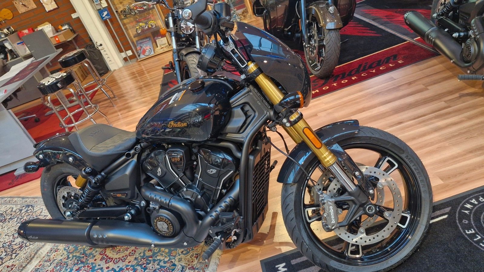 Frontverkleidung, Upside-Down Gabel, Piggyback-Stossdämpfer, Brembo Doppelscheibenbremsen, 101 Gunfighter Sitz, flüssigkeitsgekühlter Speedplus Motor 1250ccm mit 111PS, Tankvolumen 13 Liter, Gewicht 240kg, Sitzhöhe 654mm. Schauen Sie doch einfach einmal unverbindlich bei uns vorbei. Sicherlich haben wir auch das richtige Motorrad für Sie. Oder vereinbaren Sie doch einfach vorab mit uns einen Probefahrt-Termin. Sprechen Sie uns einfach an.