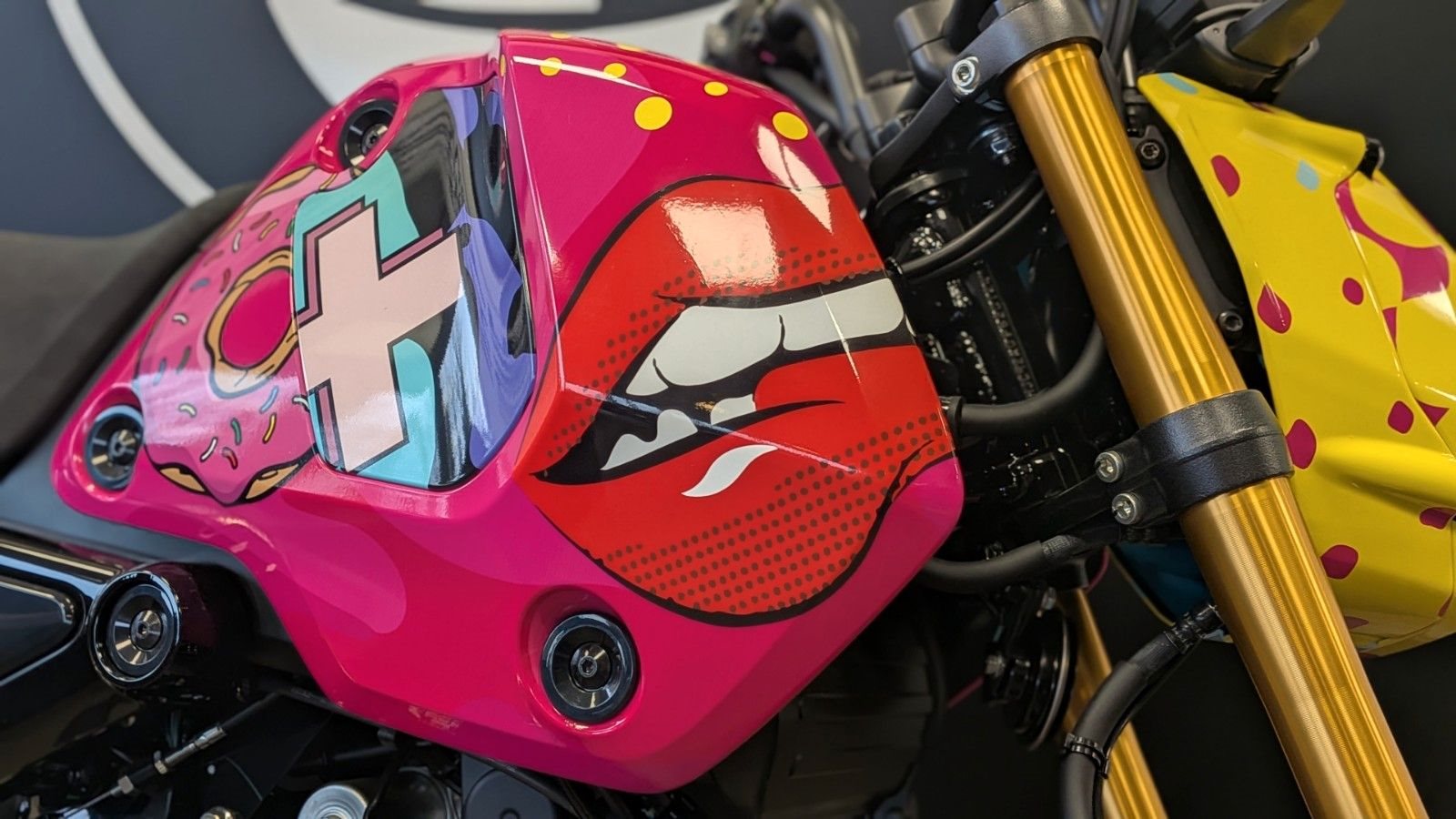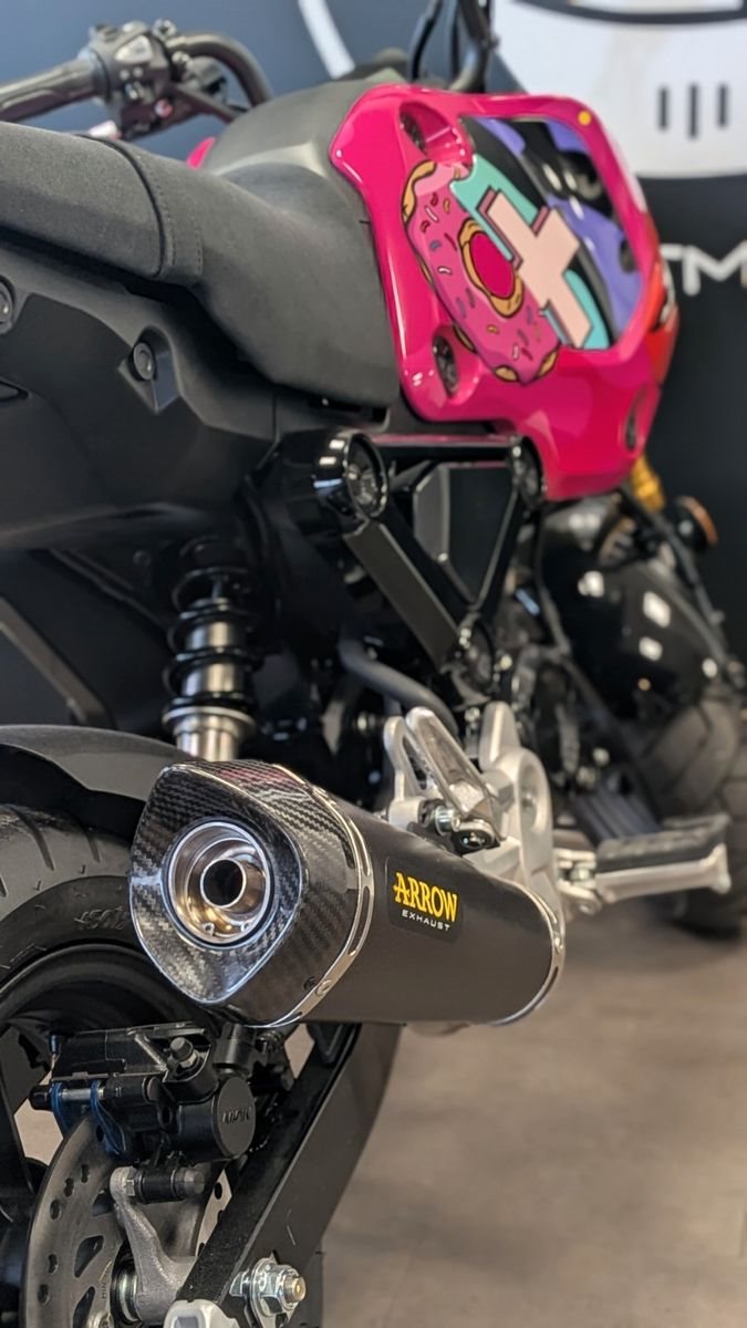 Zum Verkauf steht eine Honda Grom MSX125, Modelljahr 2024, als Tageszulassung - das Fahrzeug wurde nicht bewegt und befindet sich entsprechend in neuwertigem Zustand. Diese Grom ist kein Serienfahrzeug, sondern ein echtes Einzelstück mit zahlreichen hochwertigen Umbauten und einer einzigartigen Folierung, die sie sofort aus der Masse hervorhebt.