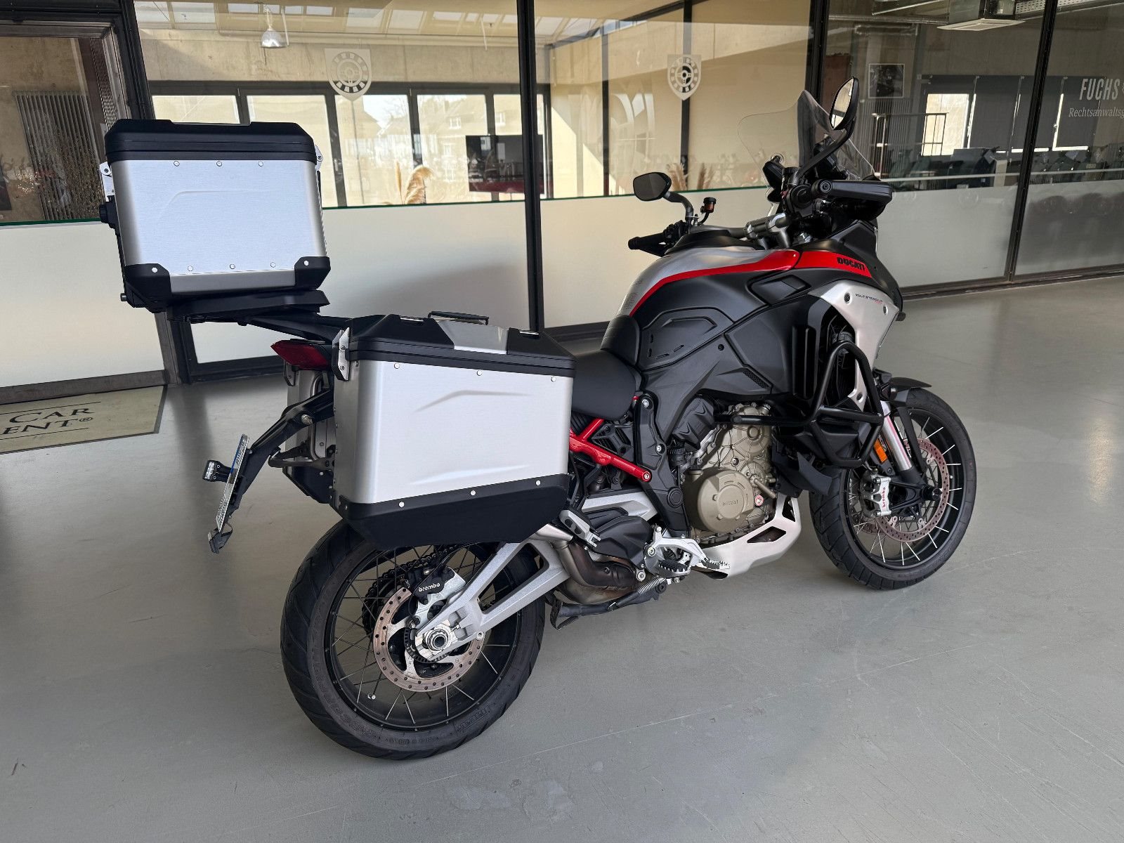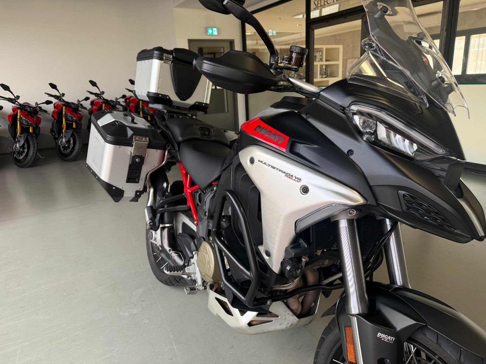 Aluminium Top Case inkl. Rückenkissen, Reifendruckkontrollsystem, Motorsturzbügel, Crashpads Vorderrad, Nebelscheinwerfer, Ducati Performance LED Blinker