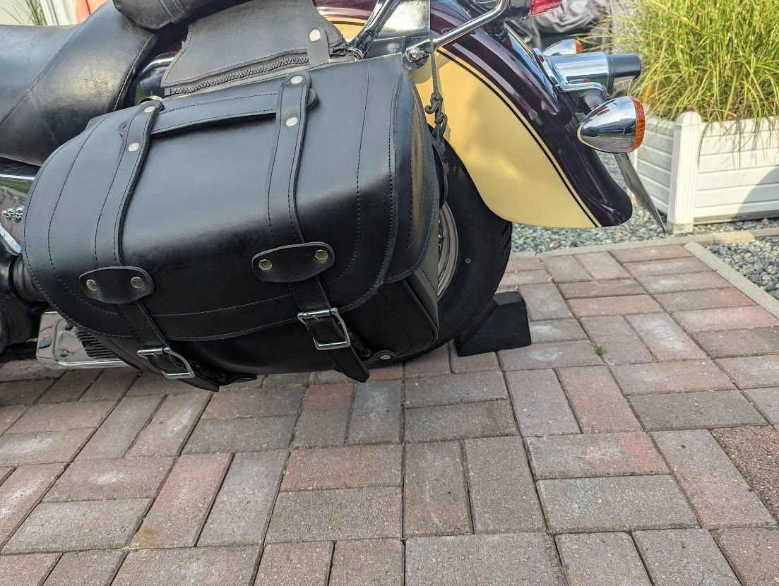 Die Seitenkoffer wurden noch Ende 2023 erneuert, weil die alten damals vom Vorgänger falsch montiert wurden und auf dem Auspuff aufgelegen haben.