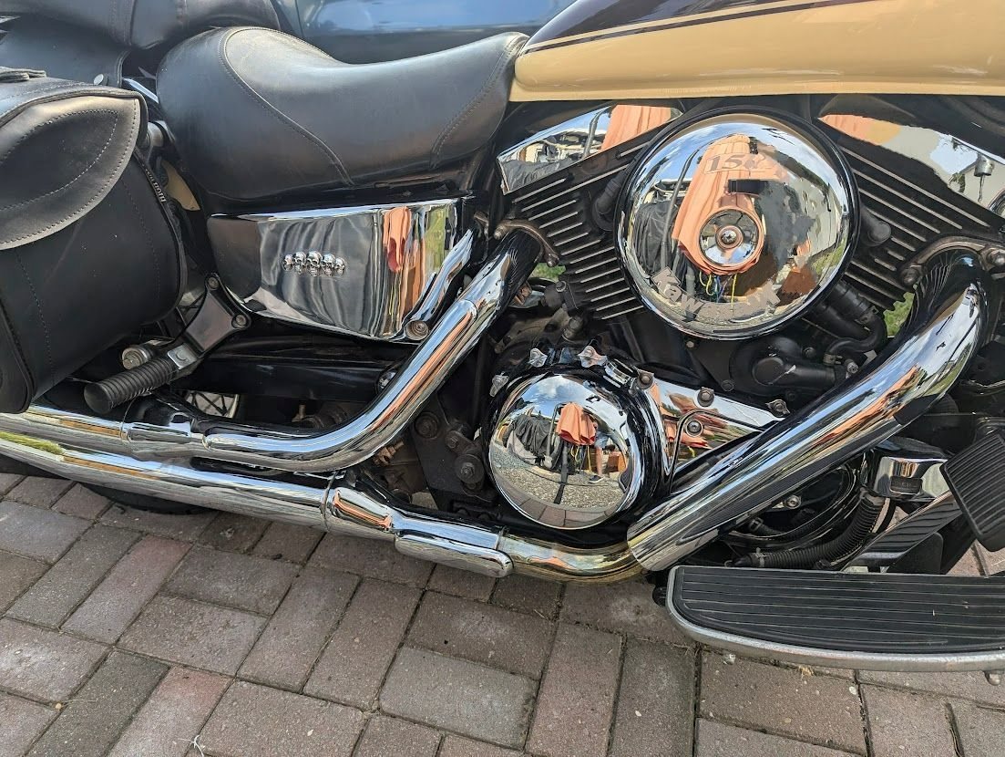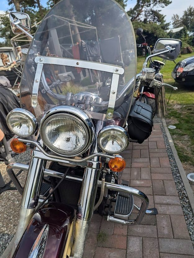Zusätzlich wurden Teile noch verchromt, aber fragt mal nach...... Windshild ist an den Verschraubungen etwas angerissen, aber fahre damit schon 10 Jahre und die Risse werden nicht länger (hatte der Vorgänger die Schrauben zu fest angezogen!
