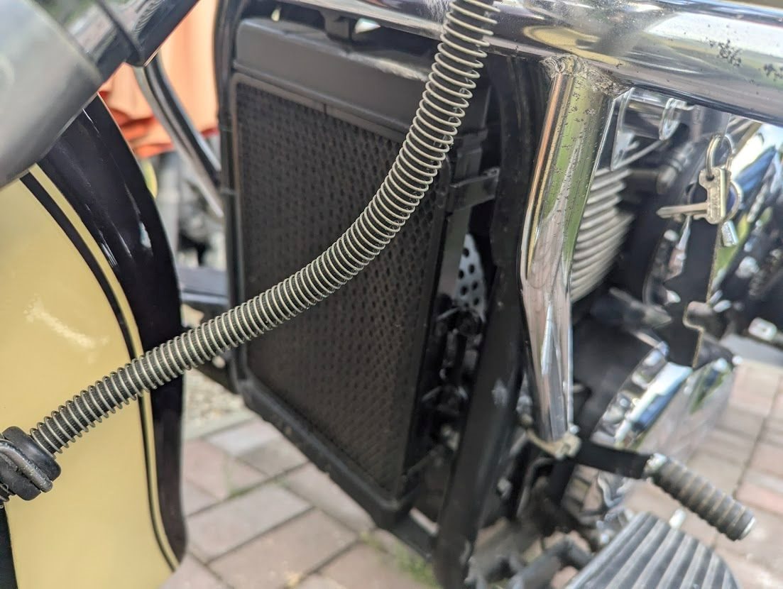Die Seitenkoffer wurden noch Ende 2023 erneuert, weil die alten damals vom Vorgänger falsch montiert wurden und auf dem Auspuff aufgelegen haben.