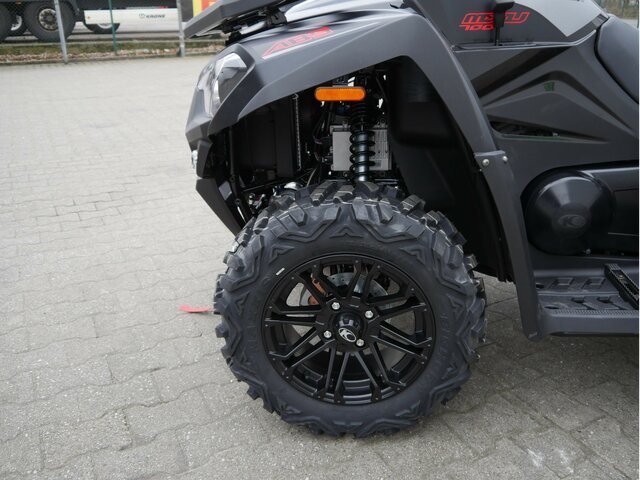 Und das ist noch längst nicht alles. Zur Vollausstattung gehören zum Beispiel eine elektronische Lenkunterstützung, die geschwindigkeitsabhängig reagiert, eine kräftige Seilwinde, stufenlose Variomatik, zuschaltbarer Allradantrieb und Differenzialsperre vorne, Untersetzungsgetriebe, Bergabfahrhilfe, Anhängerkupplung, zentrales LCD-Cockpit und sportliche Doppelspeichen-Felgen mit Maxxis Bighorn Reifen.