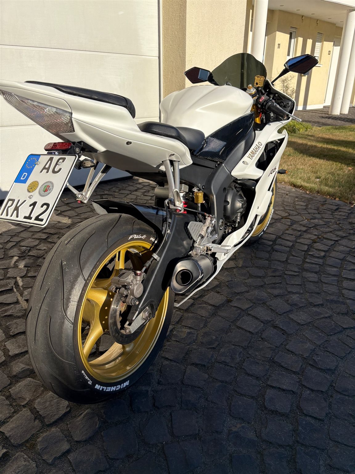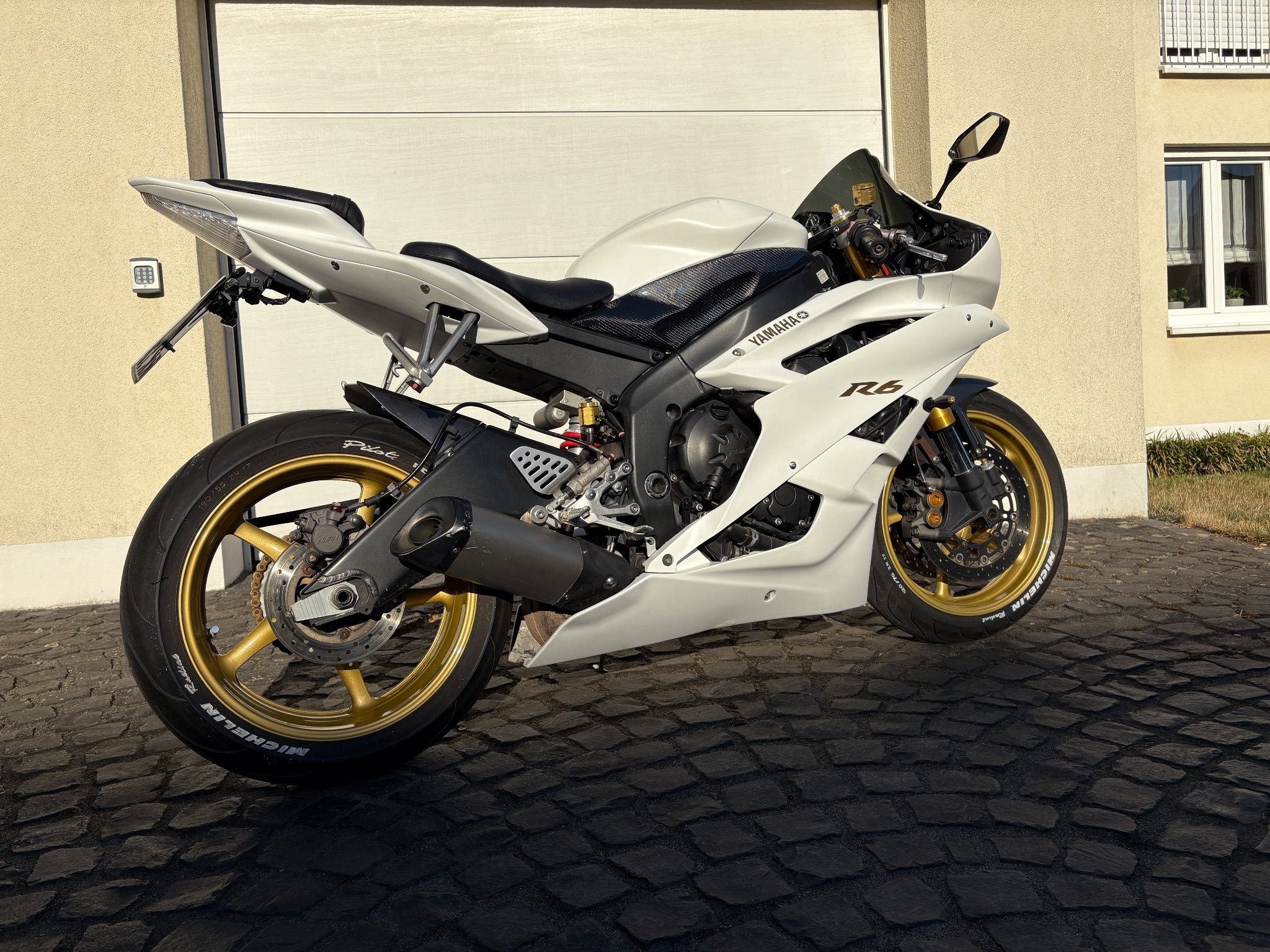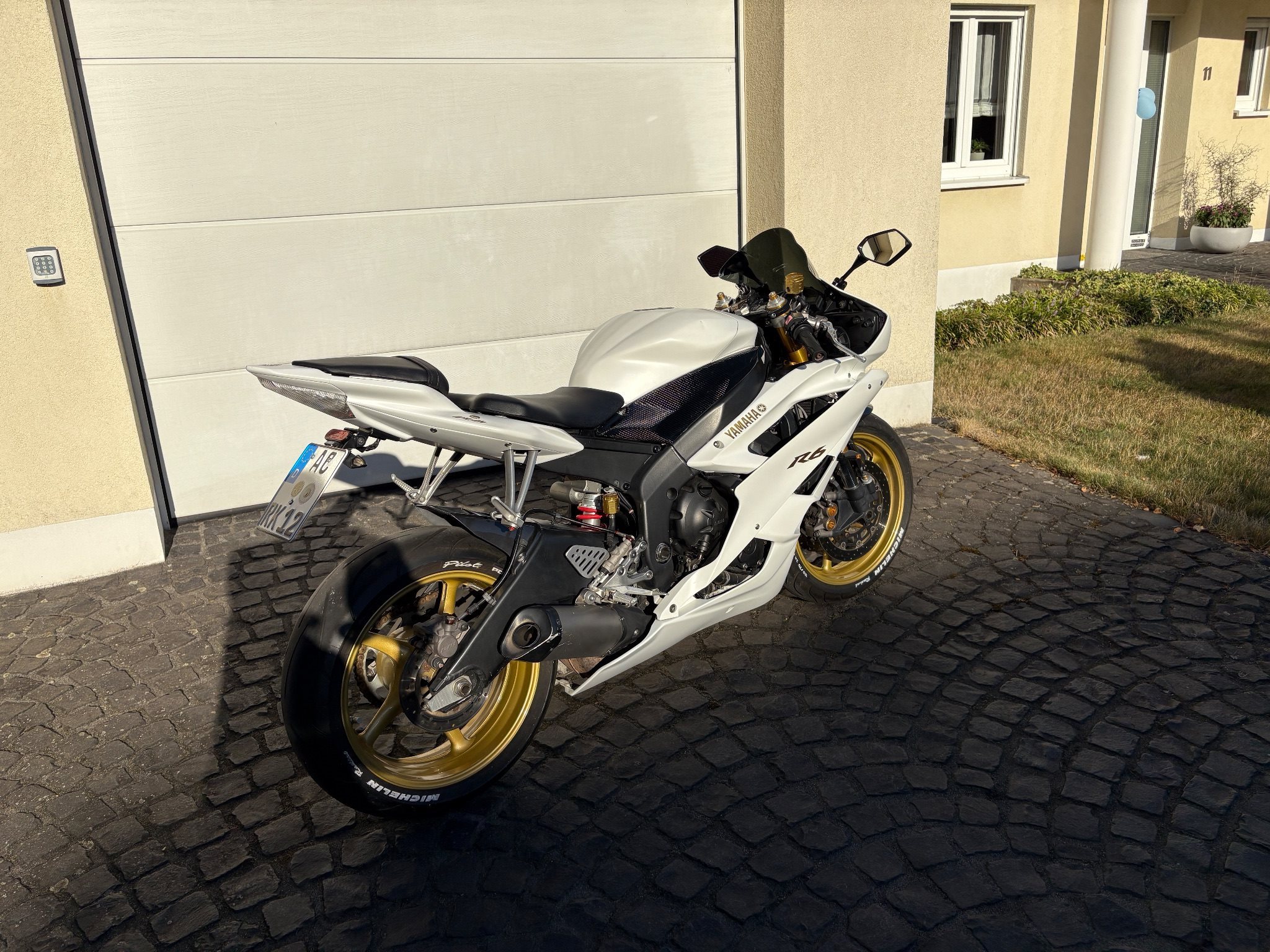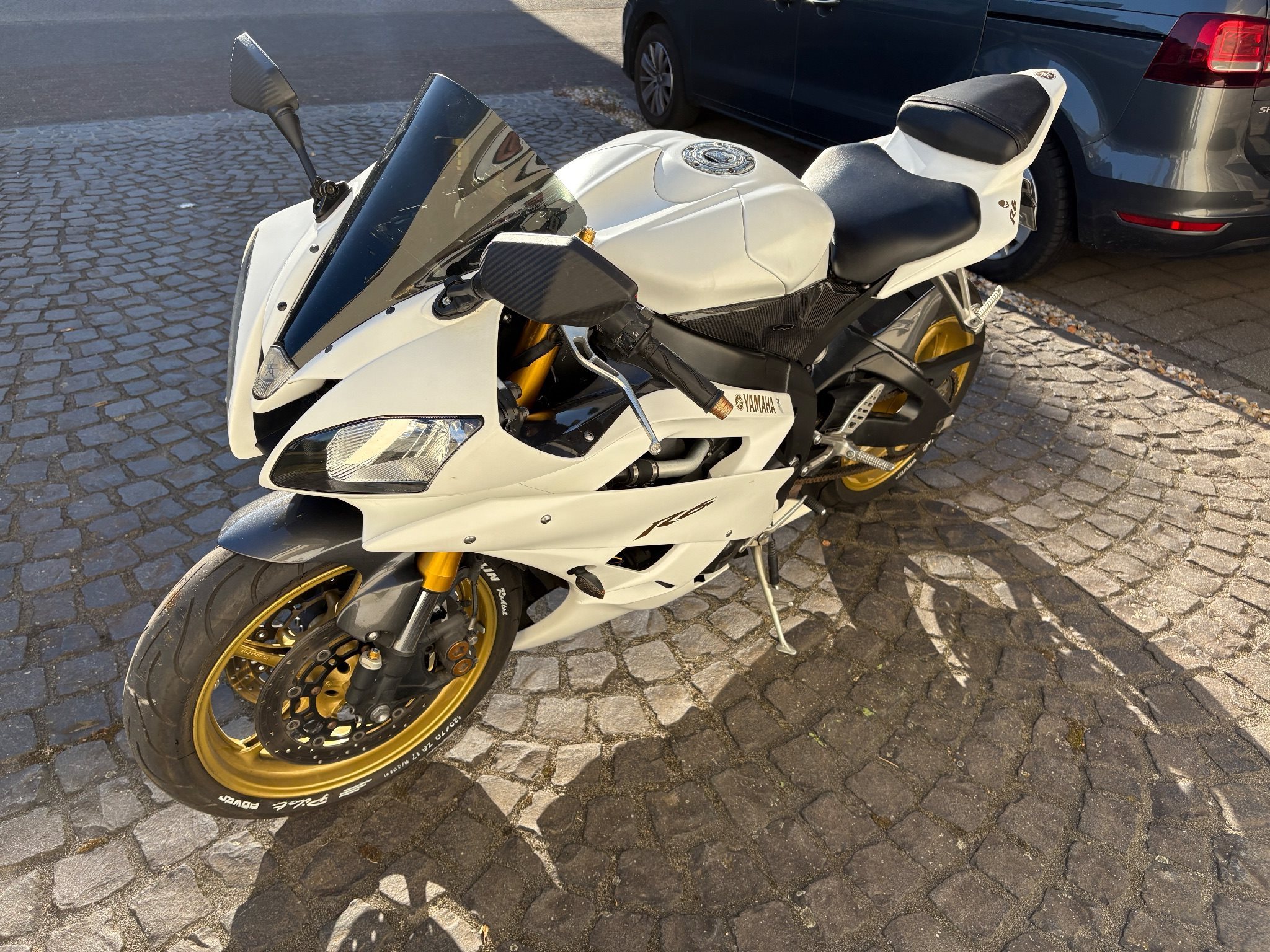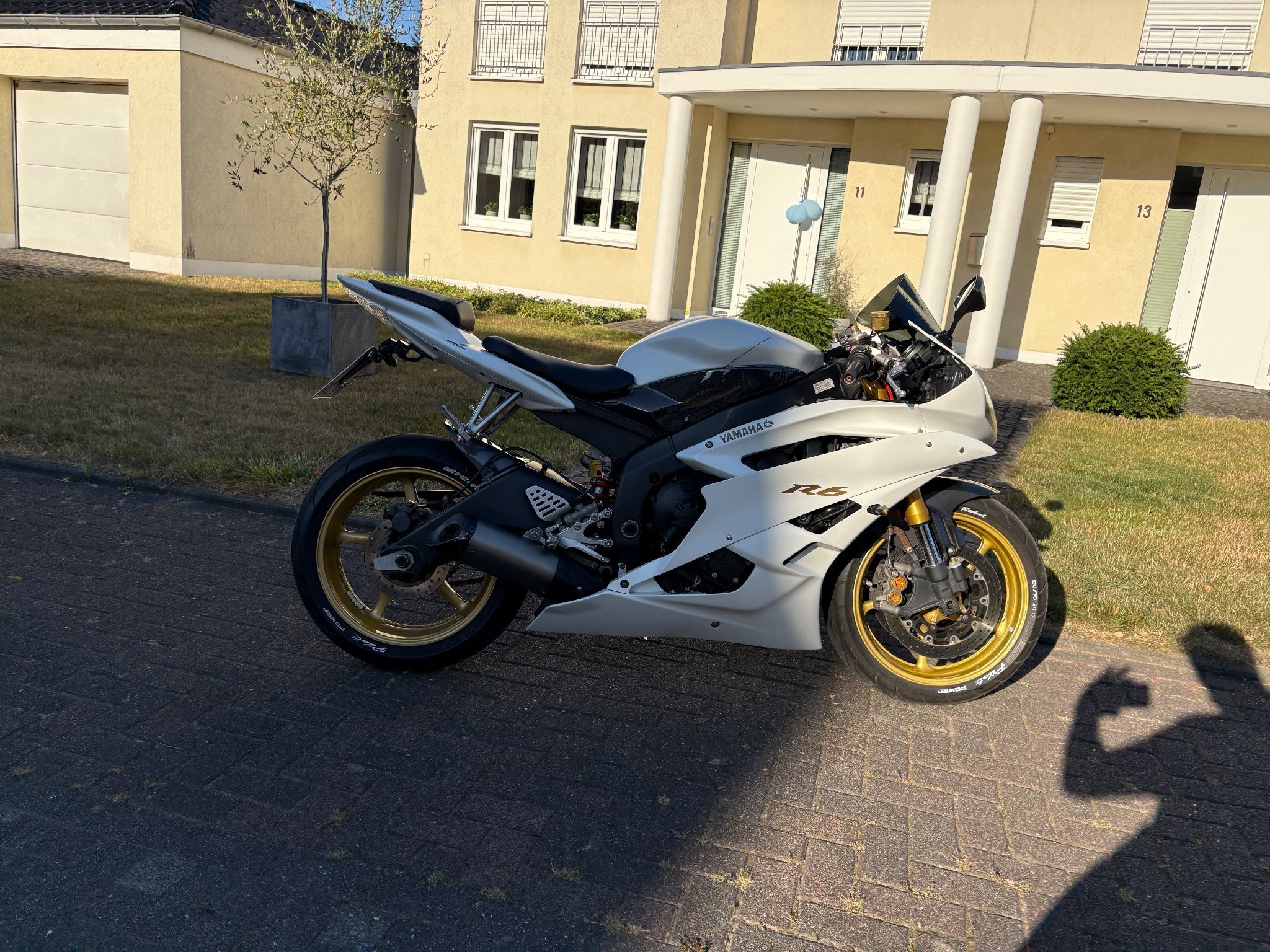 Wenig Fahrer verkauft Po Modell mit legendären Sound.Top gepflegte (eine kleine leichte Beule am Tank , kann am auf Wunsch und Aufpreis behoben werden) R6 weiß mit Carbon Elemente, Checkheft, Tüv/ASU neu, Garagen Fahrzeug,wenig km 34,500 km,