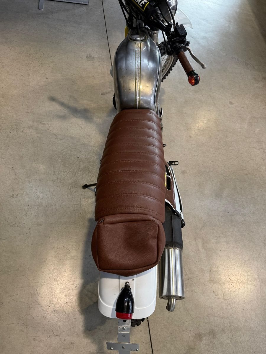 Handgemachte Details, klassische Startnummern, braune Custom-Sitzbank und grobstollige Reifen - dieses Bike will gefahren werden, nicht in der Garage verstauben. Der Motor läuft zuverlässig, genau so, wie man es von der XR erwartet: unkaputtbar, direkt, ehrlich.