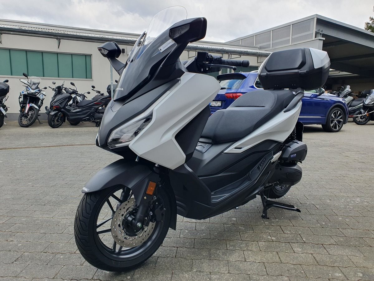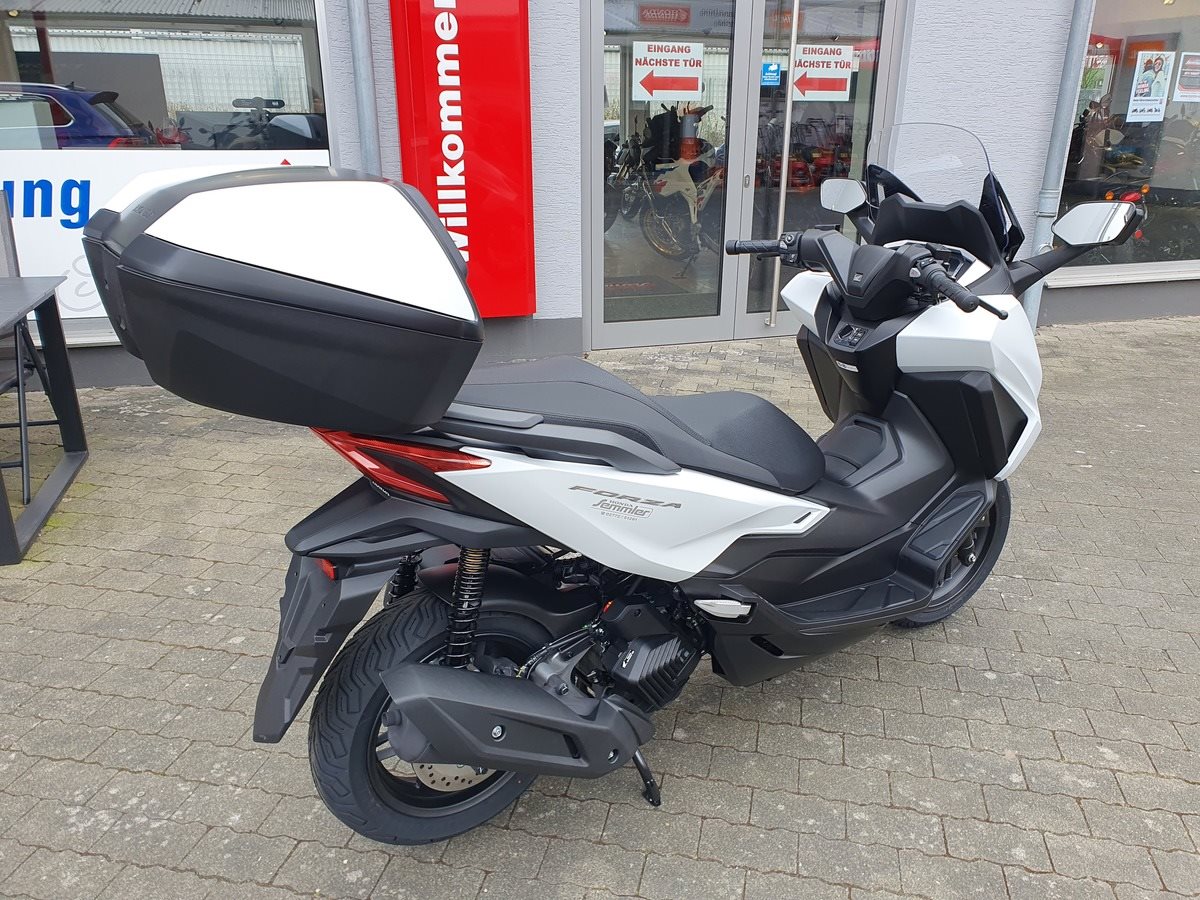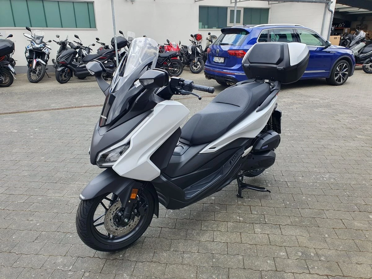 Honda Forza 125 NSS 125 in Matt Pearl Cool White ! Neues Modelljahr mit TFT Display ! Der Forza hat ABS, ein elektrisch einstellbares Windschild und wird Seienmäßig mit Smart Key Top Case geliefert. Der Roller ist auf Lager und sofort verfügbar !