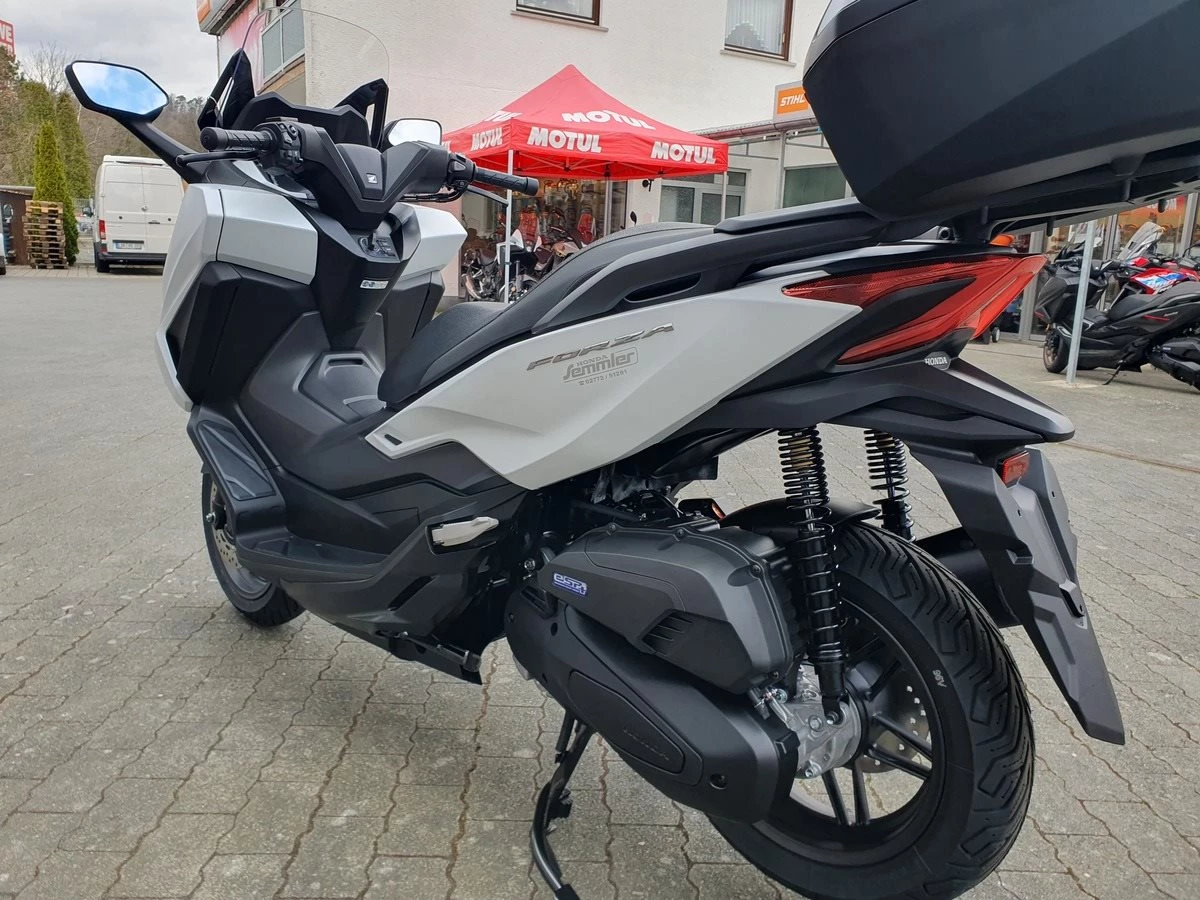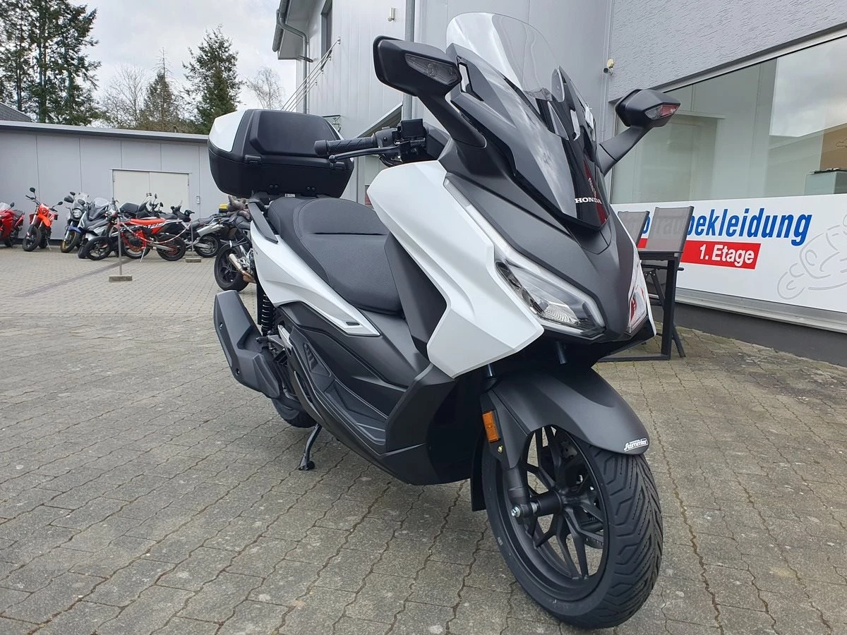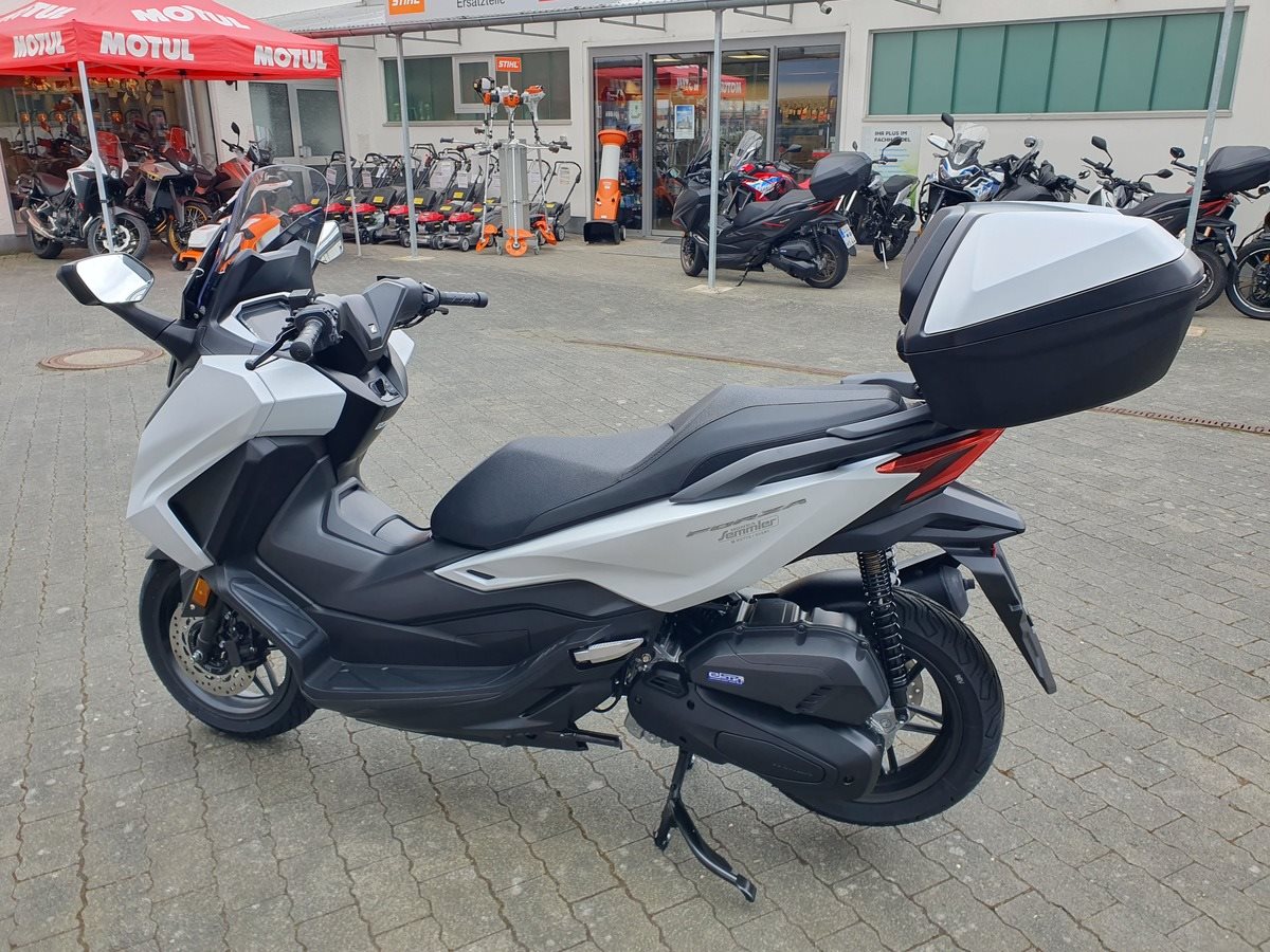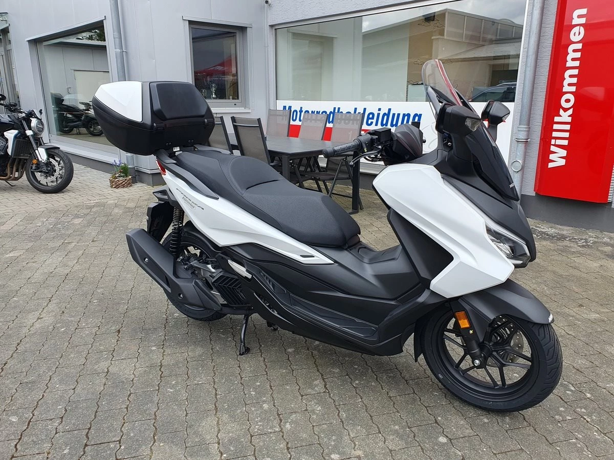 Honda Forza 125 NSS 125 in Matt Pearl Cool White ! Neues Modelljahr mit TFT Display ! Der Forza hat ABS, ein elektrisch einstellbares Windschild und wird Seienmäßig mit Smart Key Top Case geliefert. Der Roller ist auf Lager und sofort verfügbar !