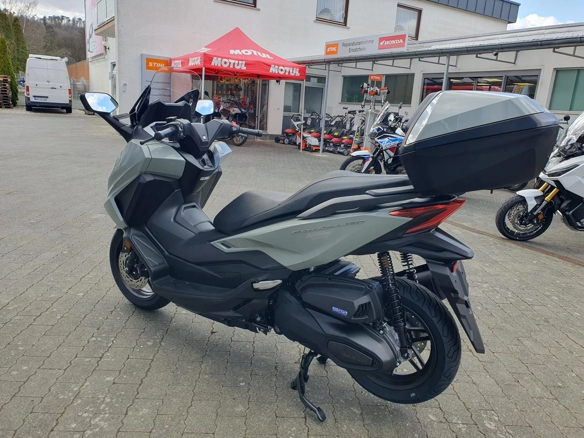 Honda Forza 350 NSS 350 in Pearl Falcon Gray ! Modelljahr 2025 mit TFT Display ! Der Forza hat ABS, ein elektrisch einstellbares Windschild und wird Seienmäßig mit Smart Key Top Case geliefert. Der Roller ist auf Lager und sofort verfügbar !