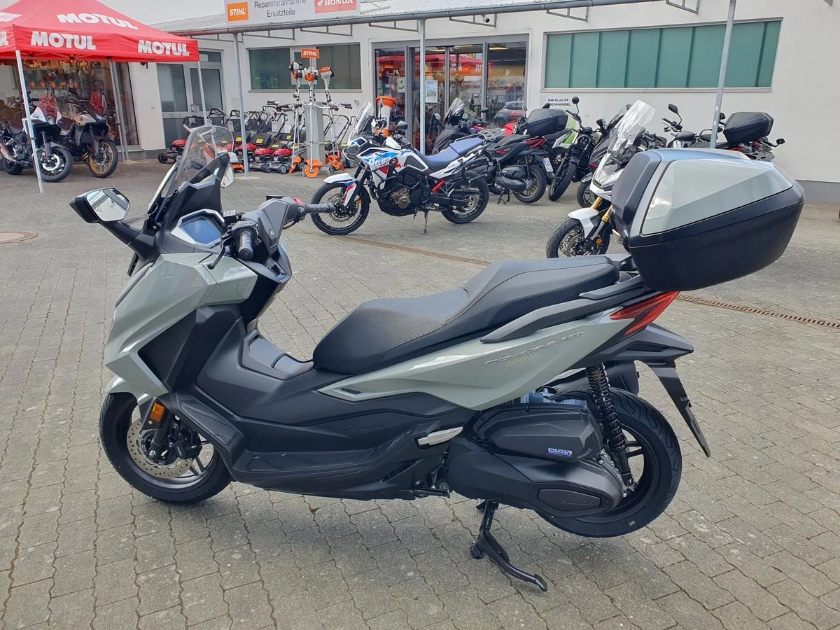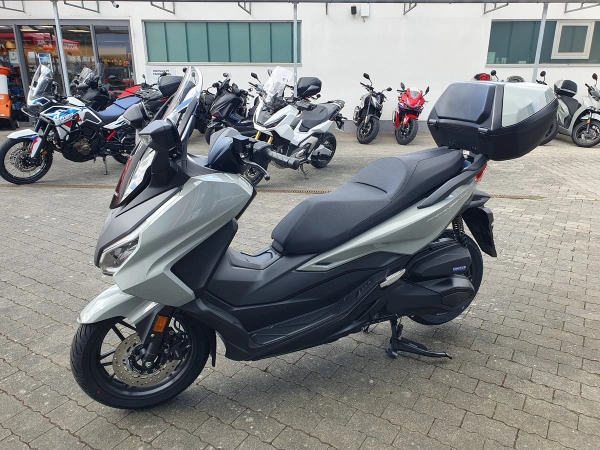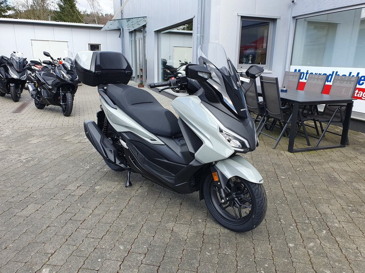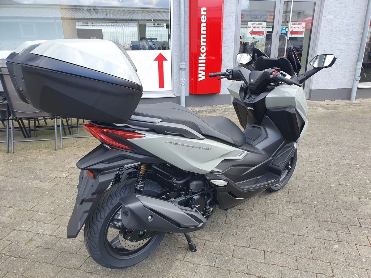 Honda Forza 350 NSS 350 in Pearl Falcon Gray ! Modelljahr 2025 mit TFT Display ! Der Forza hat ABS, ein elektrisch einstellbares Windschild und wird Seienmäßig mit Smart Key Top Case geliefert. Der Roller ist auf Lager und sofort verfügbar !
