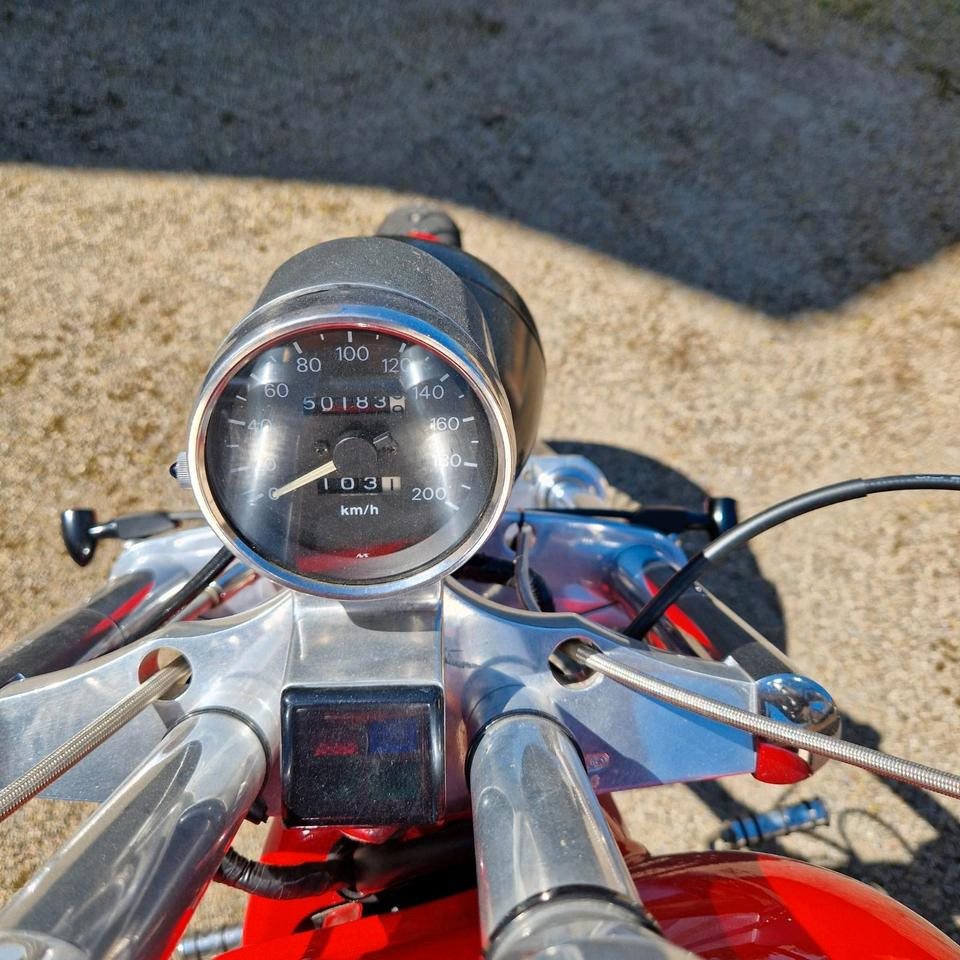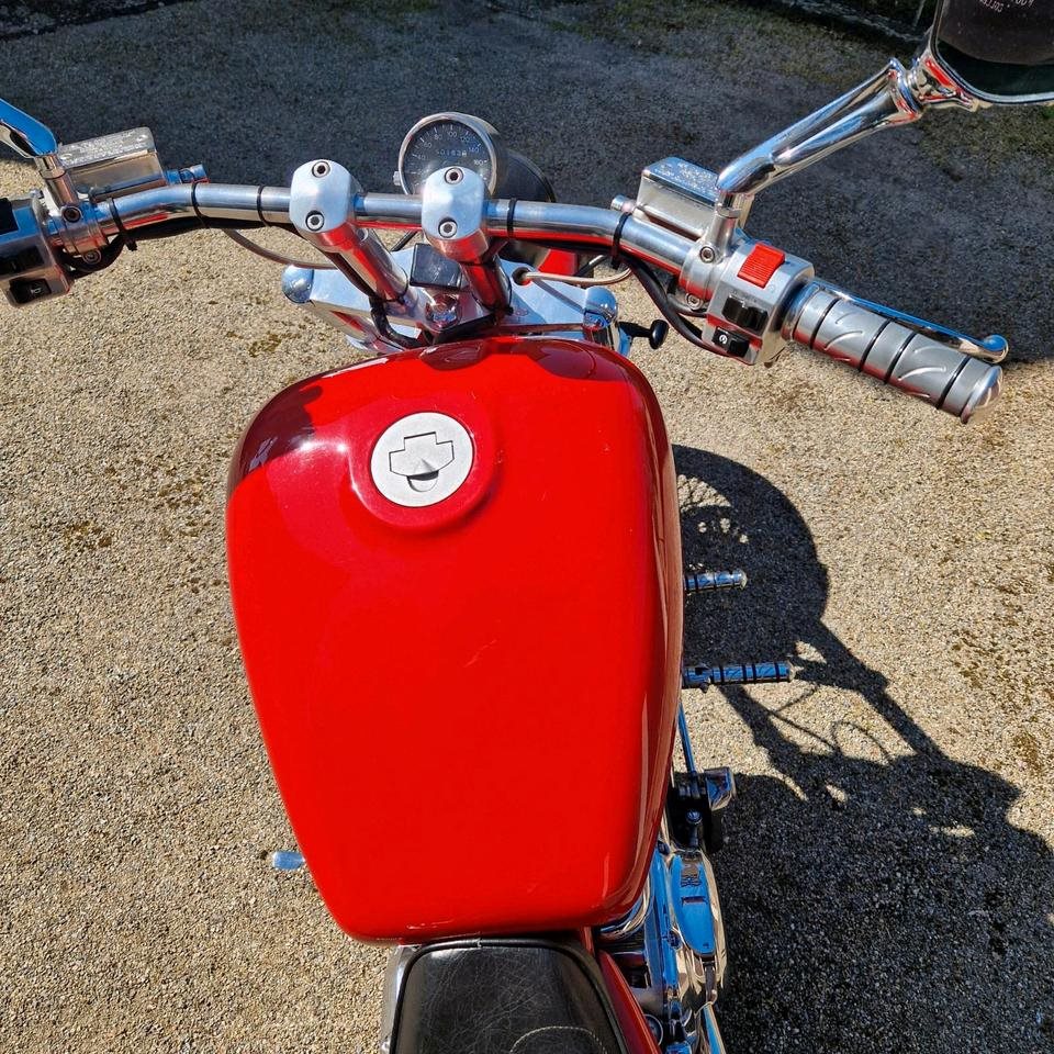 • Vorvelegte Fußrasten, grosser Tank, Flugzeugtankverschluss,