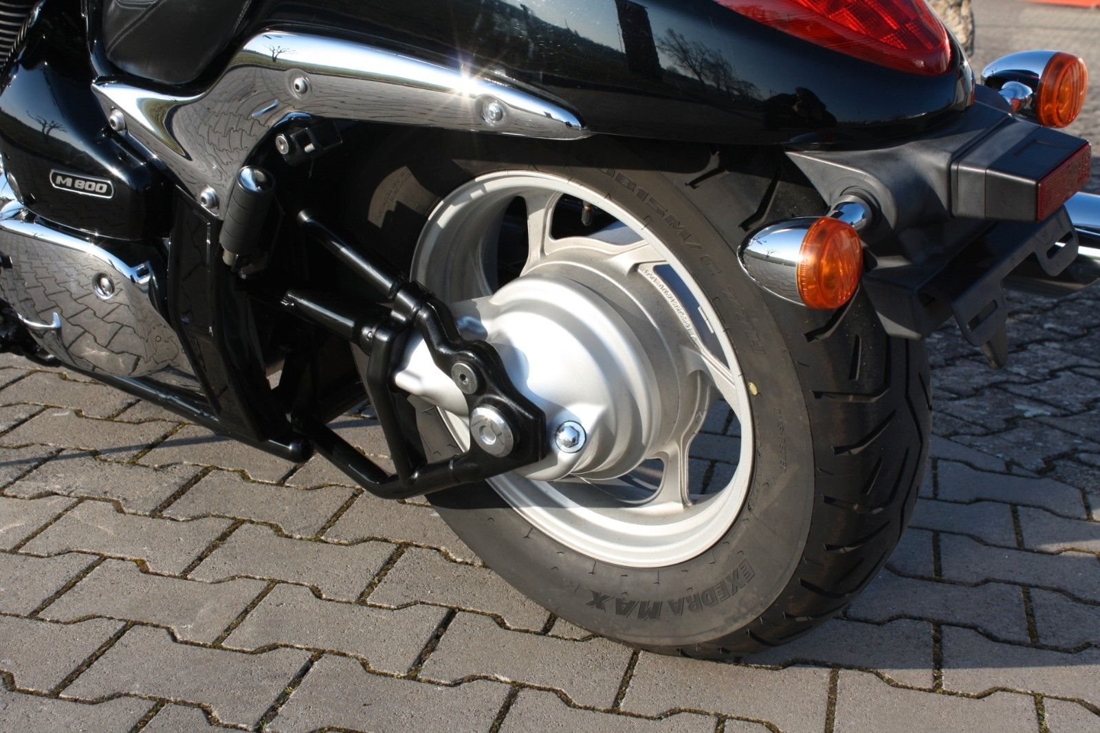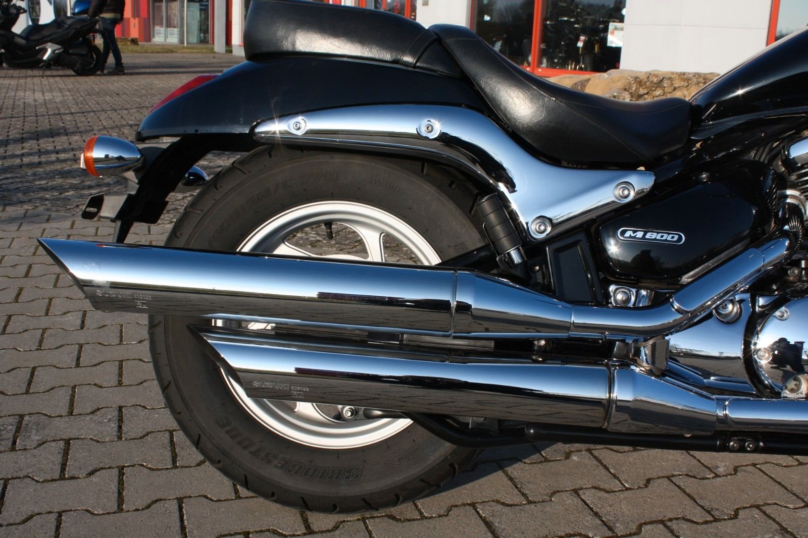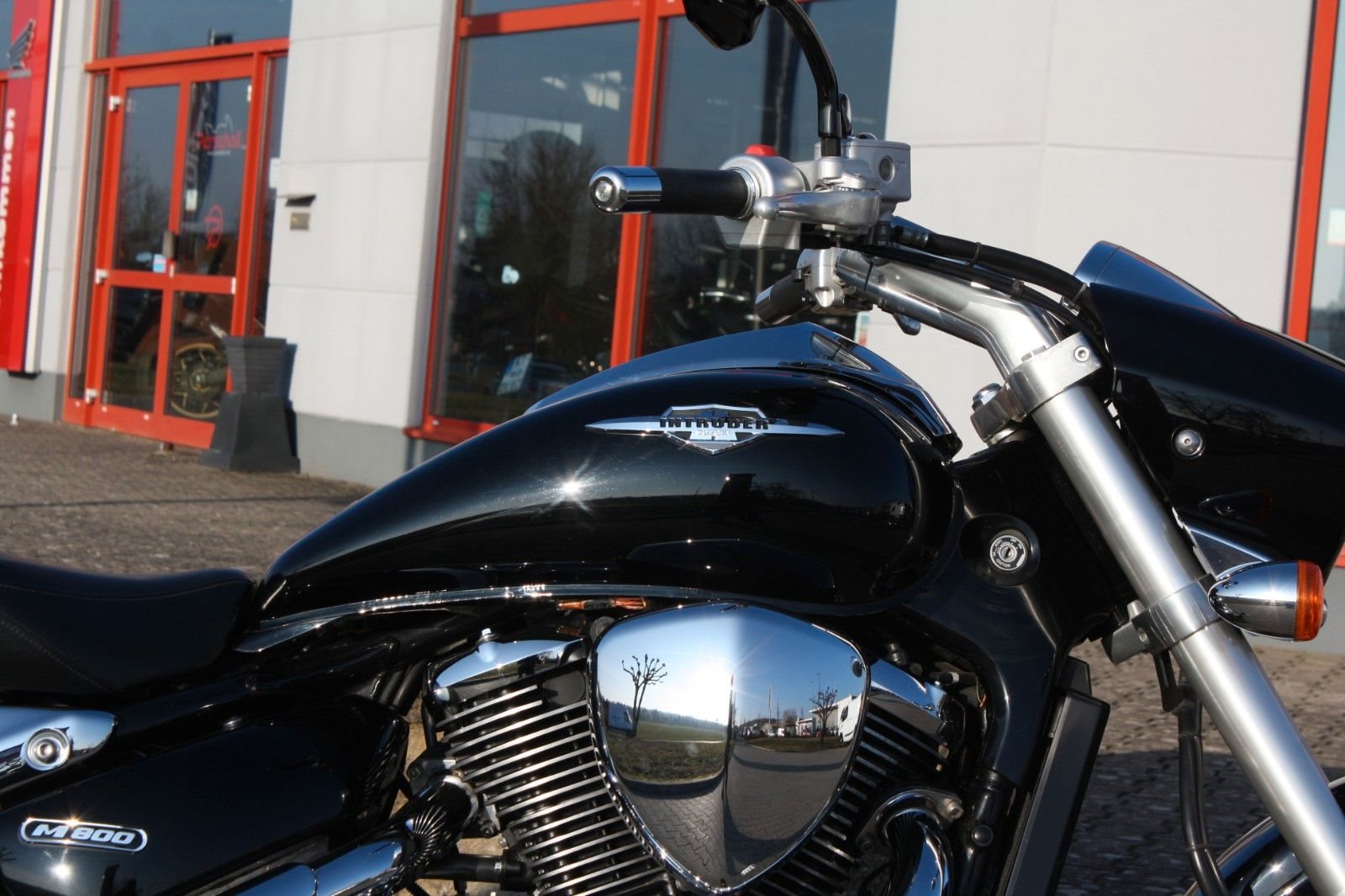 Cruiser mit Stil - die Suzuki M800 Marauder in Schwarz. Das Motorrad befindet sich im unverbastelten Originalzustand; lediglich ein paar Spiegel von Highsider wurden montiert.